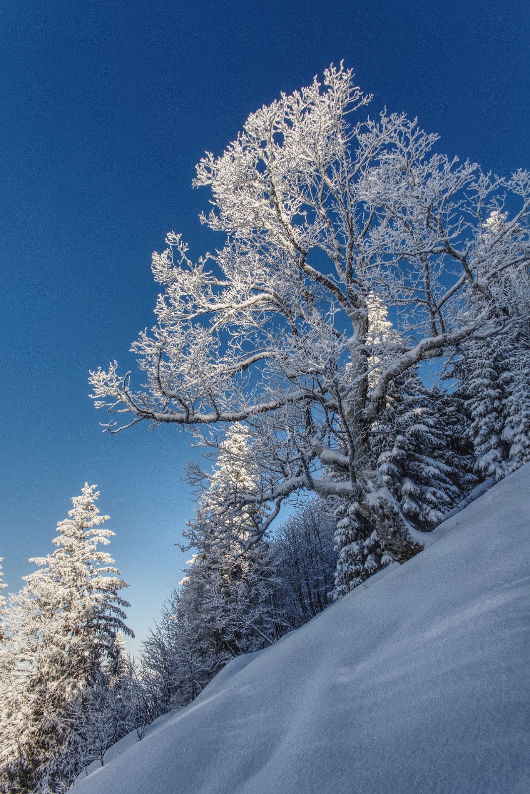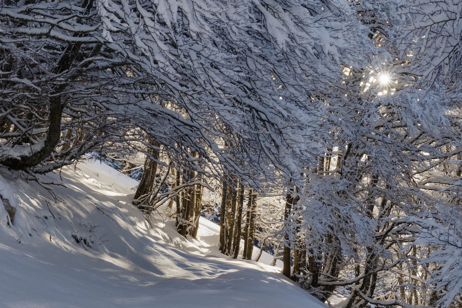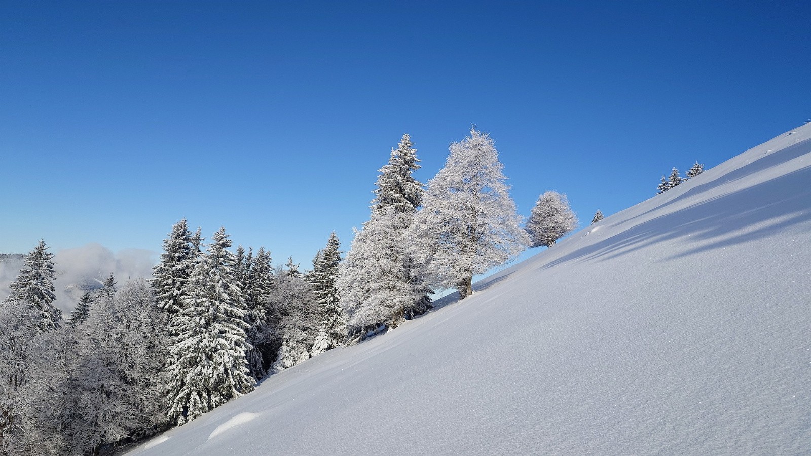 Faute d'une grosse motivation pour un itinéraire d'envergure vu la fatigue et les conditions nivologiques et météo, mais avec l'envie d'une petite dernière avant de rentrer de vacances... ce serait dommage de partir sans tâter de la neige toute fraiche ! Je pars donc pour ce vallon sud des chalets du Sollier, repéré en montant au Trélod il y a 4 jours, et en espérant pouvoir trouver des pentes sympas en direction du Roc des Boeufs. Un dénivelé modeste, un peu de poudre espérée... et dès le parking, la certitude d'avoir tiré le gros lot: le ciel bleu qui pointe sur les hauteurs, de la neige fraiche en suffisance (pour monter en tous cas), et pas une trace. Un plaisir immense à se laisser guider par les skis dans ce paysage de rêve hivernal ! J'ai même pu laisser quelques watts pour tracer la fin, dans un gros paquet de neige...