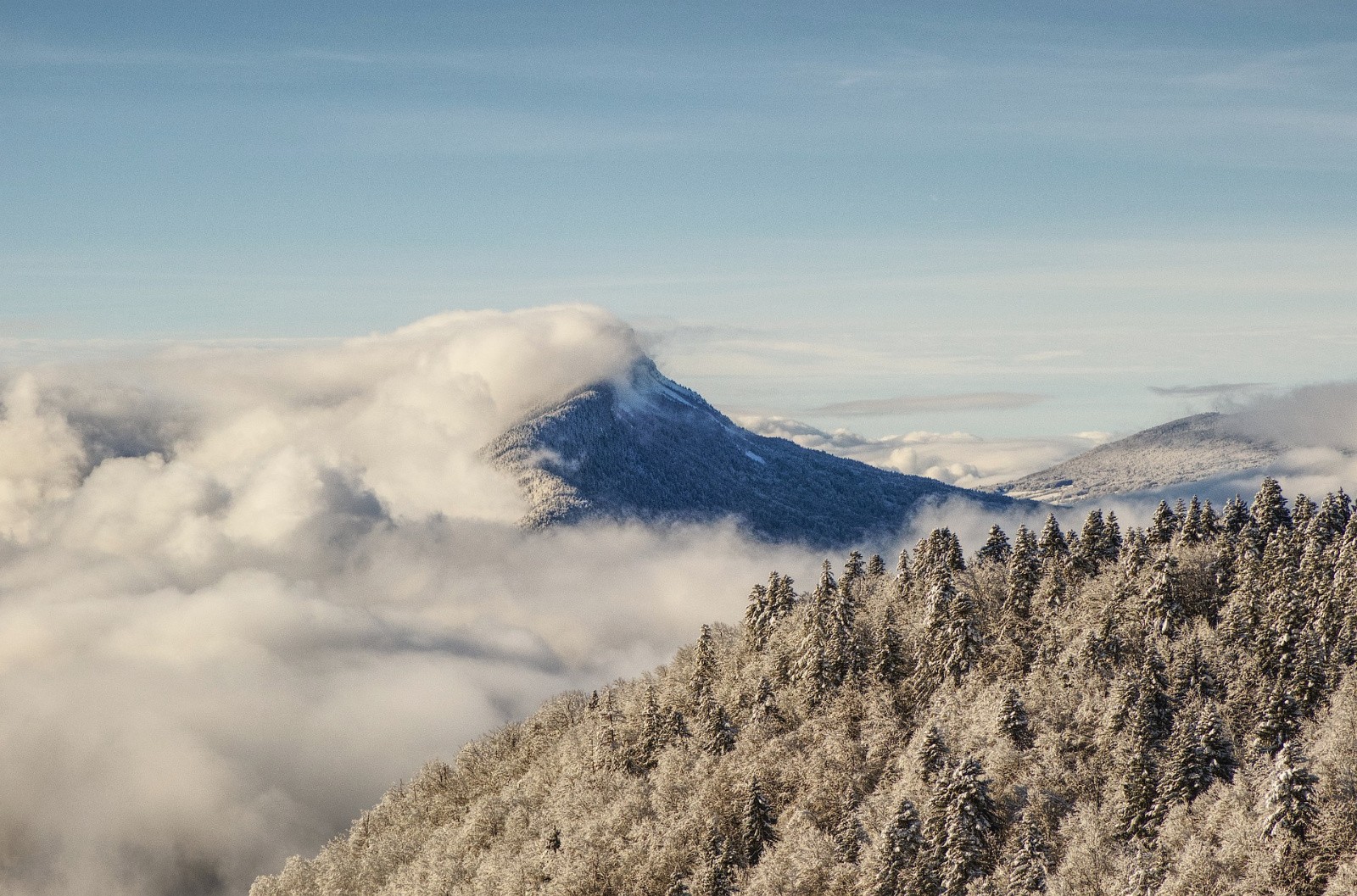 Météo/températures : brume au départ, mais déjà soleil au dessus de 1200m. Des nuages accrochés aux pentes alentours, mais bien bleu sur l'itinéraire.