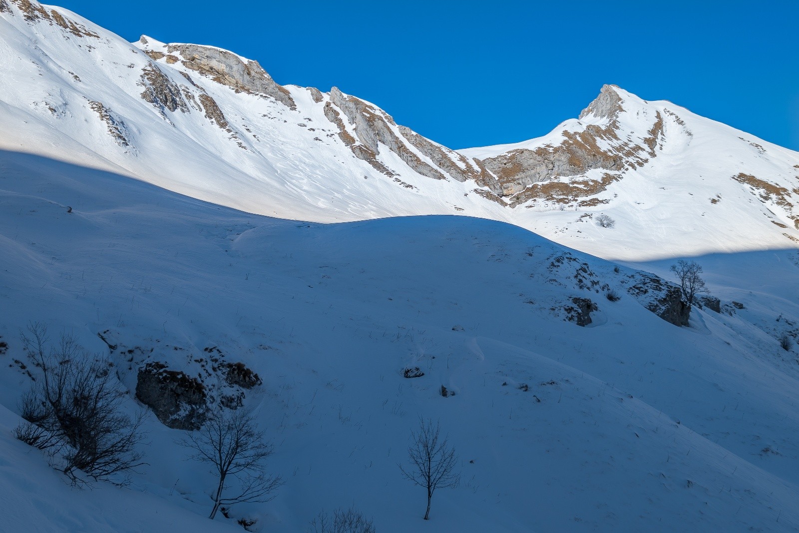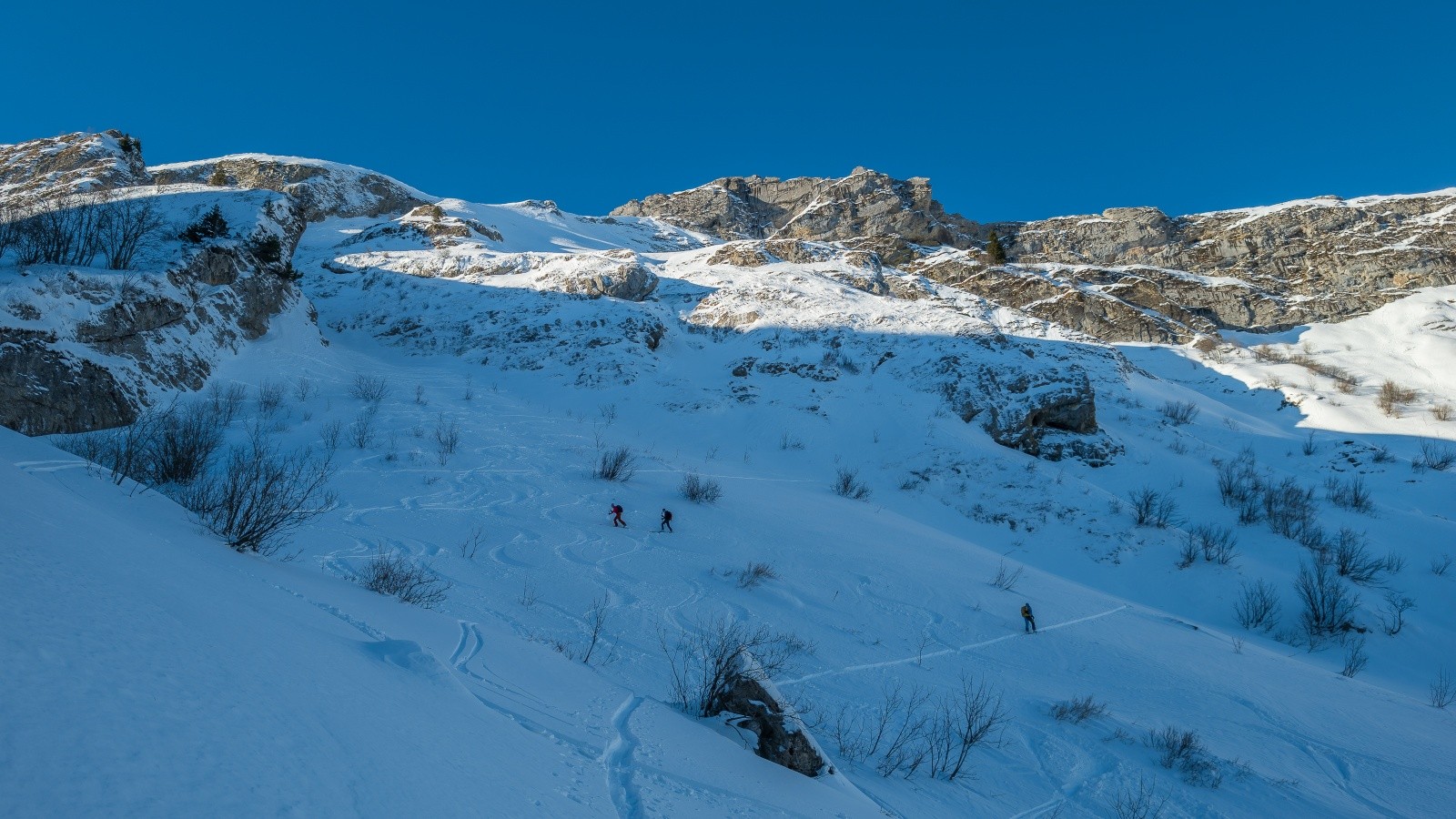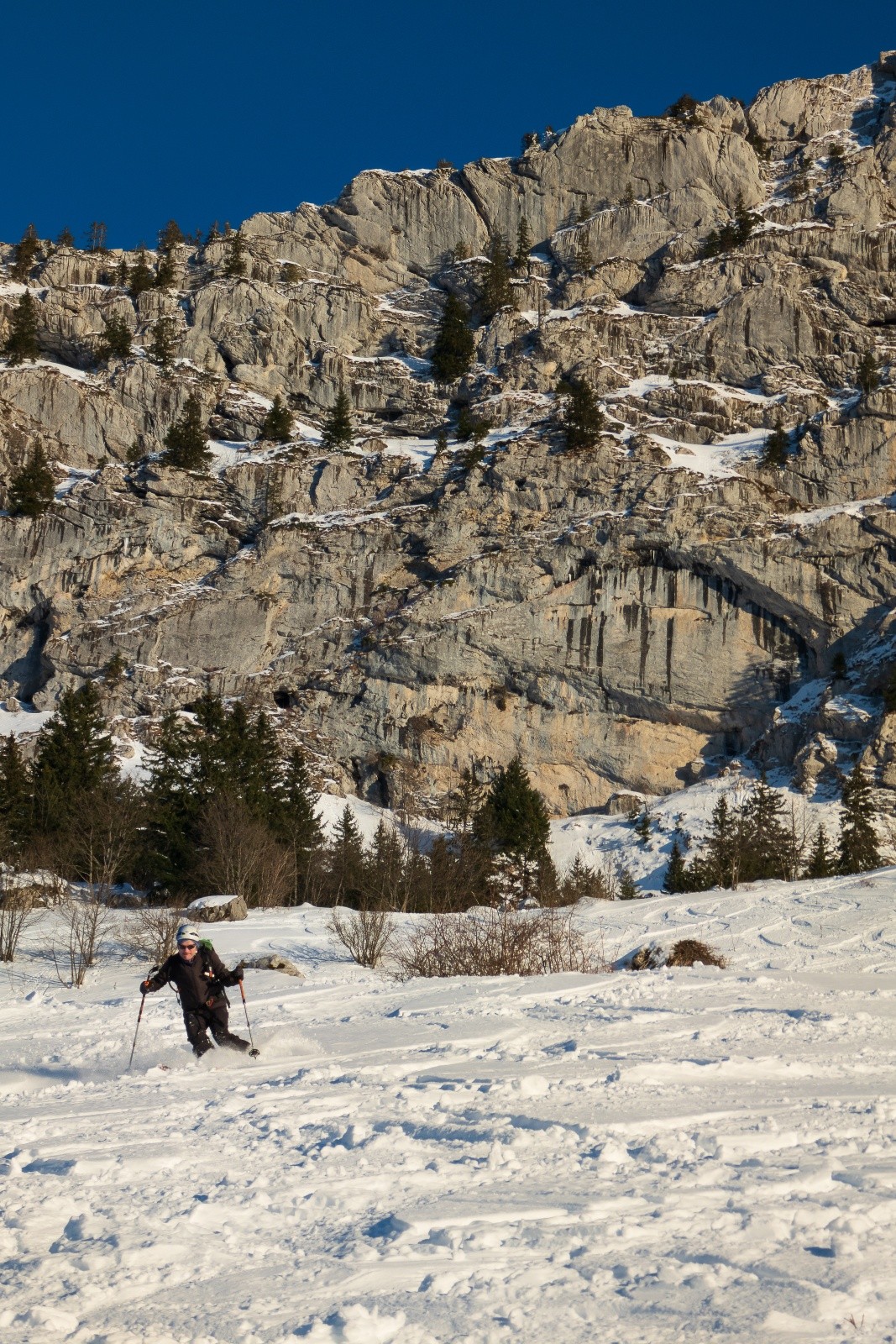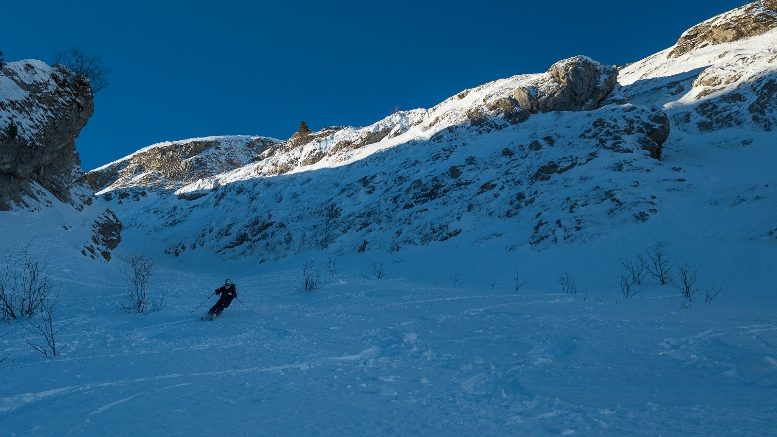 Pas plus inspiré que cela pour tenter un couloir N du Trélod. Visiblement, ca passait, mais quid du remplissage dans le bas?