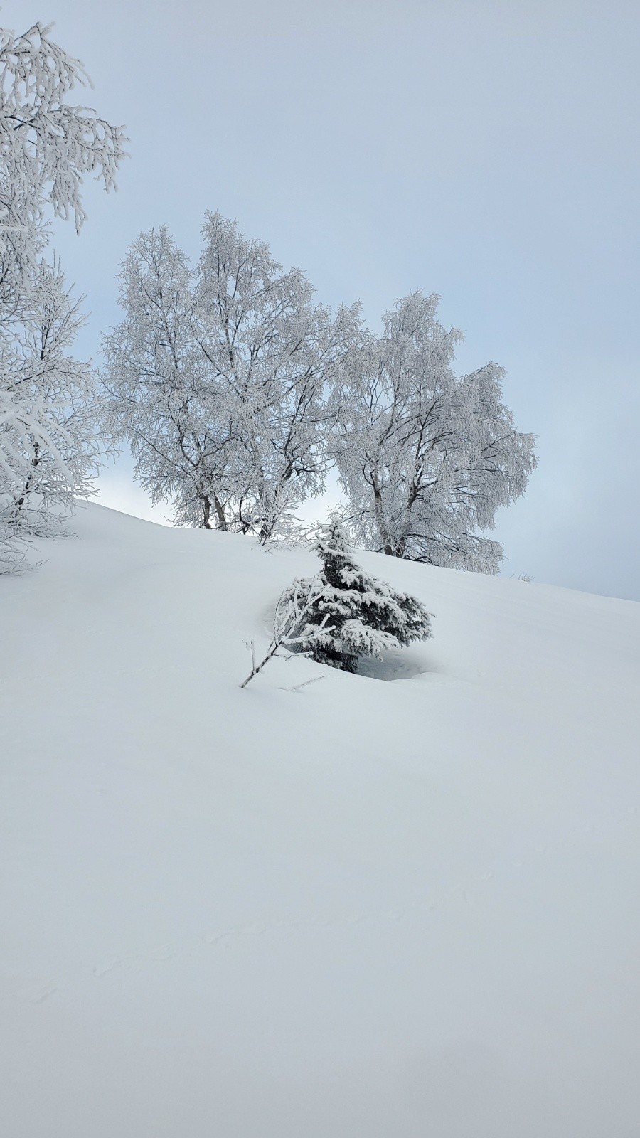 Conditions pour le ski : pas si mal grâce à la petite couche de 2cm tombée sans doute grâce au Givre... Le fond est dur mais avec un grip plutôt bon... Dommage que la visibilité empêche de se lâcher...