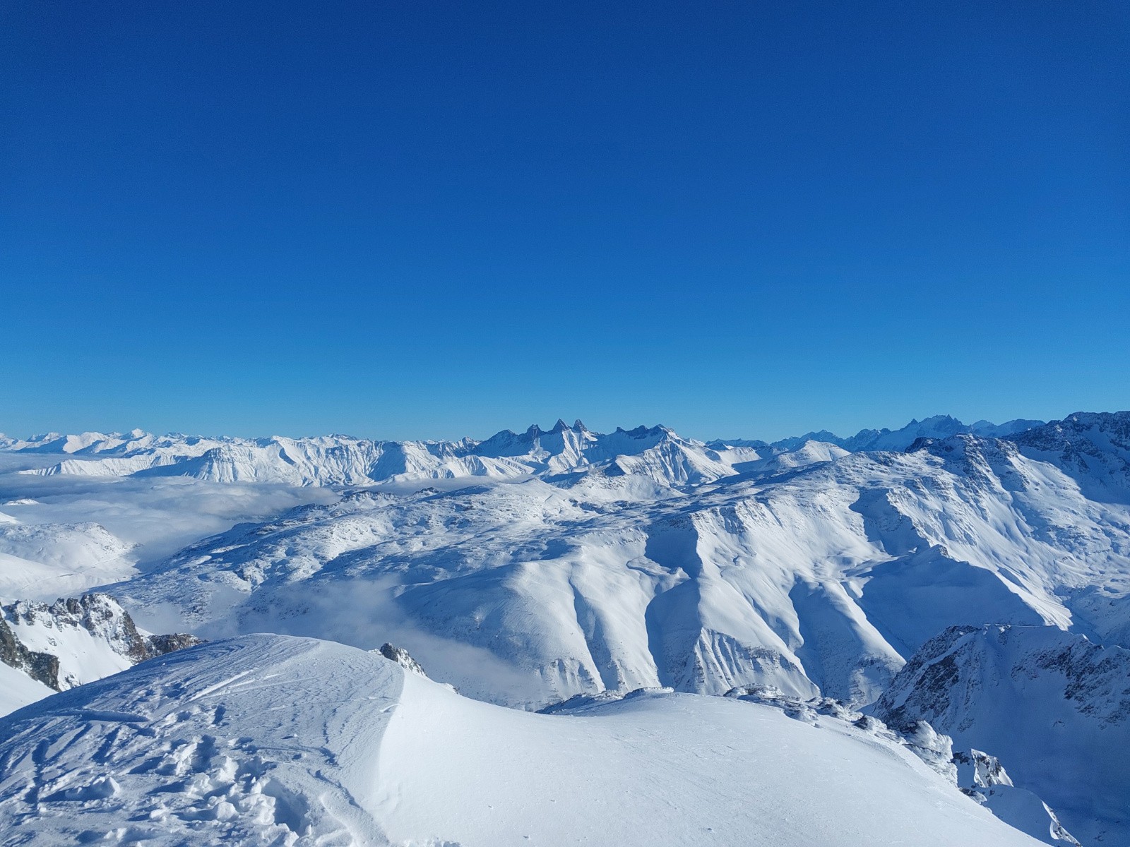 Conditions nivo et activité avalancheuse : De ce qu'on voyait, la pente sous le passage Brabant semblait très chargée, pour le reste ça semblait surtout bien soufflé. Vu une petite plaque dans une contrepente sur l'itinéraire de la Plagne Vaumard.