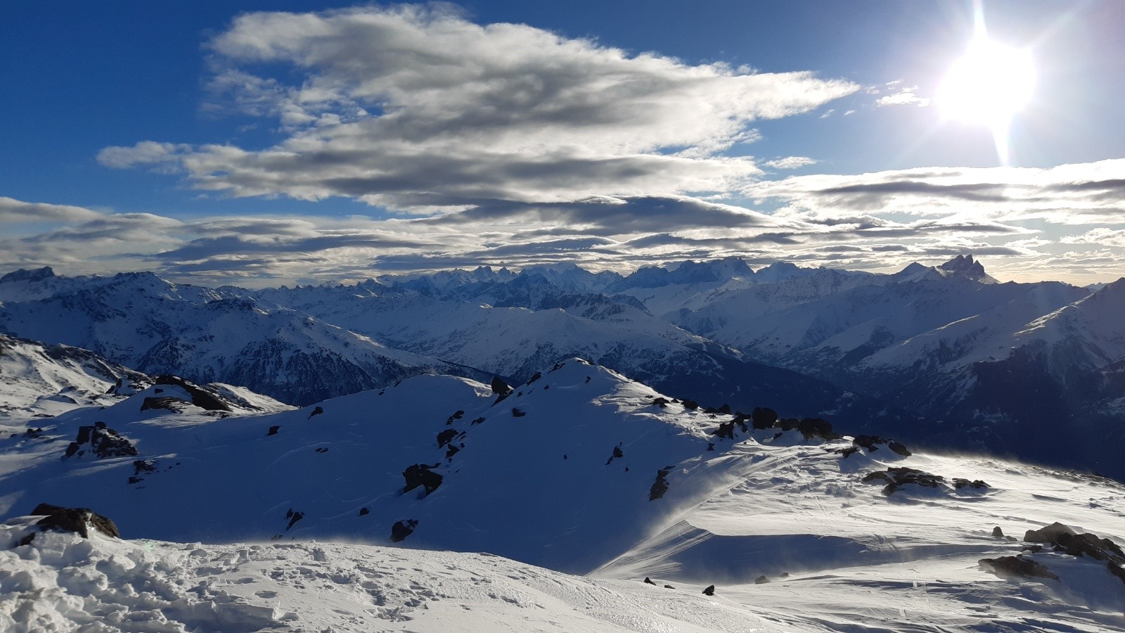 Météo/températures : 8° à 11h30, 4° à 17h15. Beau temps perturbé par qq passages nuageux. Quelques rafales de vent d´est sur le parcours et la crête finale.