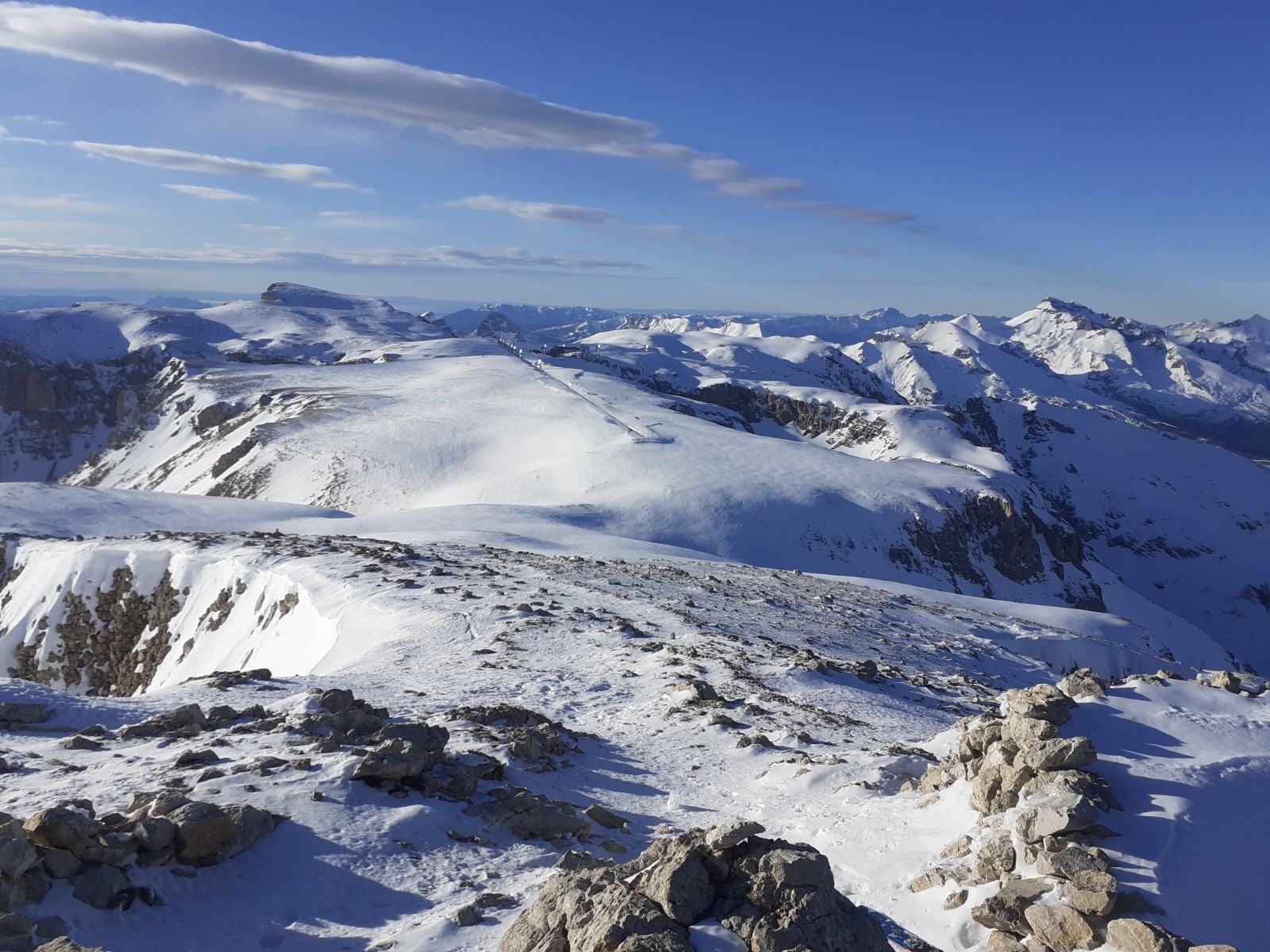 Météo/températures : Beau, s'ennuageant l'après midi. Vent frais sensible ralentissant le décaillage dans les endroits exposés (neige dure froide au dessus de 2400-2500m)