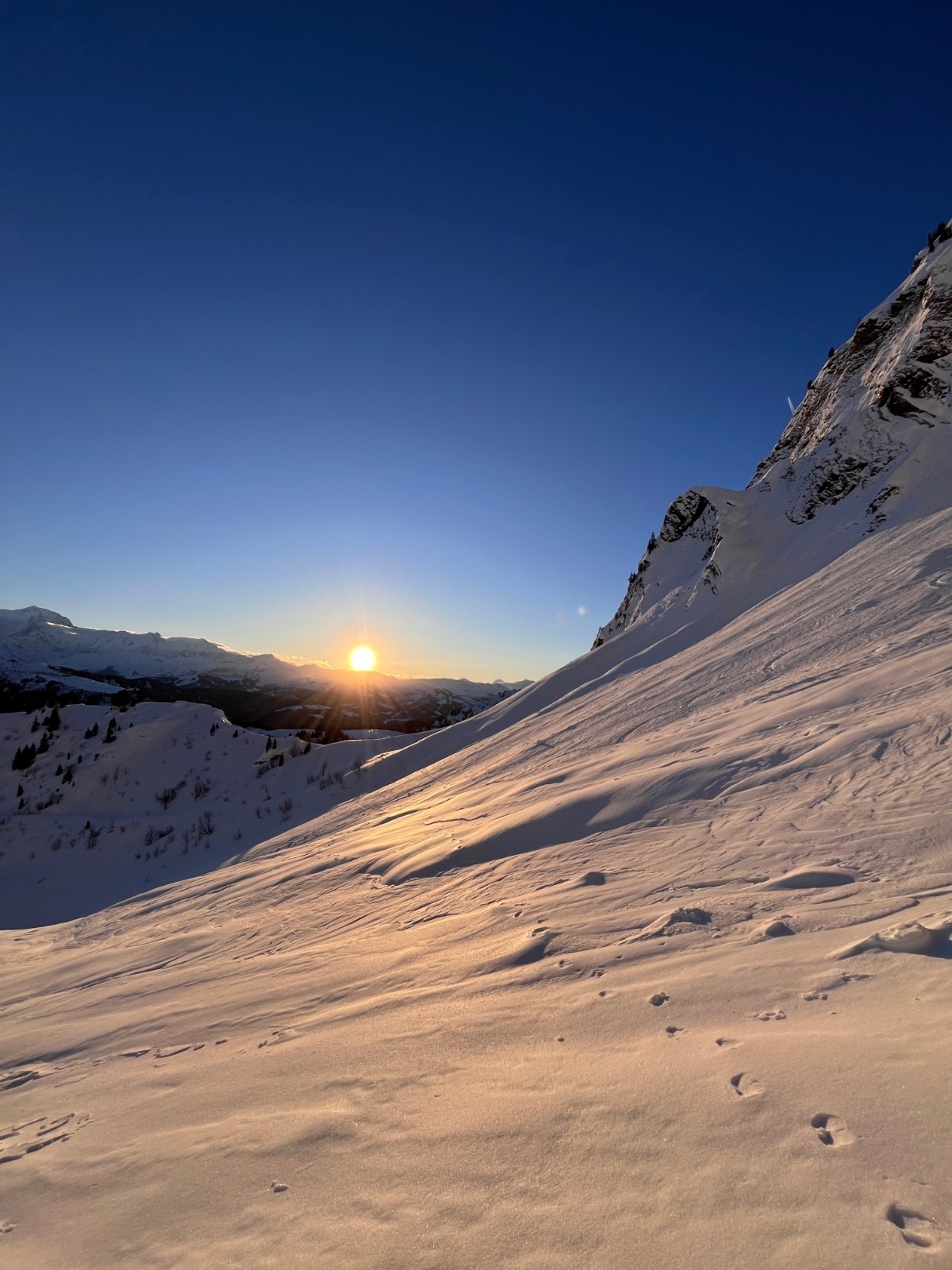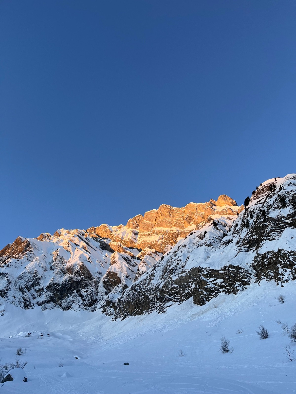 Conditions pour le ski : Neige dure crouté même à l'ombre, croûte assez épaisse, ca passe à travers sans prévenir. Ailleurs neige béton où les skieurs sont déjà passés, des plaques de glaces plus épaisses par endroit.