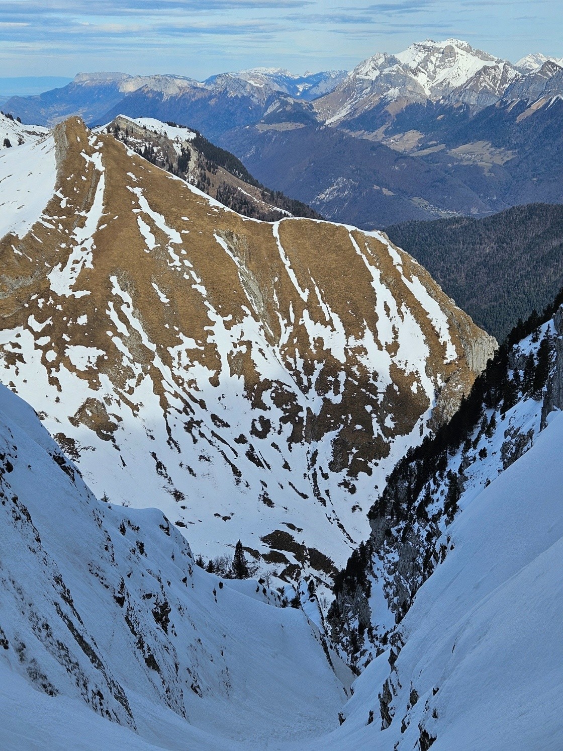 Conditions pour le ski : très bonnes, couloir nord vierge et couvert d'une petite couche de neige fraîche et dense (pas senti le fond dur excepté tout en bas). Un peu de glace et des cailloux dans le verrou sous la dent des Portes qui passe encore à ski. Pente sous la dent décaillée et sympa à skier vers 15 h malgré un aspect peu avenant.