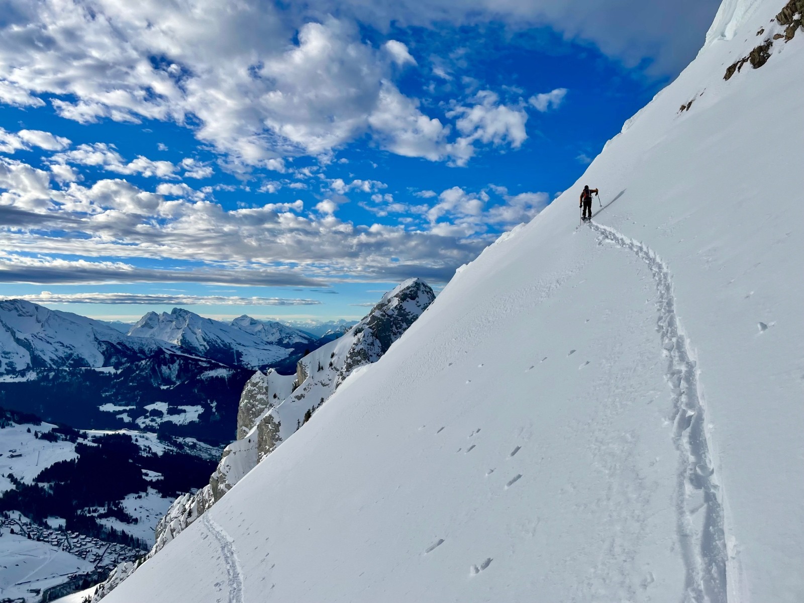 Sur la crête ce pan de neige nous saute aux yeux
