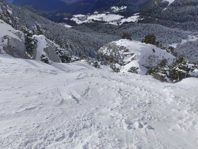 Conditions nivo et activité avalancheuse : comment dire, la couche de fraîche a été damée par les nombreux passages. Plus efficace qu'un PIDA ! J'ai lu dans le CR de ce matin (cette nuit ?) qu'il y avait des accus vers les paravalanches. Apparemment, un grande majorité ne s'est pas posé de question. C'est hyper tracé au-dessus, en-dessous des paravalanches.