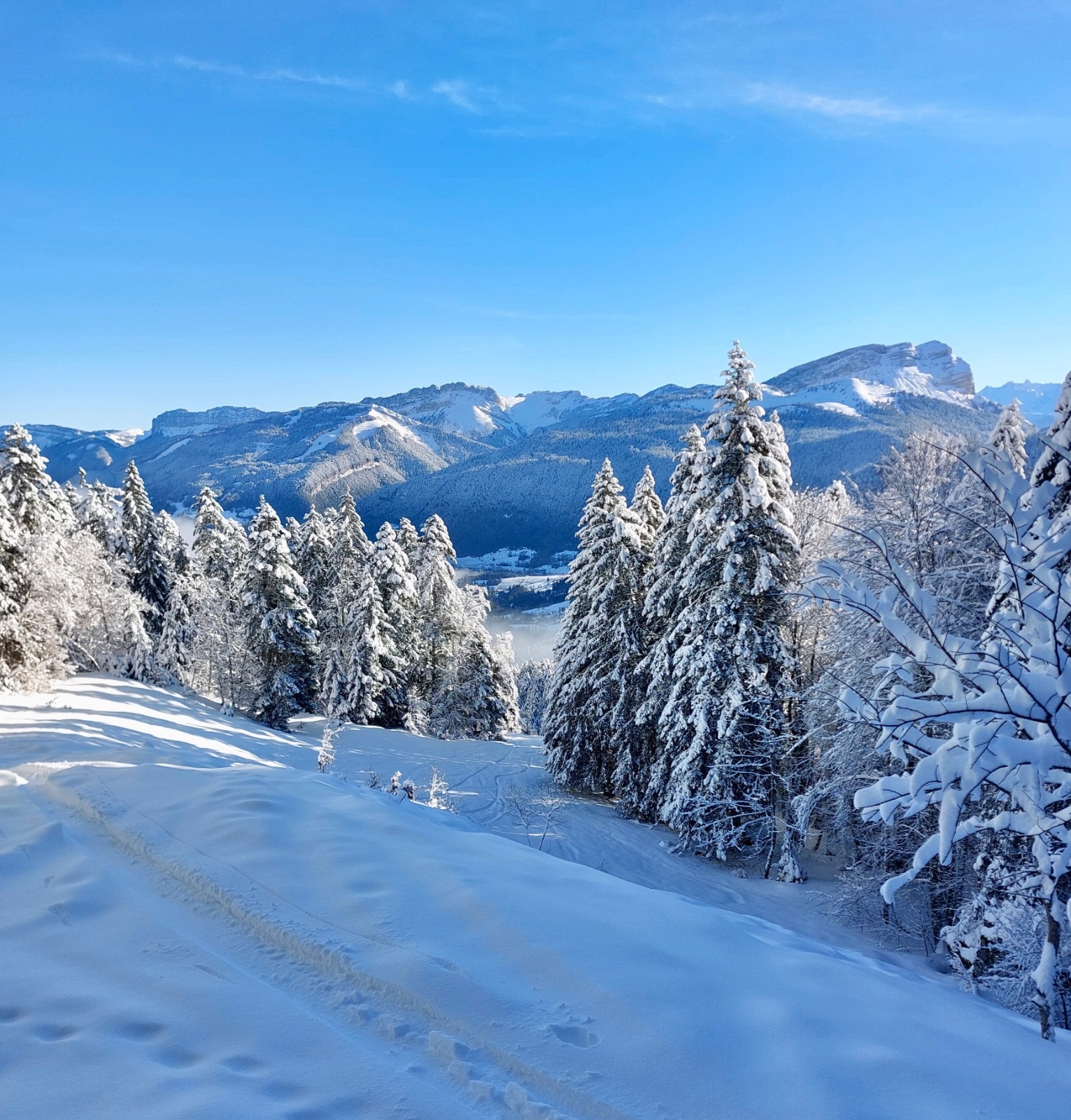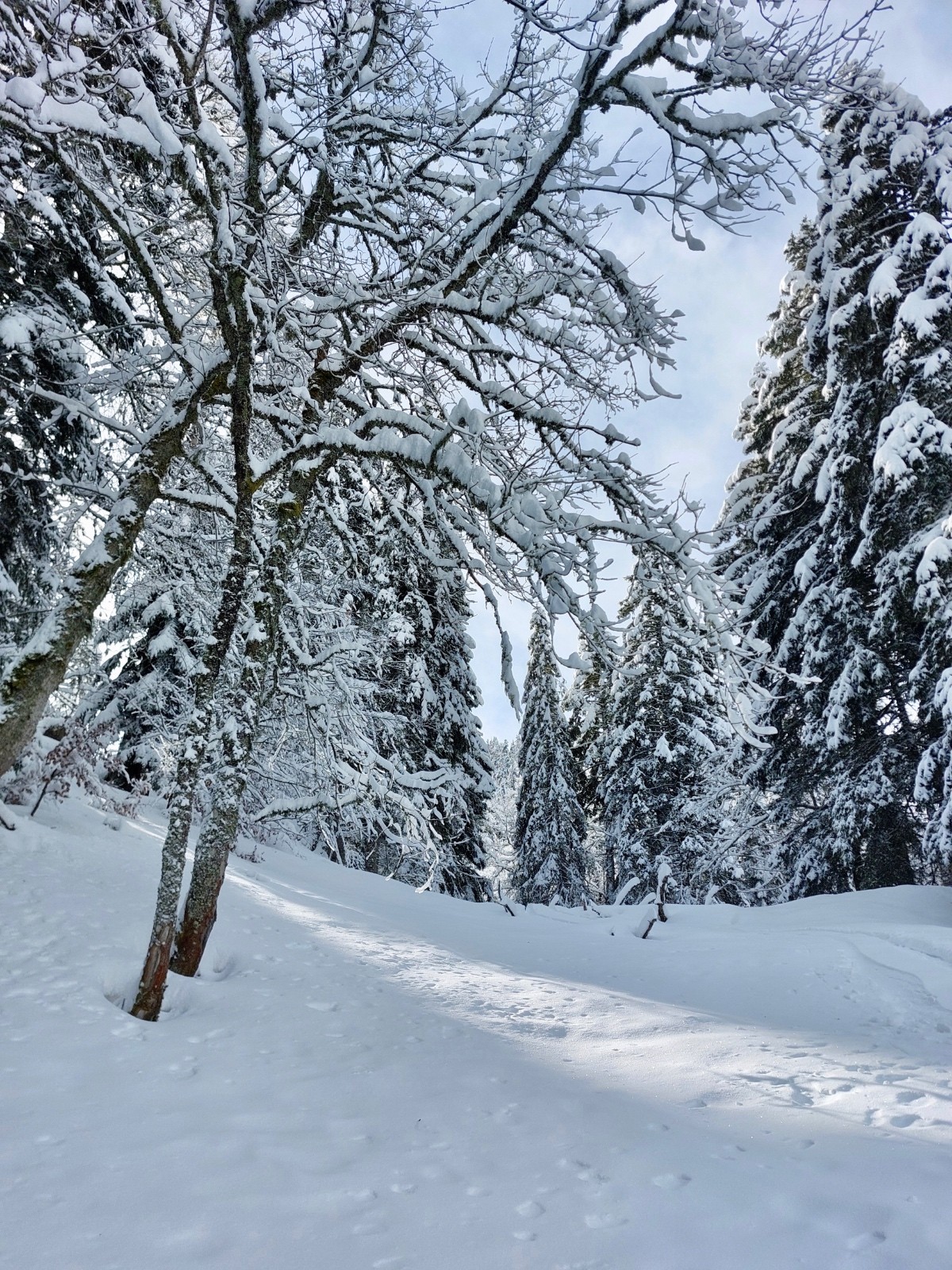 Conditions pour le ski : Bonne couche 10/15cm de neige fraiche partout sauf sur les crêtes balayées par le vent .Descentes en foret excellentes