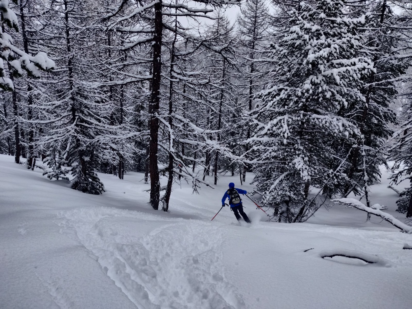 Conditions pour le ski : Poudreuse légère 5* grâce aux tombées de neige régulières dans la journée. Le fond humide des jours précédents s'est bien durci, un régal.