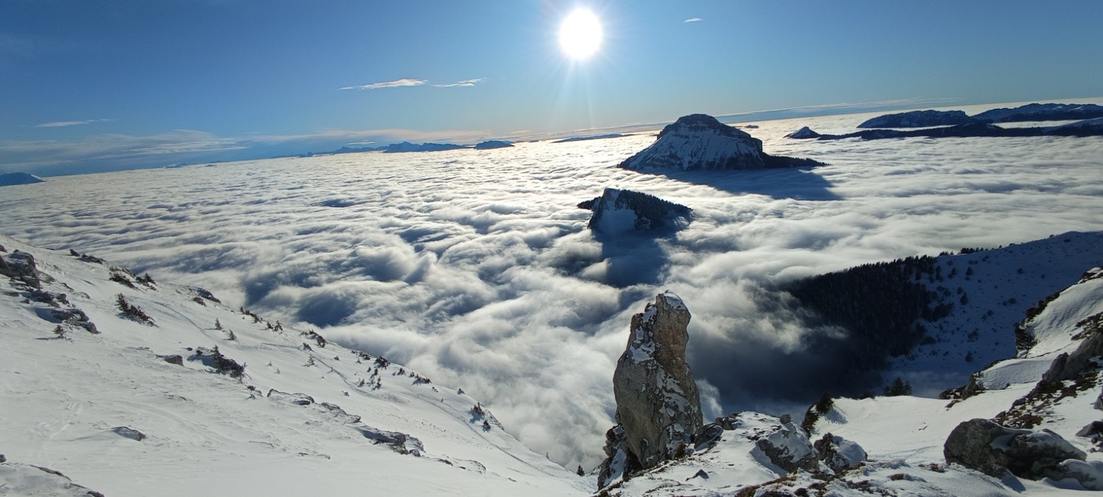 Itinéraire suivi : montée en vélo élec, arrête de la Gorgette à pied puis tout monté ski au pied. Un petit déchaussage dans le pas de l'oeil à la descente