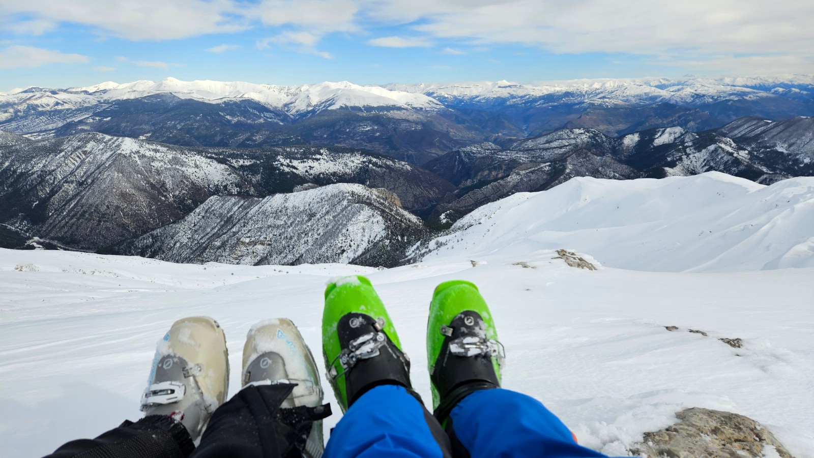 Arrivé sur la crête, il y a peu de neige, mais en passant en contrebas côté Nord, c'est bien fourni.