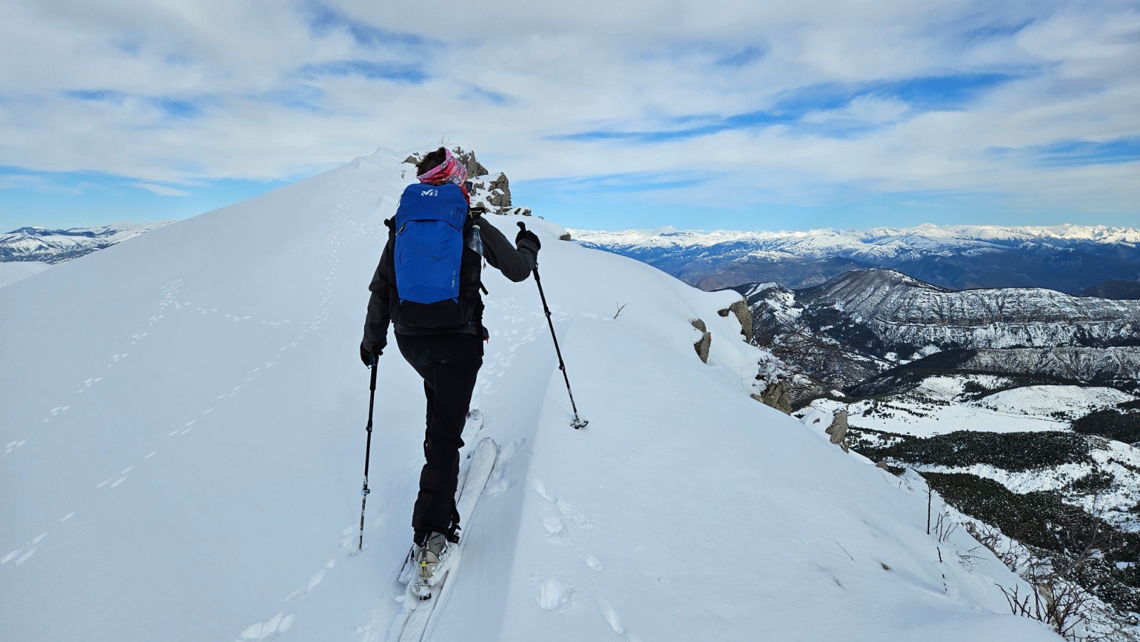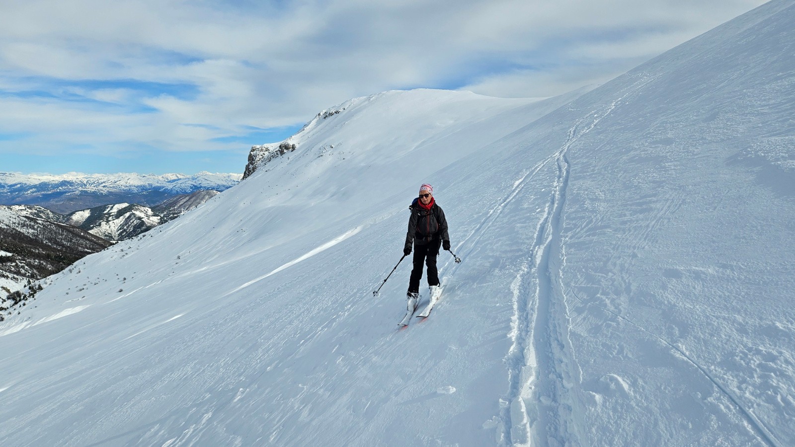 On mente sur une bonne neige portante jusqu'à la crête du Picogou en se servant d'une trace d'hier sans doute.