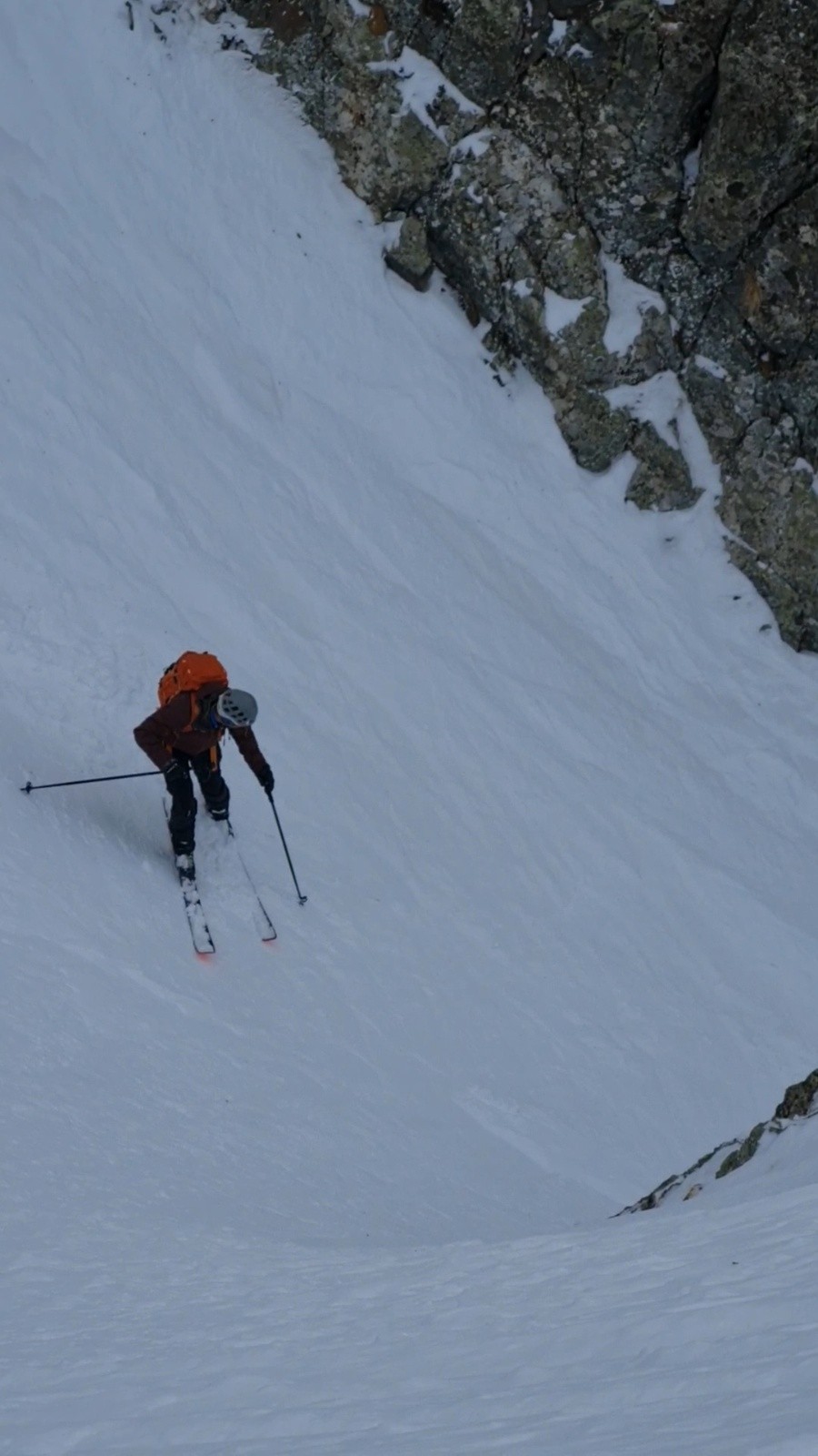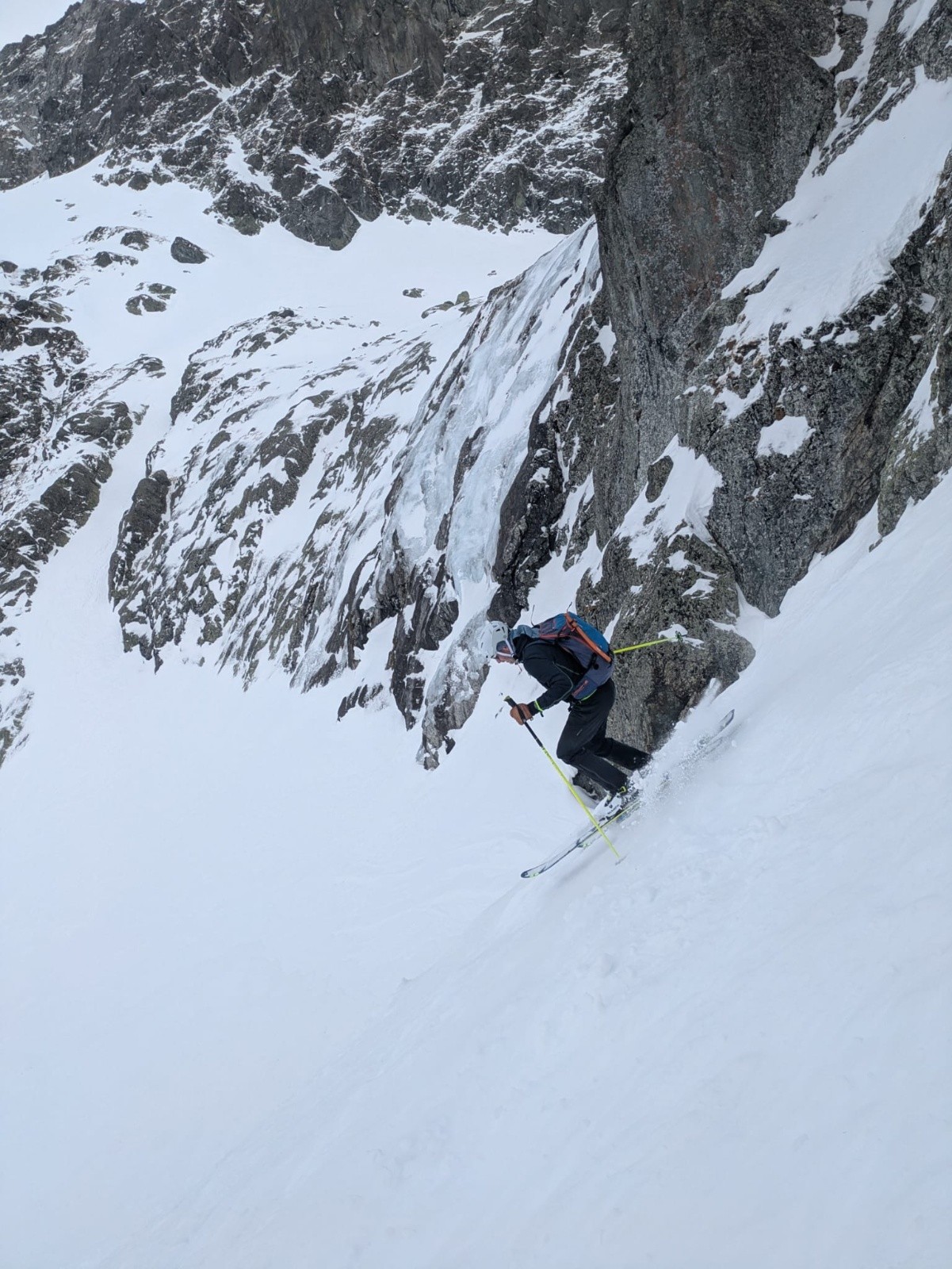 Conditions pour le ski : bonnes conditions, neige correcte, vieille poudre, tassée, humidifiée, quelques cailloux à éviter dans le bas.