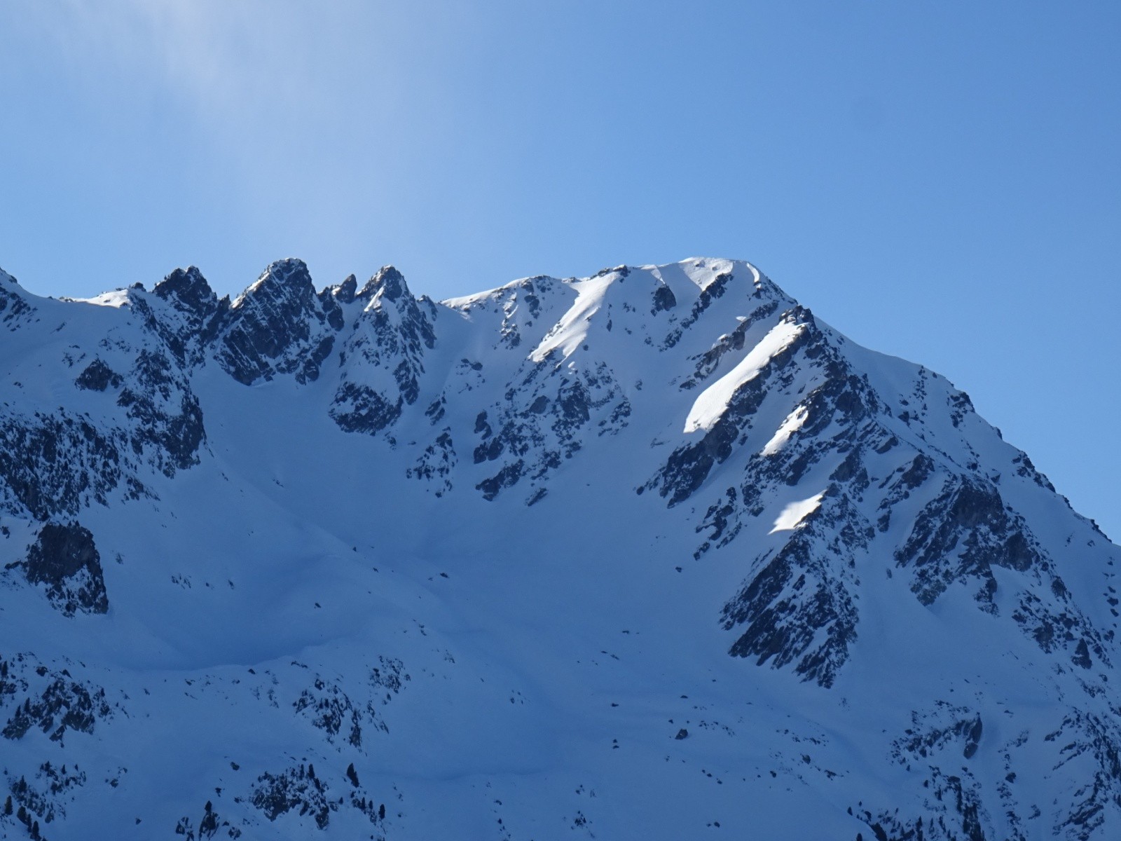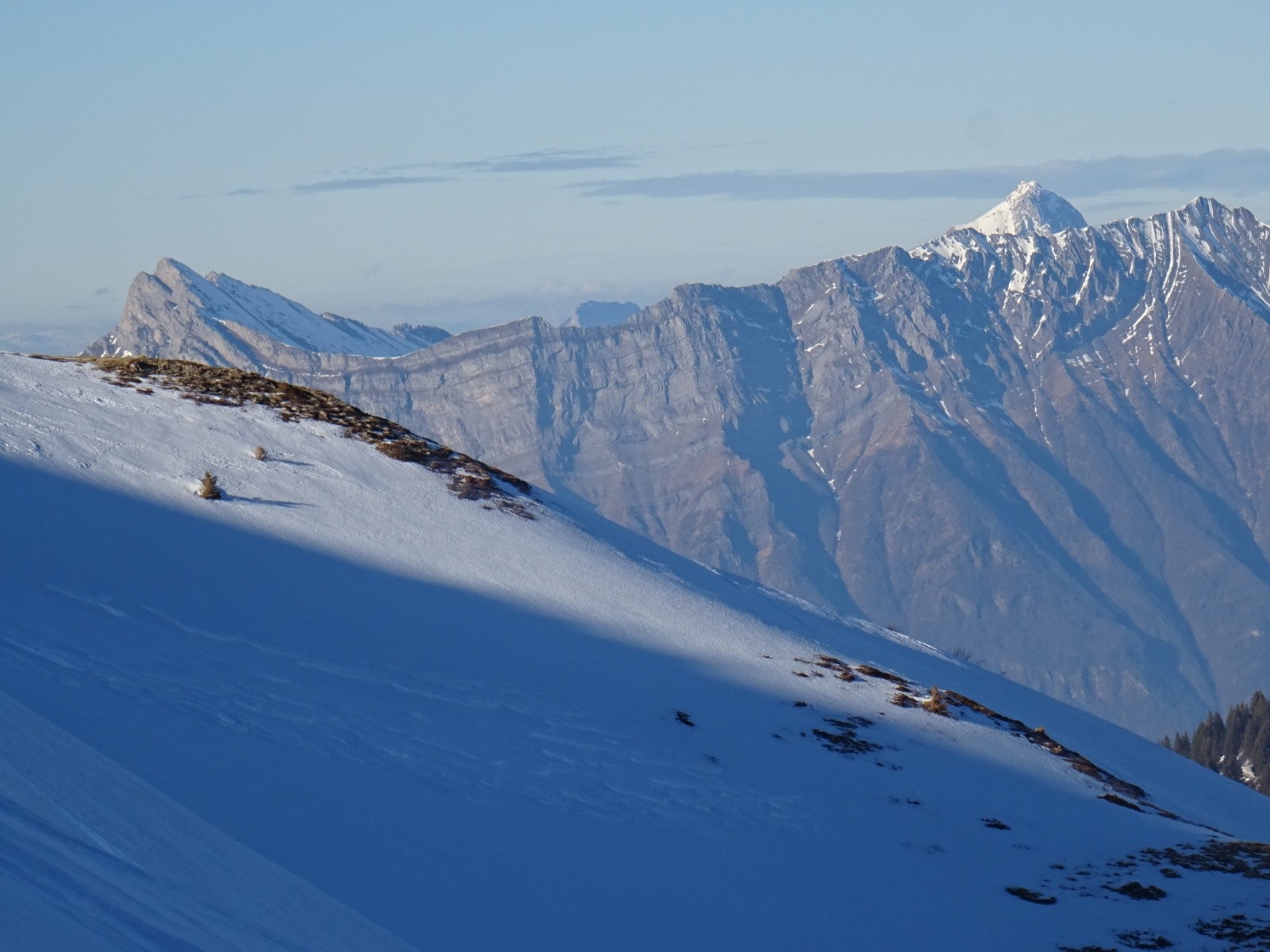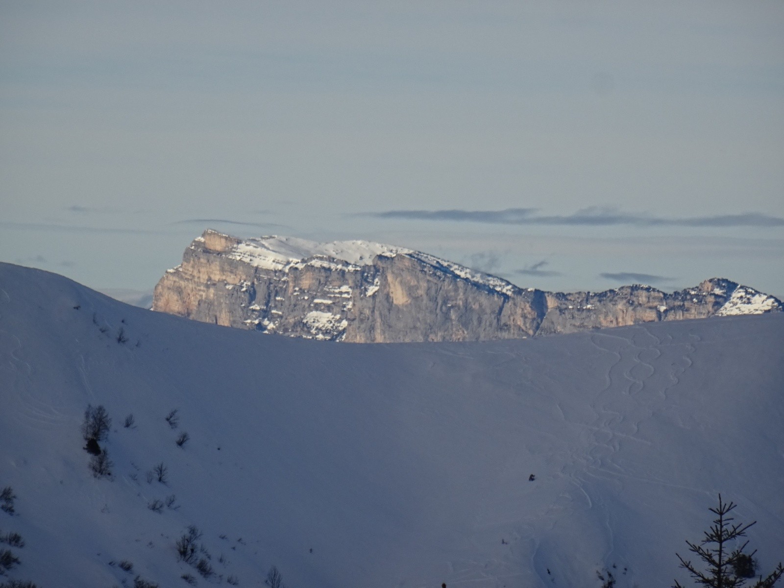 Initialement partis pour le tour du Rognier "façon Friz" (via le Pas du Gargoton avec incartade en Sud), nous changeons d'itinéraire - avec quelques hésitations/atermoiements un peu durables, avouons-le - du fait du vent sensible (pénible) jusque avec 11h et de la neige qui reste bien dure. Finalement nous optons d'abord pour une petite itinérance en Nord du Chapotet, puis la remontée/descente de la face Nord du Rognier - à tracer, bien plaisante à l'aller comme au retour, c'est superbe !