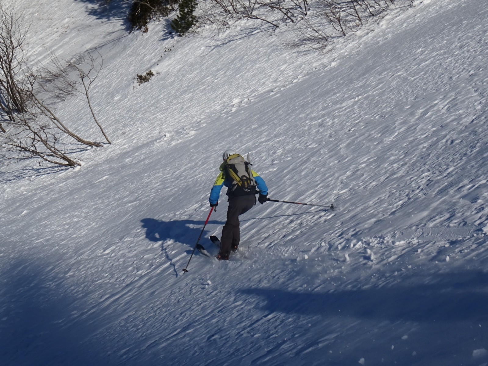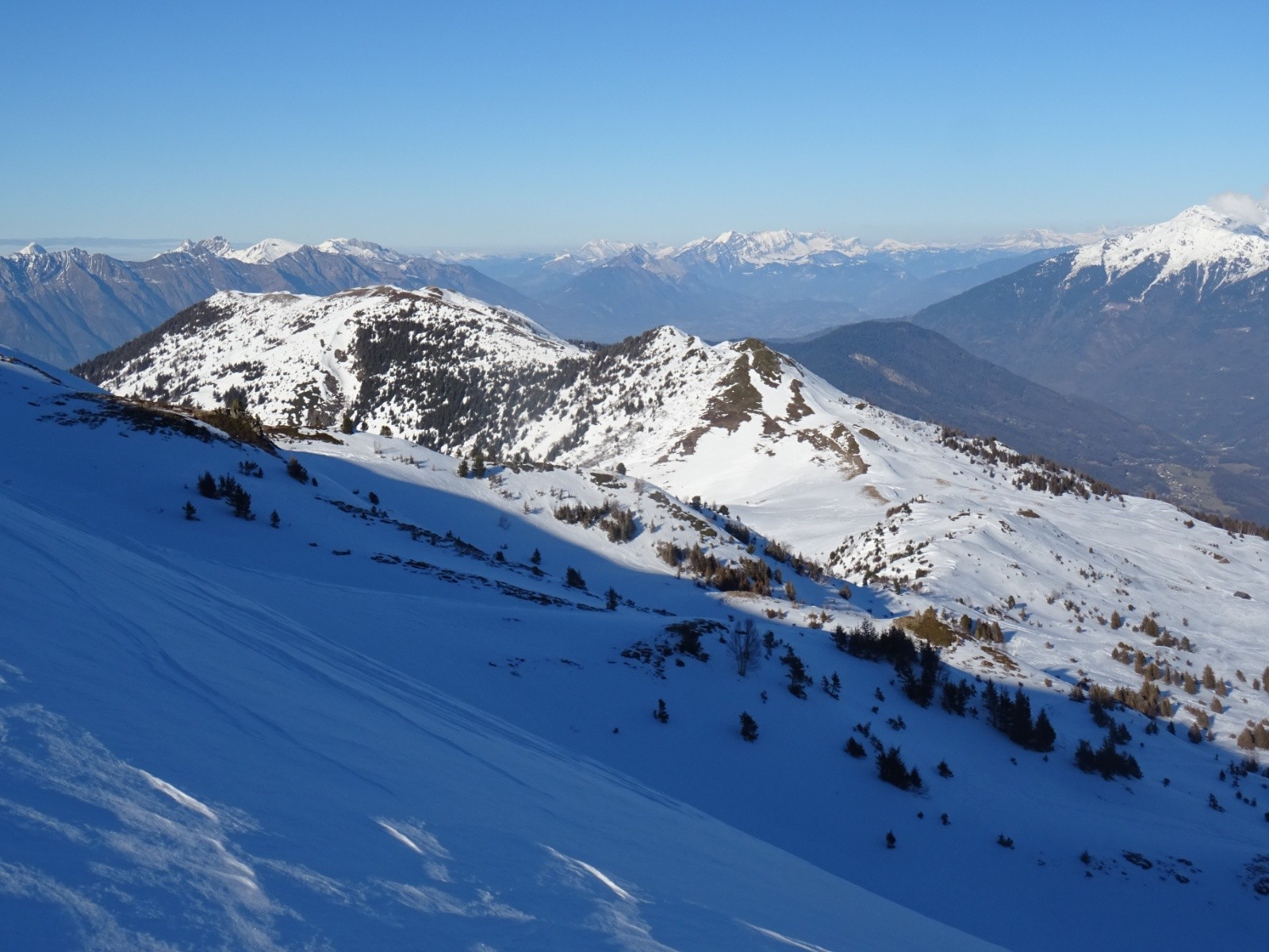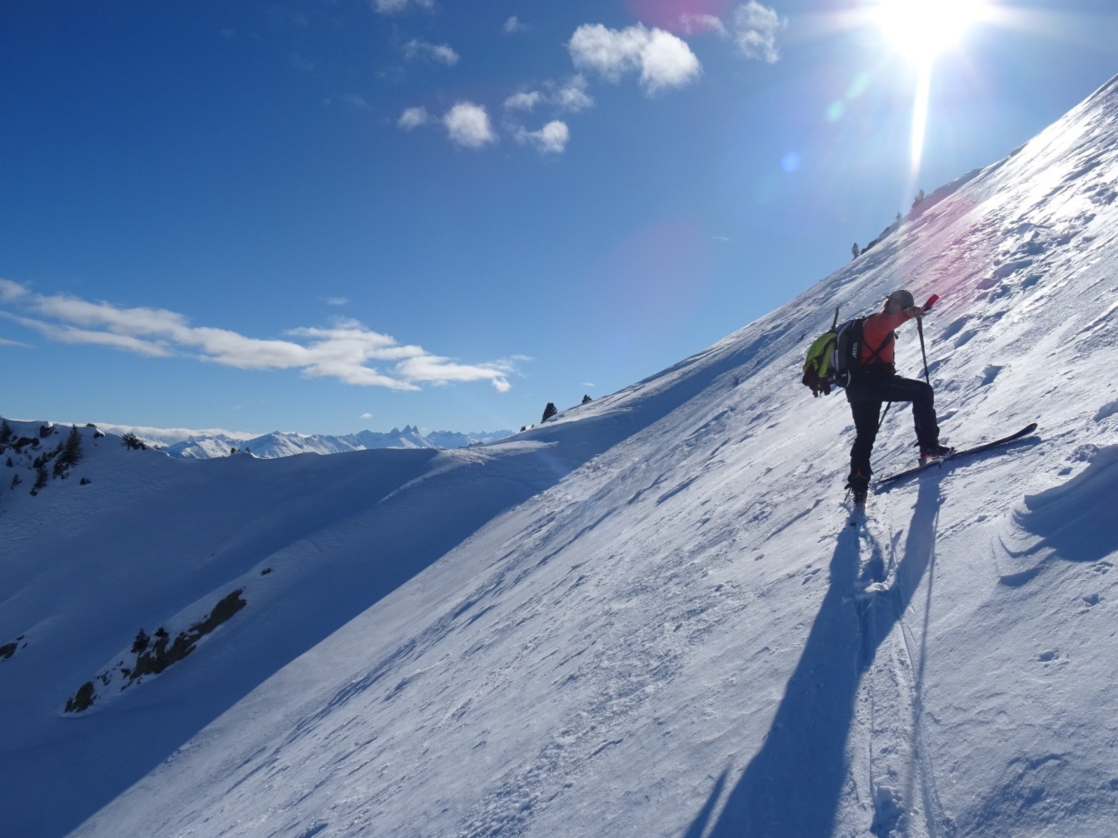 Initialement partis pour le tour du Rognier "façon Friz" (via le Pas du Gargoton avec incartade en Sud), nous changeons d'itinéraire - avec quelques hésitations/atermoiements un peu durables, avouons-le - du fait du vent sensible (pénible) jusque avec 11h et de la neige qui reste bien dure. Finalement nous optons d'abord pour une petite itinérance en Nord du Chapotet, puis la remontée/descente de la face Nord du Rognier - à tracer, bien plaisante à l'aller comme au retour, c'est superbe !