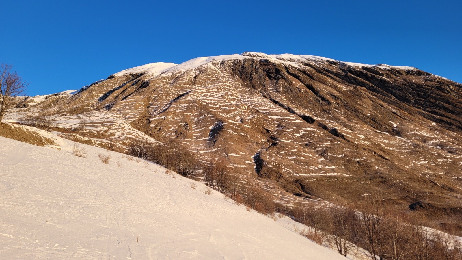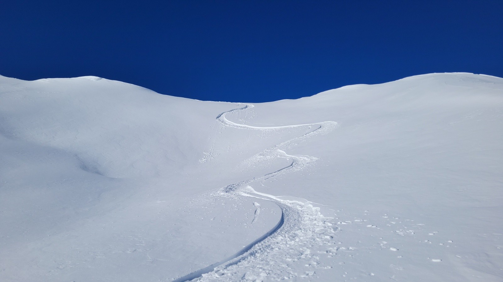 Conditions pour le ski : neige dure avec de la petite poudre qui apparaît vers 1500 m. Au dessus on a plus de 20 cm de poudre