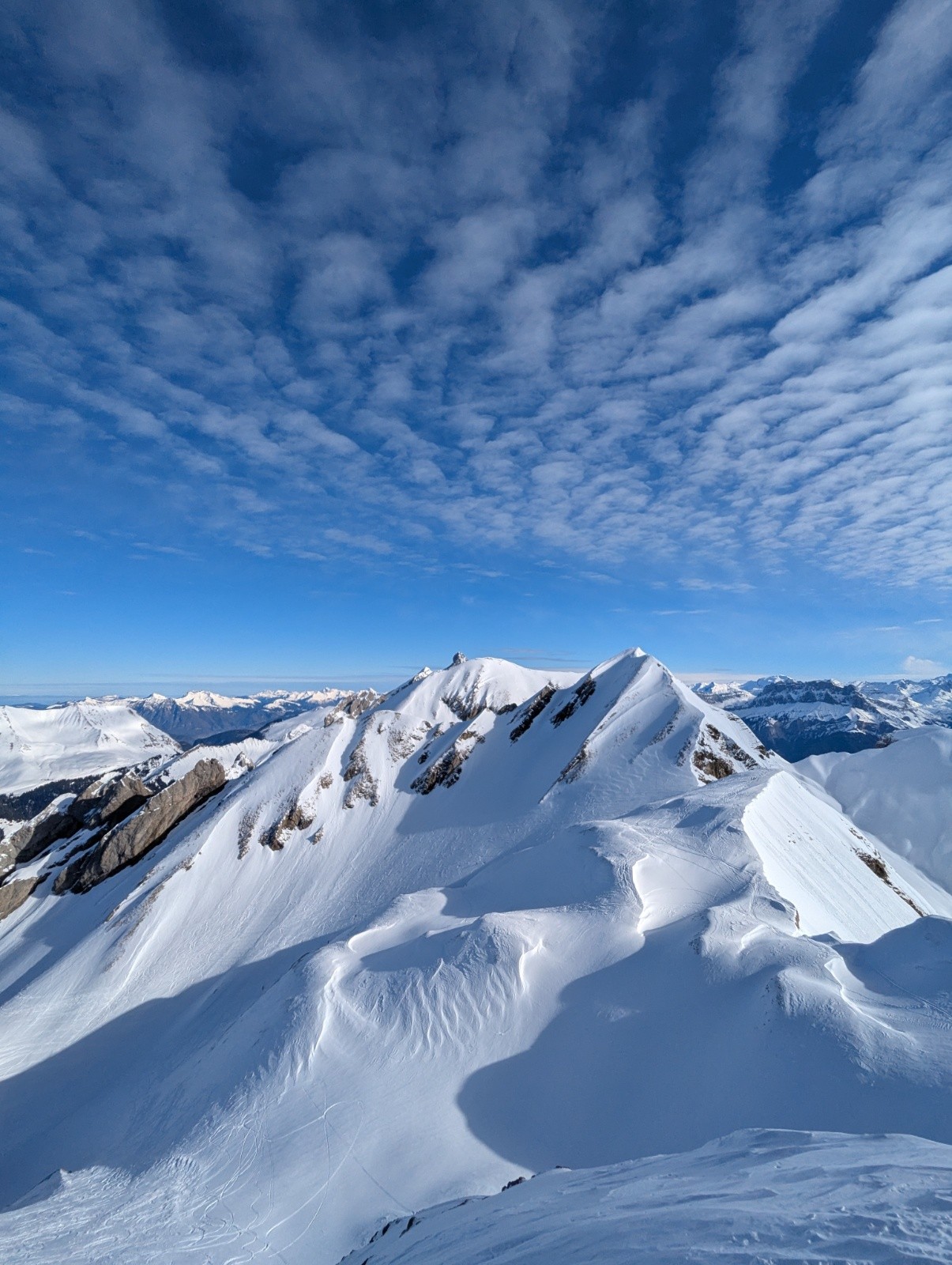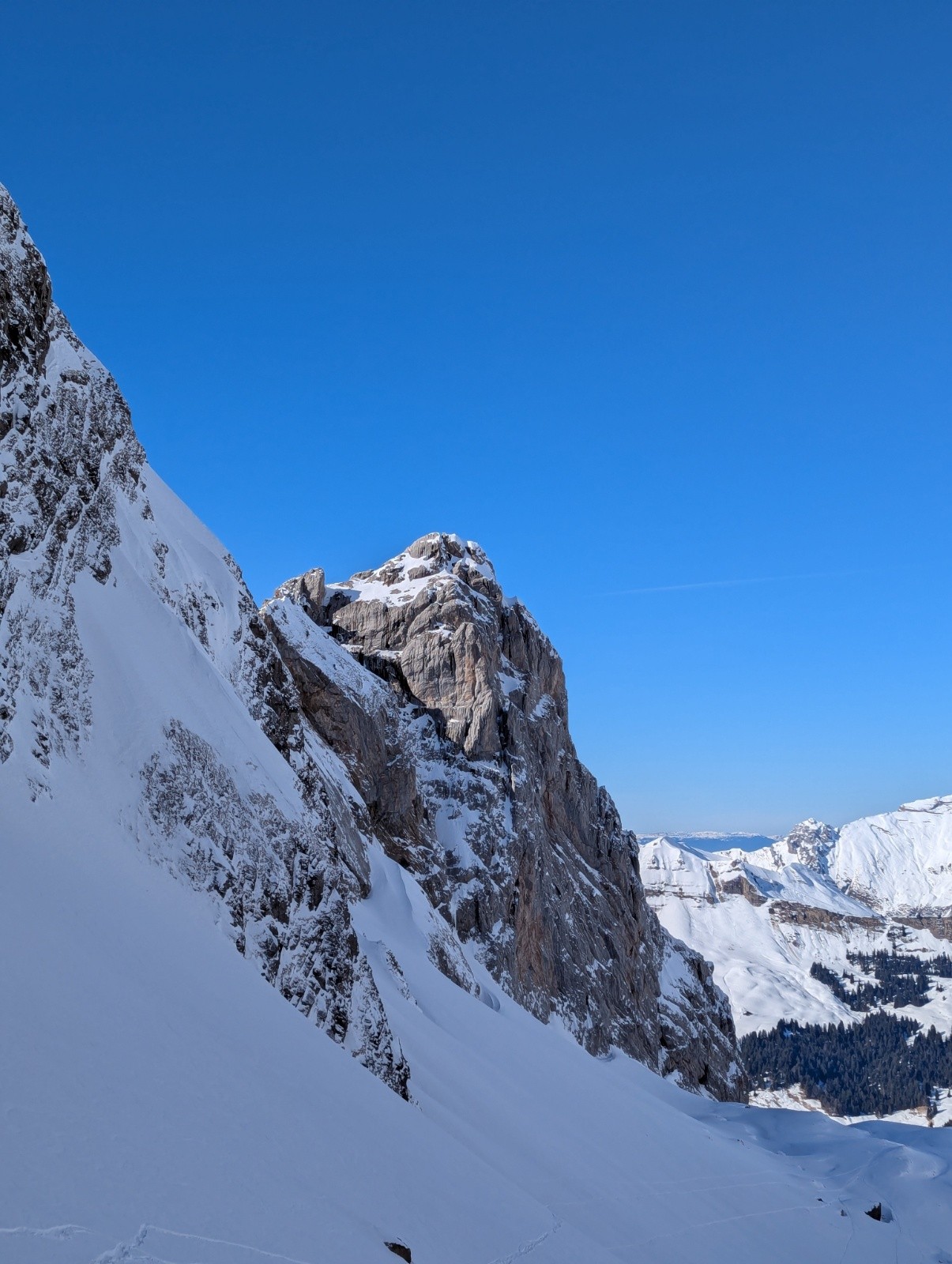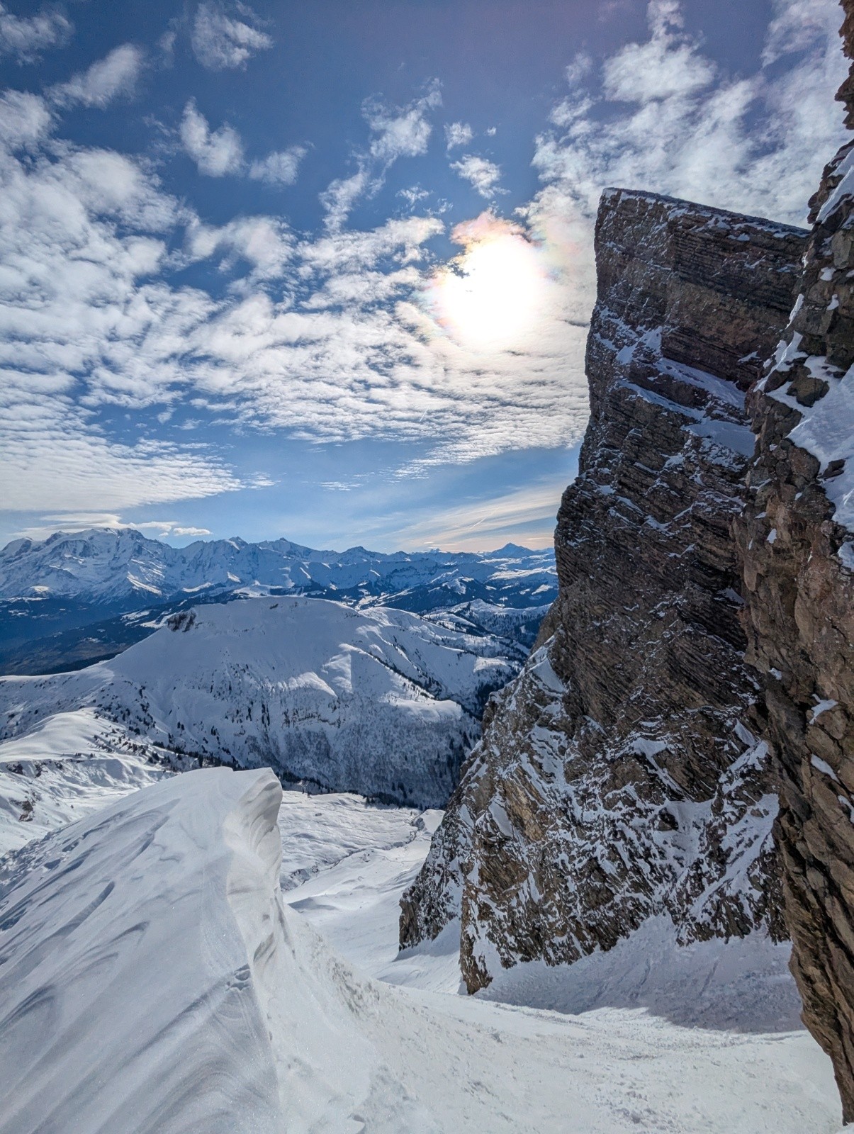 Conditions pour le ski : Excellente ! Froid et léger dans les combes. Printemps très humide au passage du père (pente sud raide donc logique). Neige plus lourde à Tré le Crot, ça battait. Neige fabuleuse à la Grande Forclaz, juste le haut est soufflé !