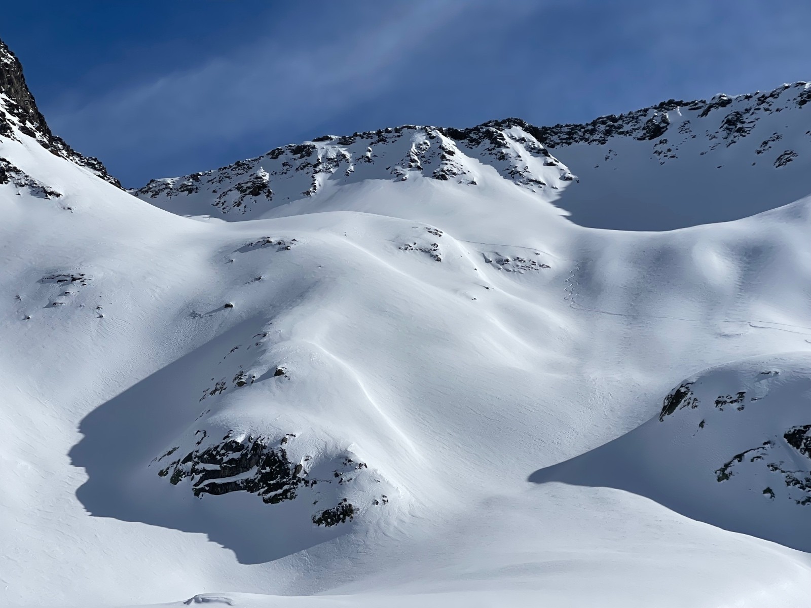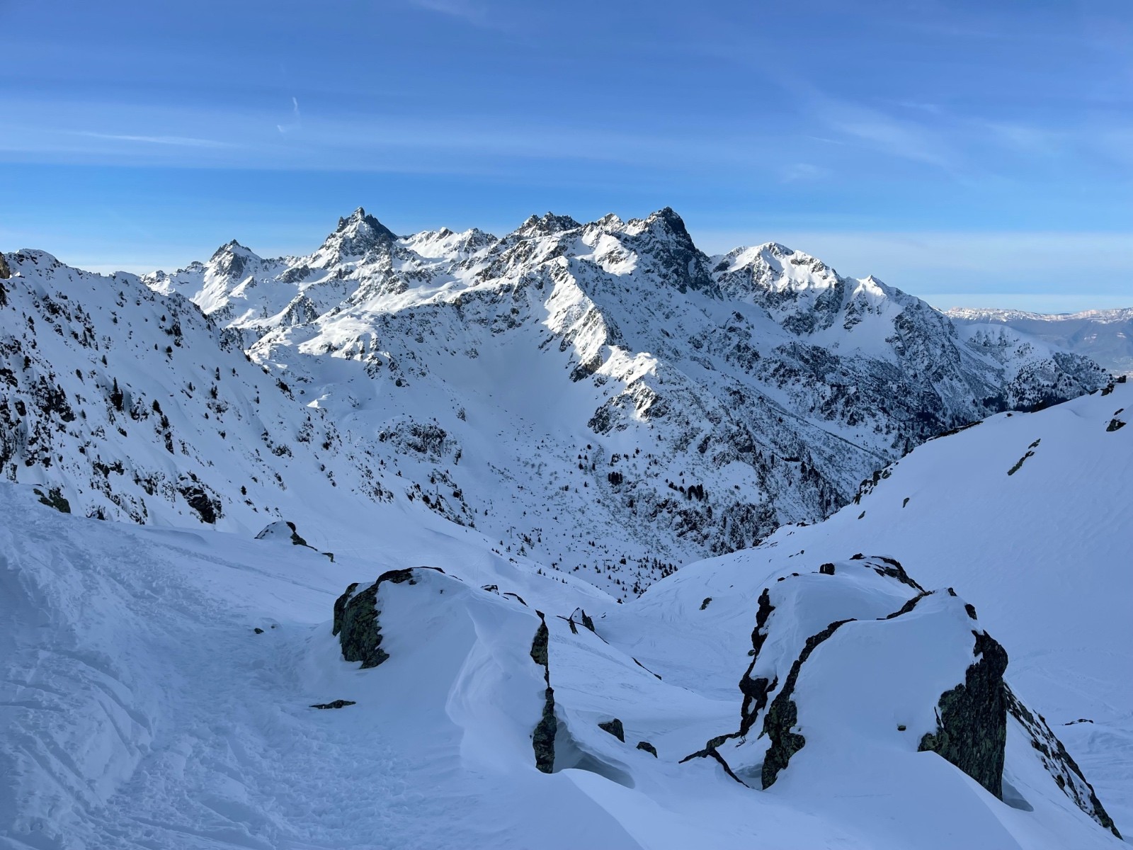 Rocher blanc, descente SE : après un petit couloir S bien tassé, on a trouvé pas mal de poudre !