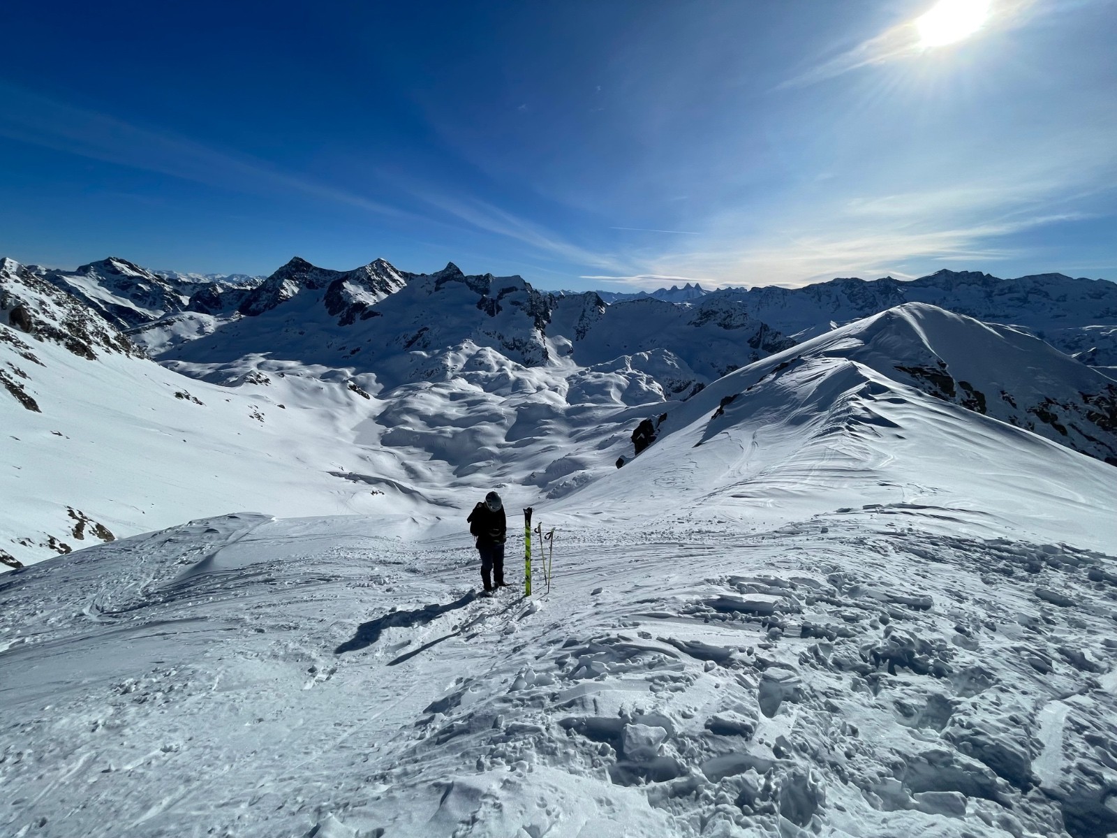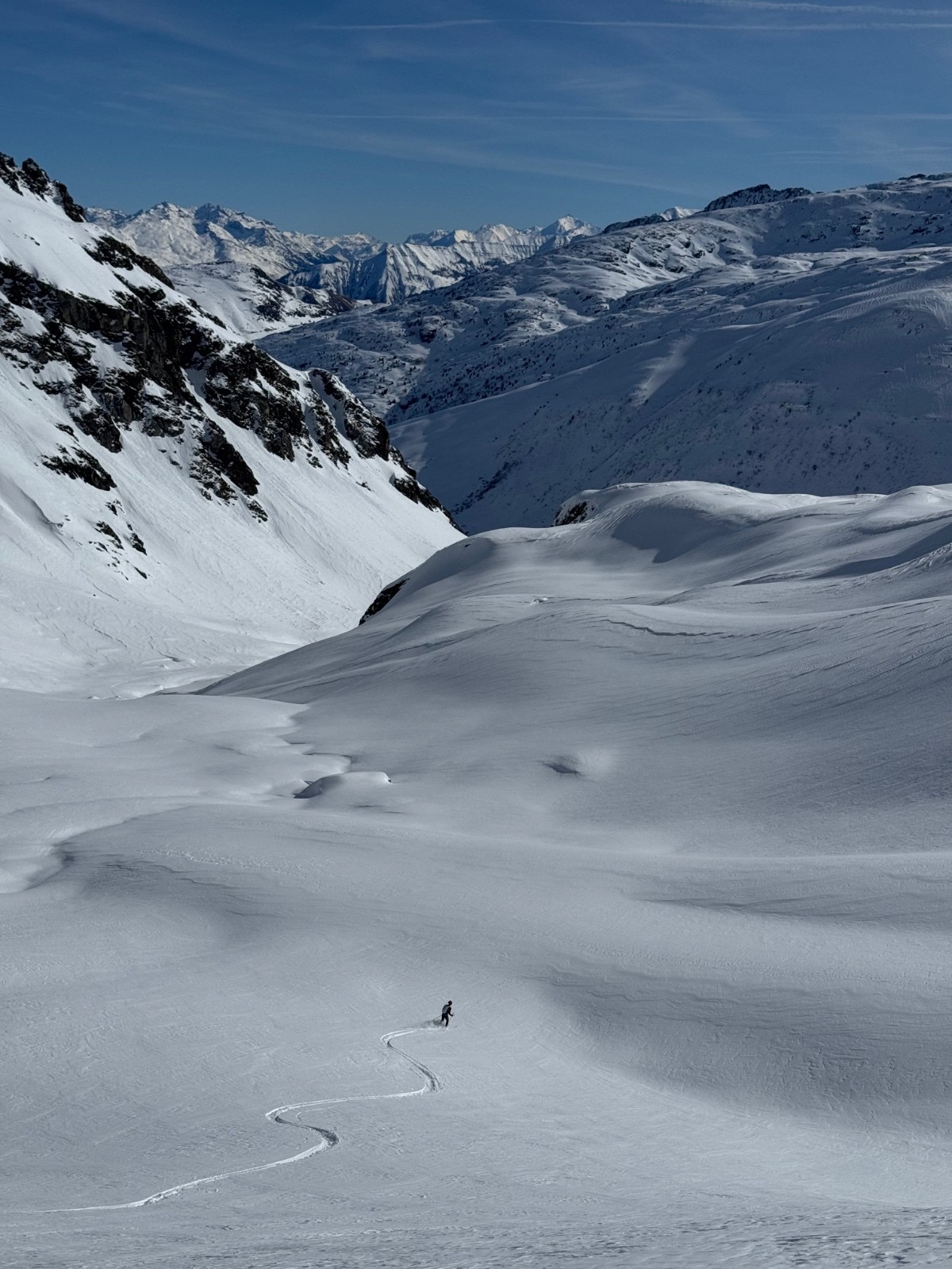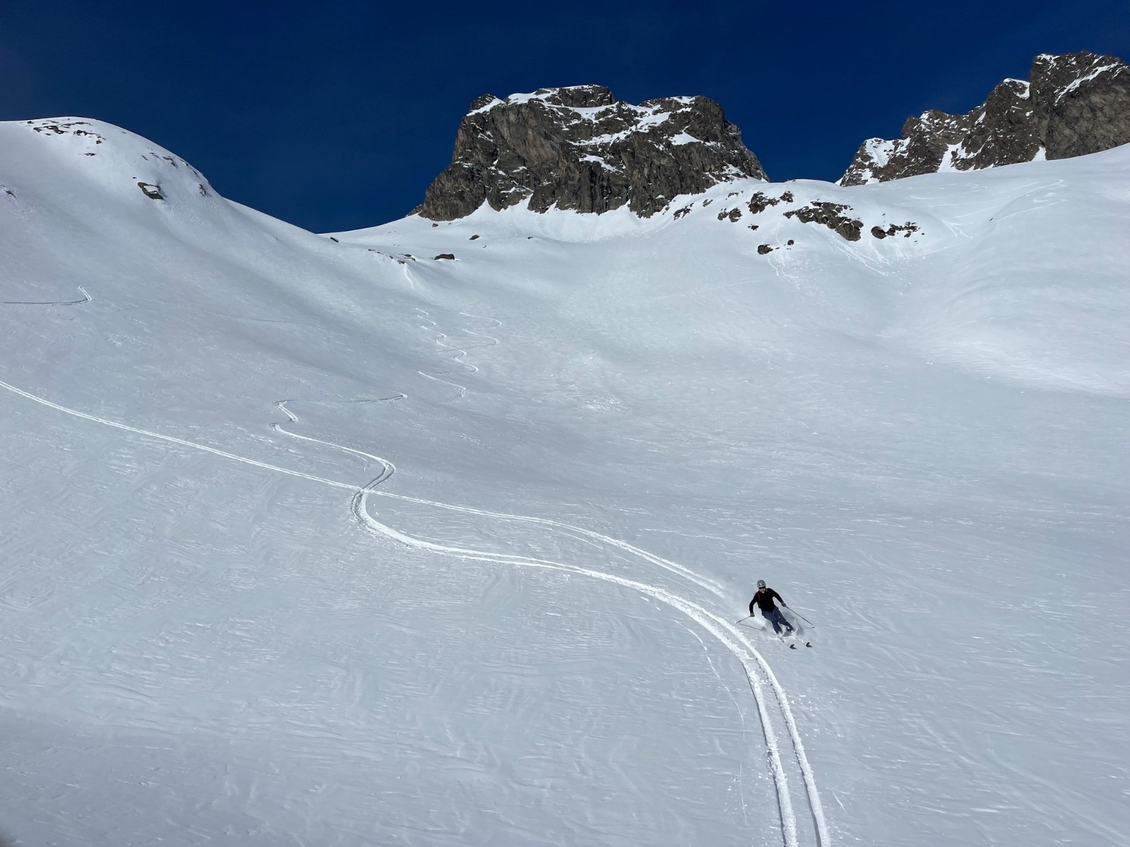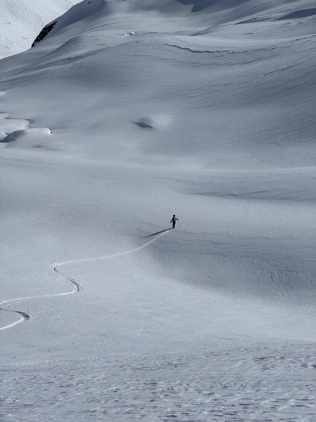 L’impression, souvent, de skier le désert, tant le vent y avait façonné des dunes, mais entre celles-ci, le limon resté poudreux fut fertile en godilles ! Dépaysement garanti, et paysages inoubliables, pour ce voyage vers l’orient qui fait passer le col de la vache pour un mélancolique retour à la civilisation.