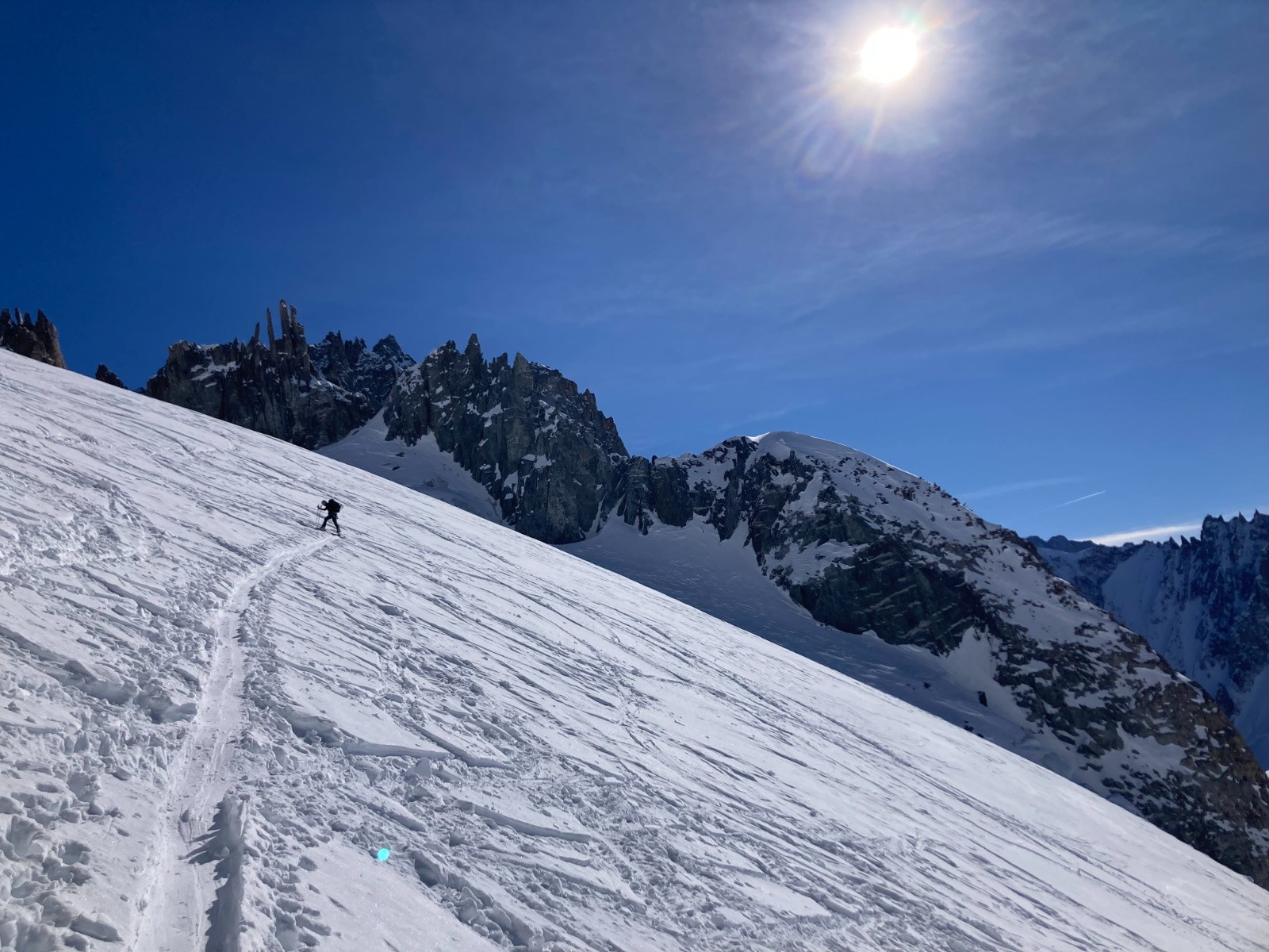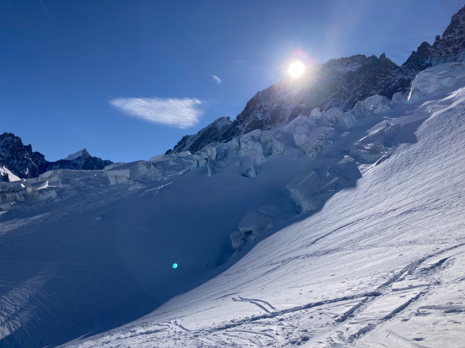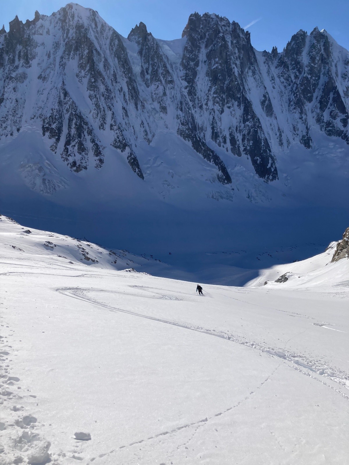 - descente du Glacier d' Argentière et boarder de Lognan en bonnes conditions, bien plein - 2 courtes remontées skis au pieds et très peu de pousse batons pour rejoindre Lognan