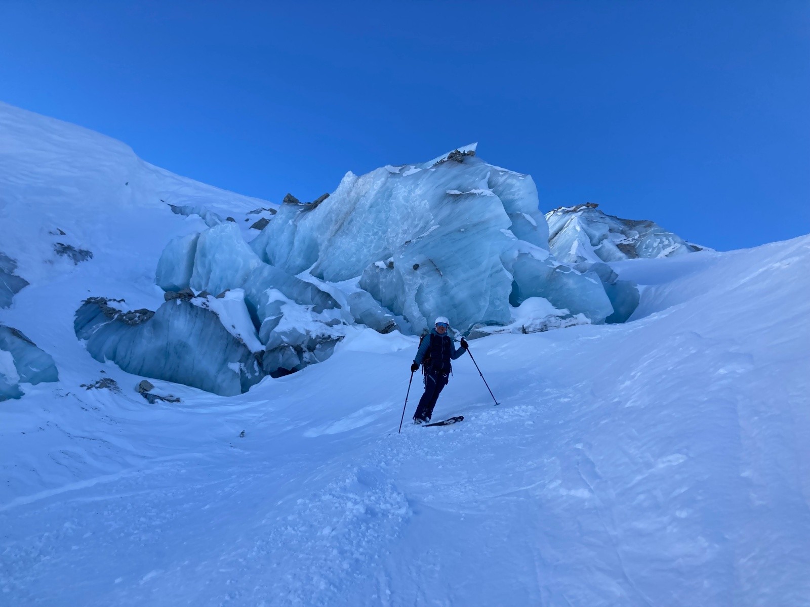 * 2 derniers tiers du glacier toute rive droite: transfo, un peu physique mais bien bonne à skier jusqu'en bas. Il reste de la place ...