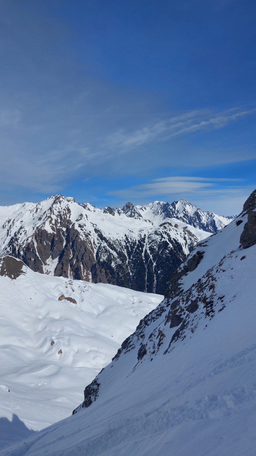 Itinéraire suivi : Depuis le parking on a tiré droit dans le champs du coup portage sur 350/400D+ ensuite on a pu chausser. Dès 9h le soleil tapait déjà fort pour fin février. On a fait comme indiqué sur le topo, nous avons pris la variante couloir N (même que sur la photo) et nous avons remonté par la voie normal et redescendu par ce dernier.