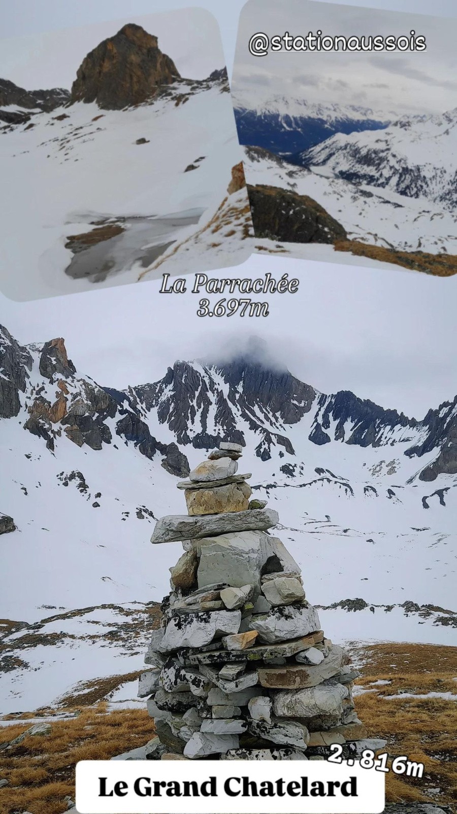Itinéraire suivi : Aussois, front de neige, l'Ortet, variante itinéraire de rando, piste Eterlou, Domaine, TS Fournache, descente dans vallon, Grand Chatelard, retour via TS Fournache et domaine