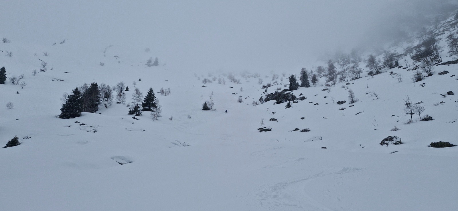 Conditions pour le ski : rien en bas. 5 cm à 1500 m, 10 cm à 1700m, 20 cm à partir de 2000m. Poudre sur fond dur puis lourde sous 1700 m.