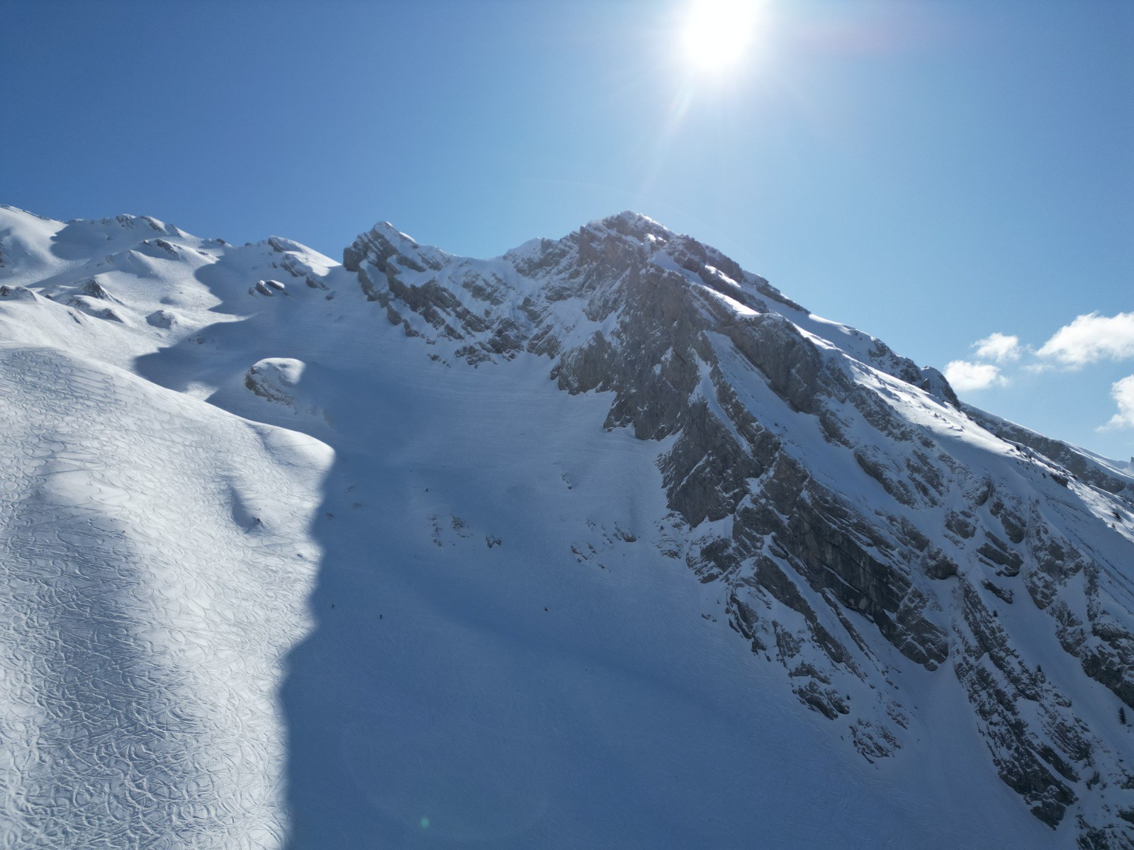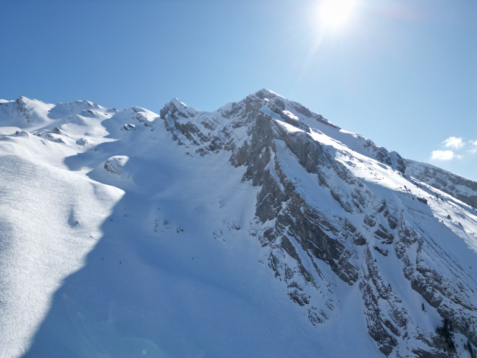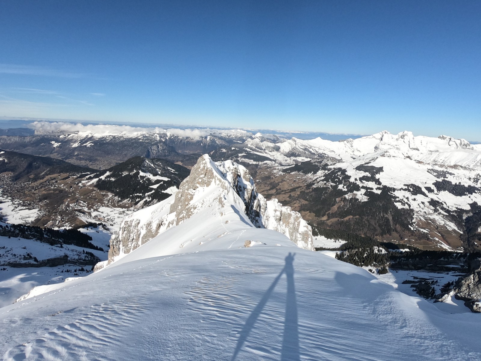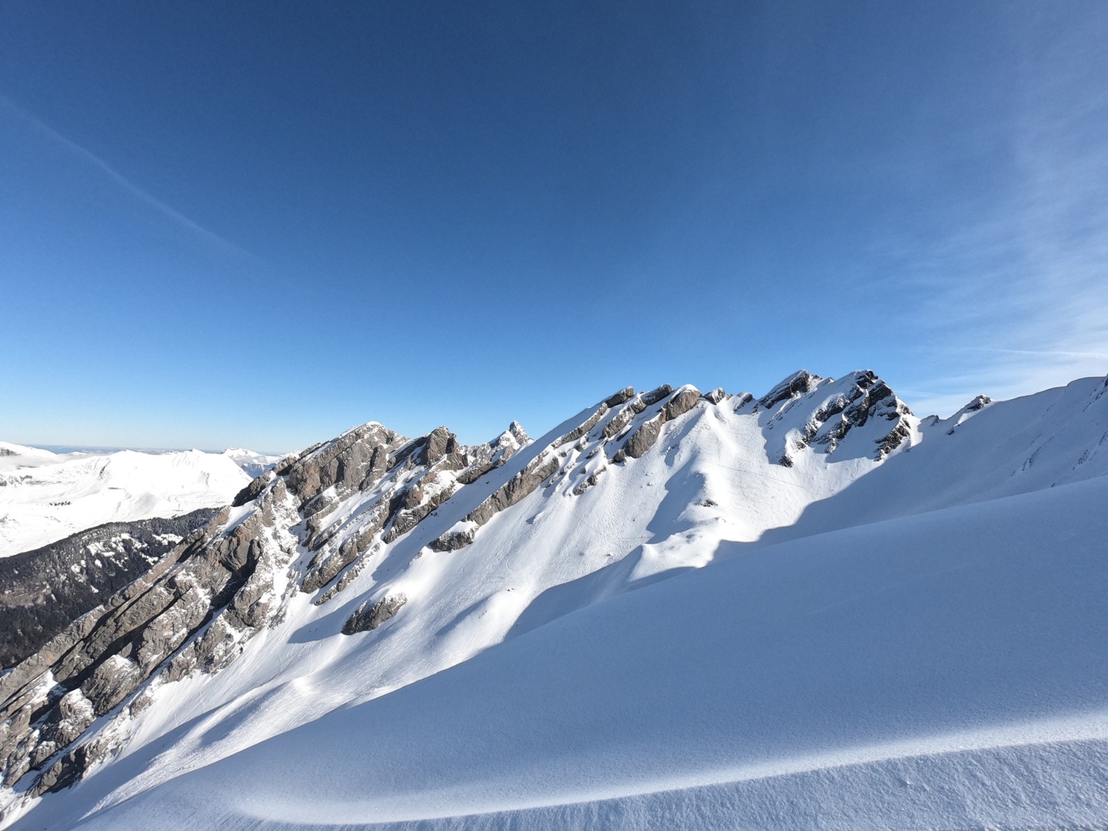 Pas sorti au sommet, sniff, arête trop sèche, et pour rejoindre la face N qui serait skiable, il y a une traversée sur dalle à priori pas acceuillante. (et surtout je commence à être hors timing !)