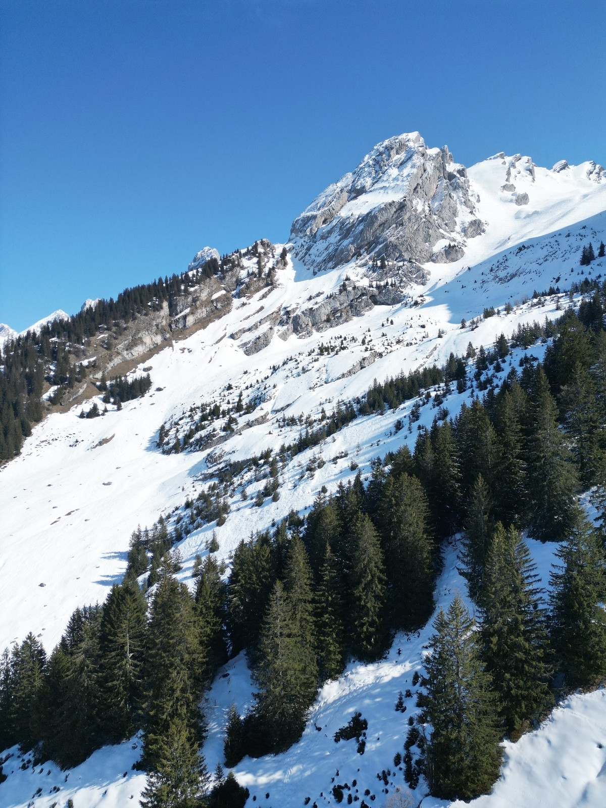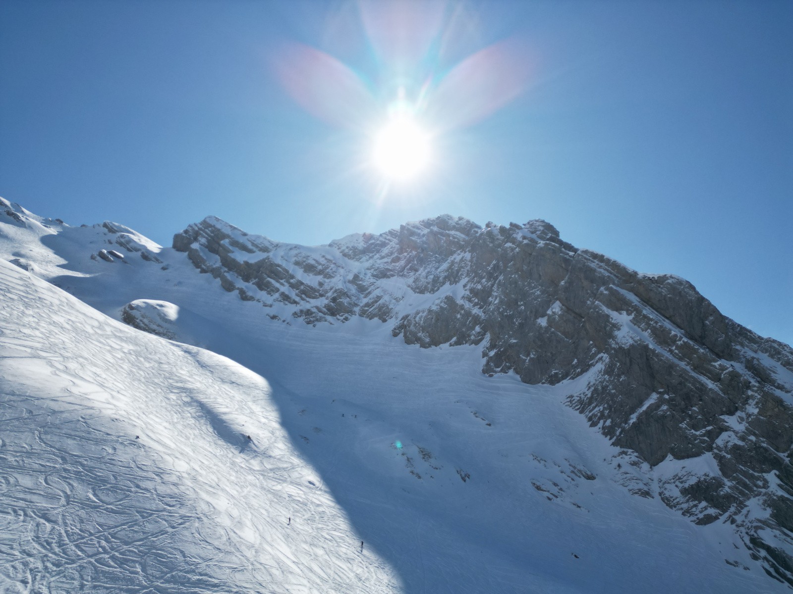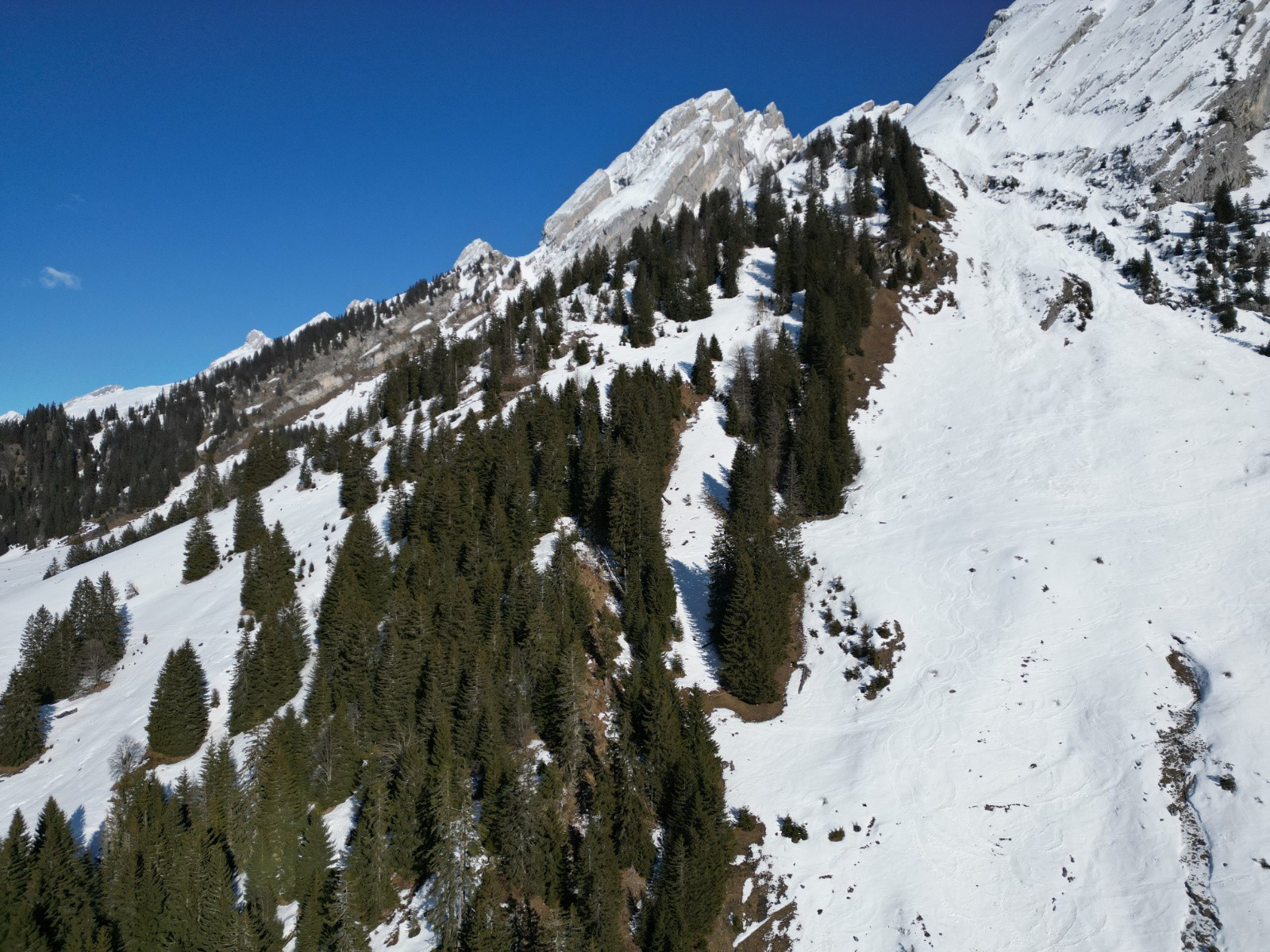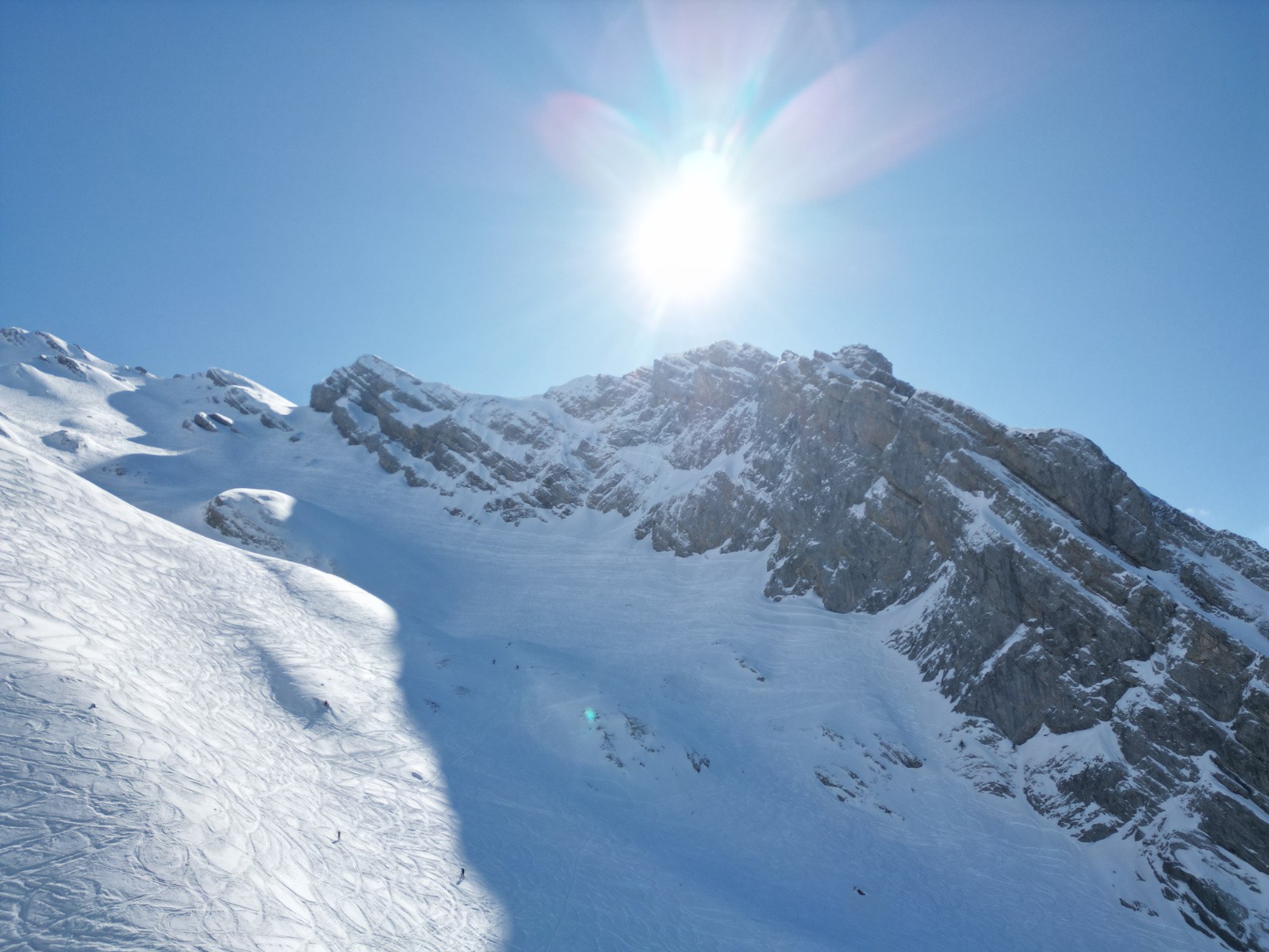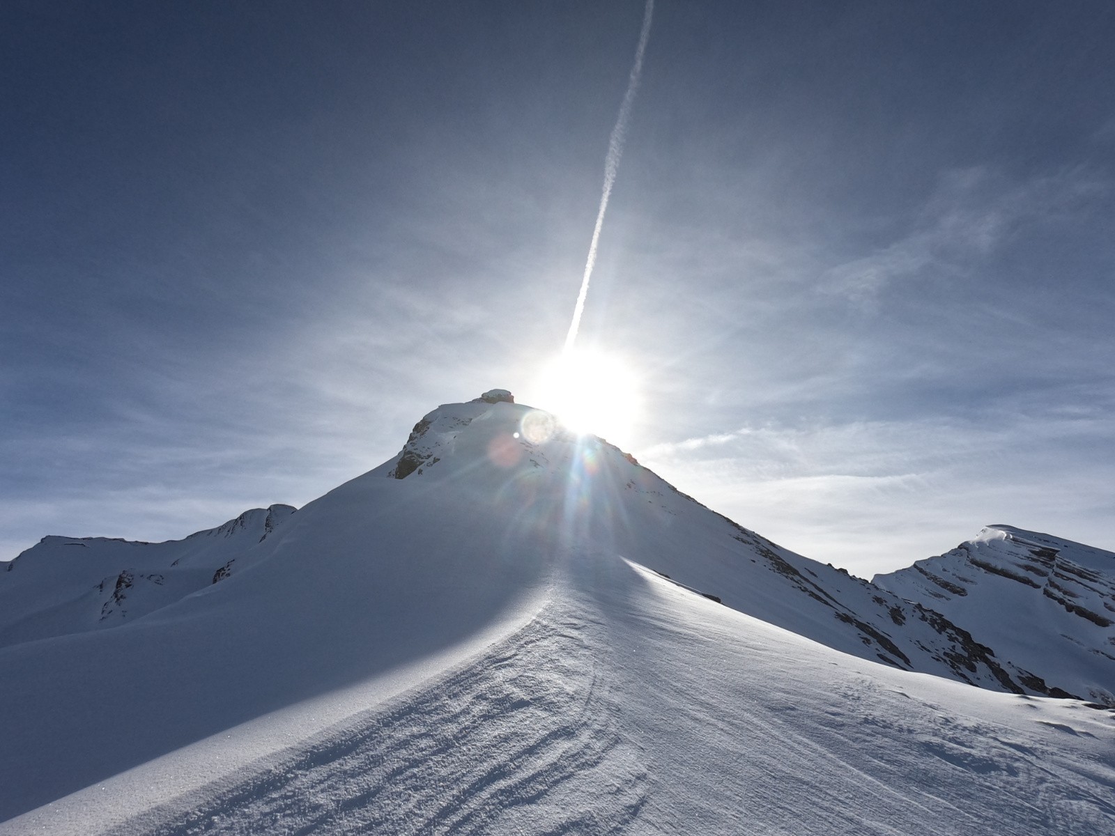 Pas sorti au sommet, sniff, arête trop sèche, et pour rejoindre la face N qui serait skiable, il y a une traversée sur dalle à priori pas acceuillante. (et surtout je commence à être hors timing !)