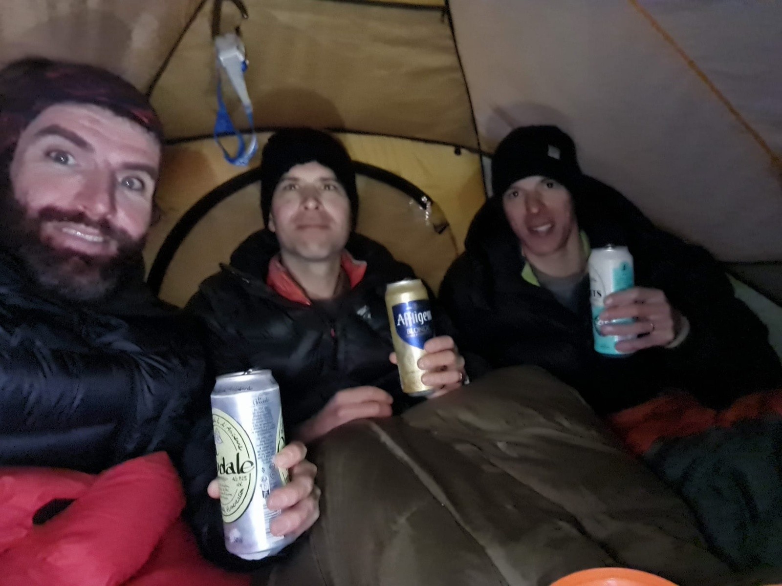 Repas de type bivouac (c'est à dire bien moins savoureux que l'apéro), nuit moins froide que prévue (sauf pour nos gourdes d'eau) et réveil comme des fleurs à 7h.