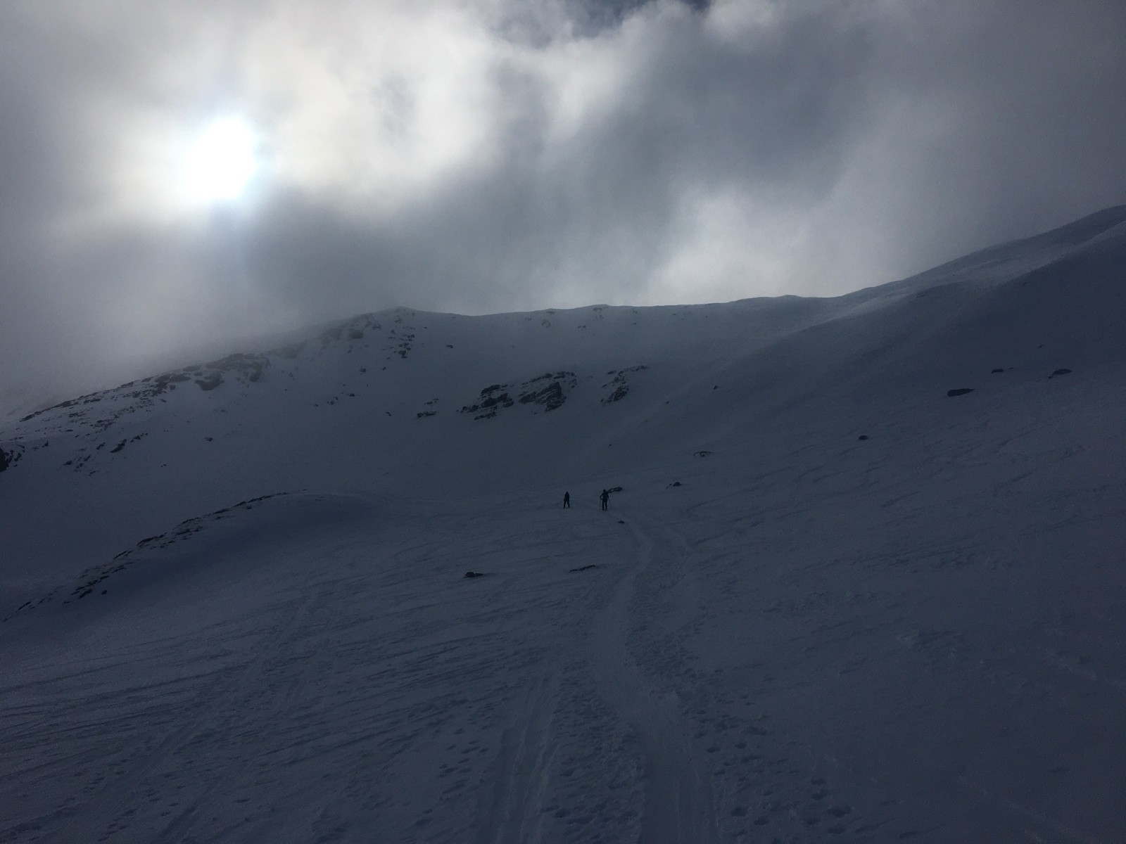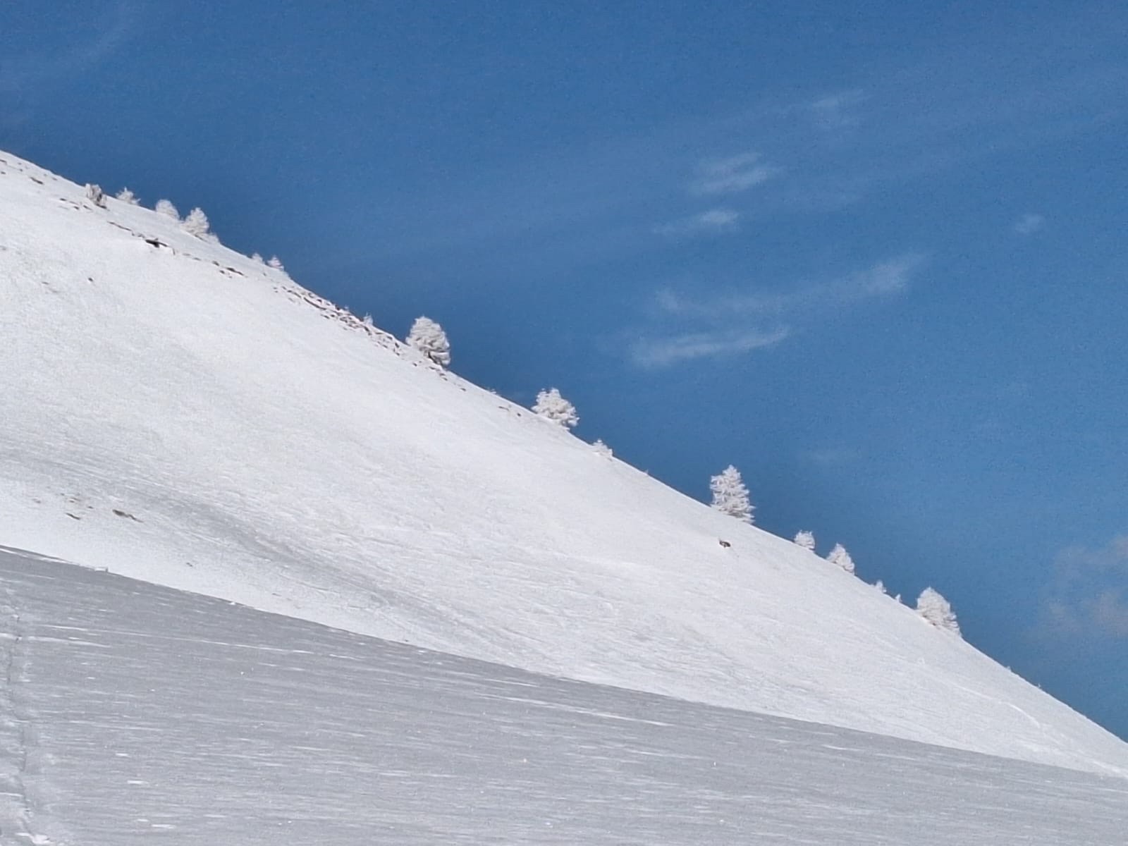 Conditions pour le ski : un peu de poudreuse vers 2500m, sinon c’est skiable sur une neige assez dure.