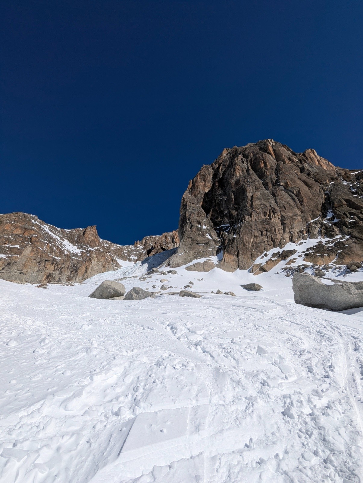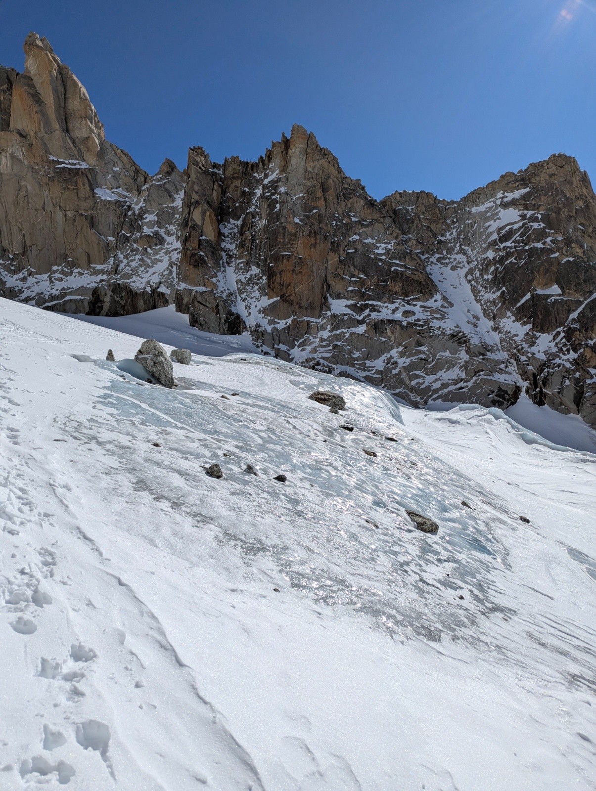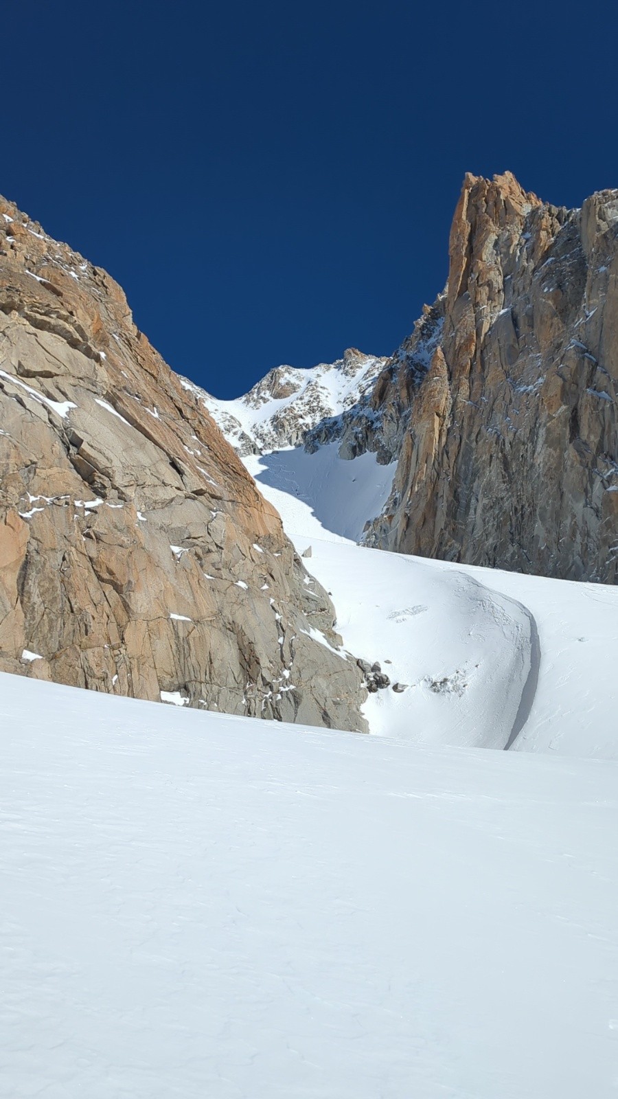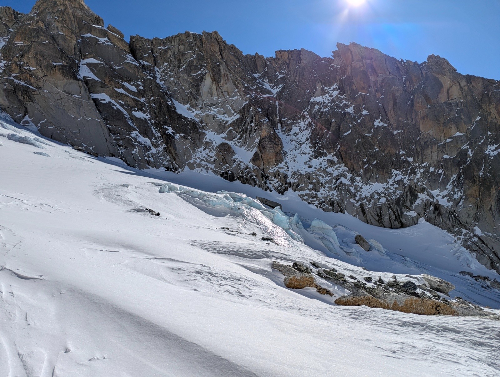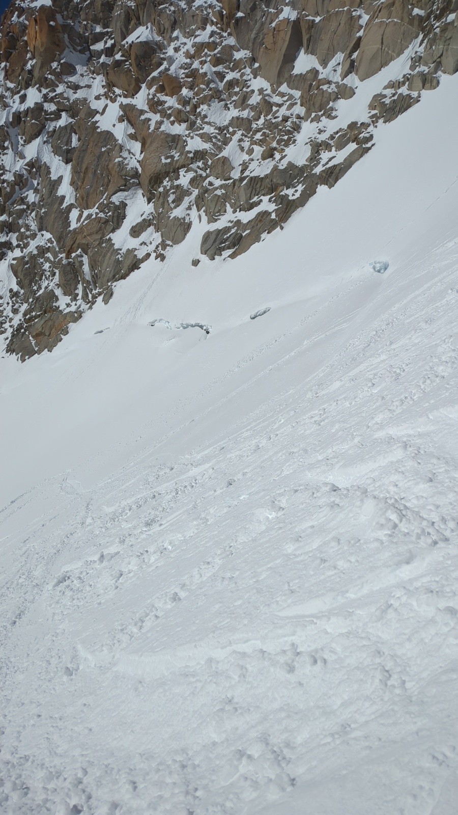 attention sur le replat avant la Rimaye au niveau d'une convertion a gauche, le bâton passe a travers le pont de neige.