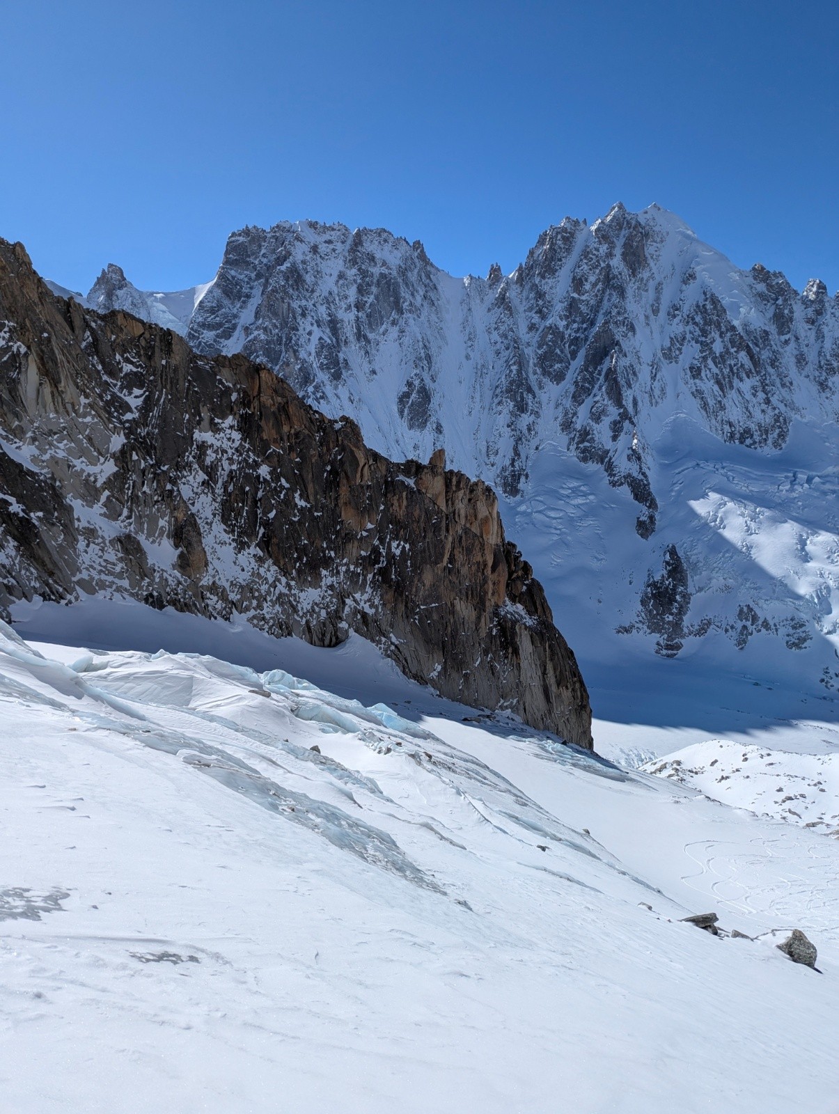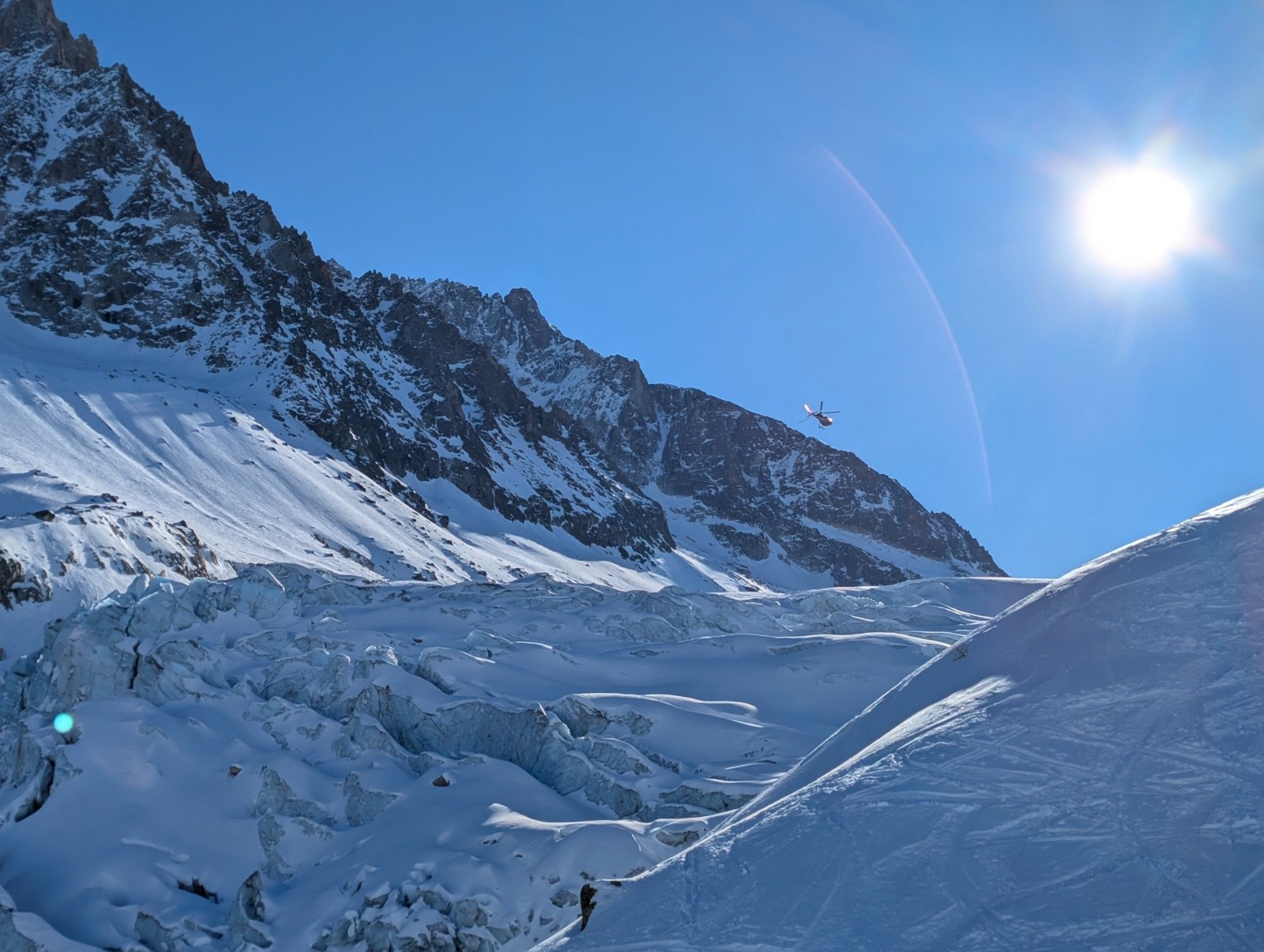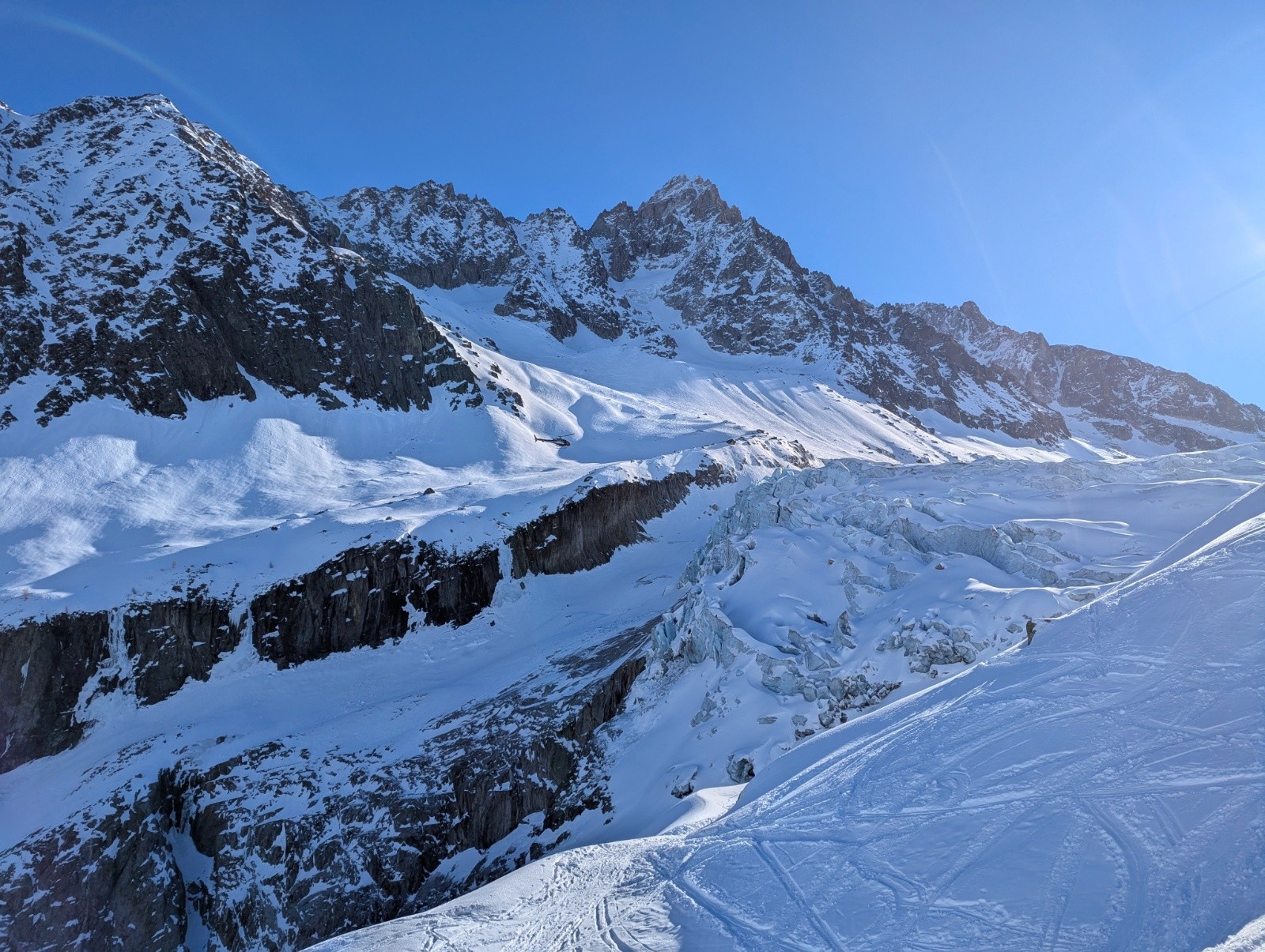 Itinéraire suivi :départ 8h du parking remontée des pistes pour rejoindre le glacier d'argentière puis direction glacier du milieu..