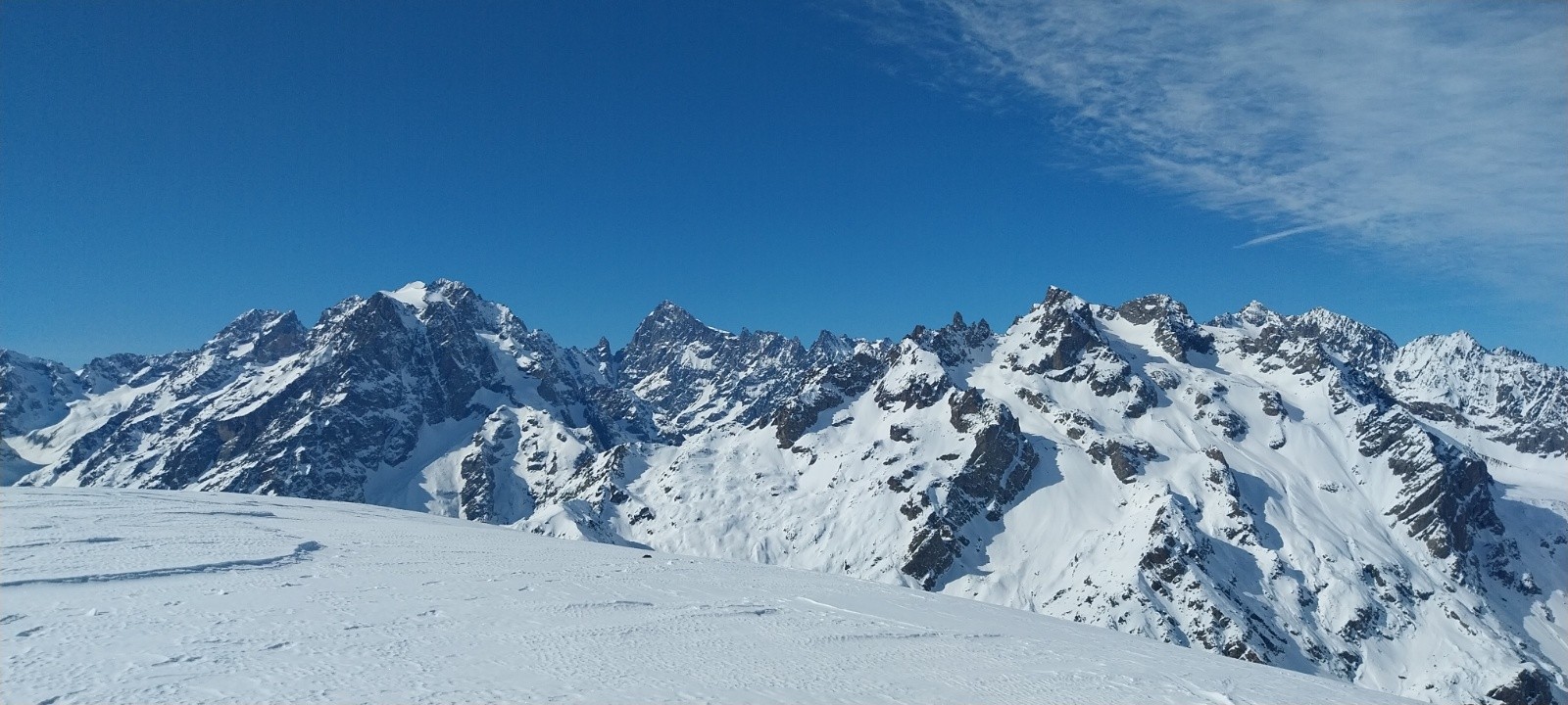 Ensuite je recolle les peaux pour monter au col de la Trancoulette, il y a eu du monde, c'est similaire à une piste damée en fin de journée. Par contre la neige est bonne, j'ai bien apprécié cette montée. En plus c'est facile et tranquille.