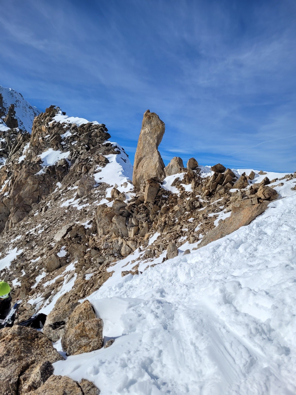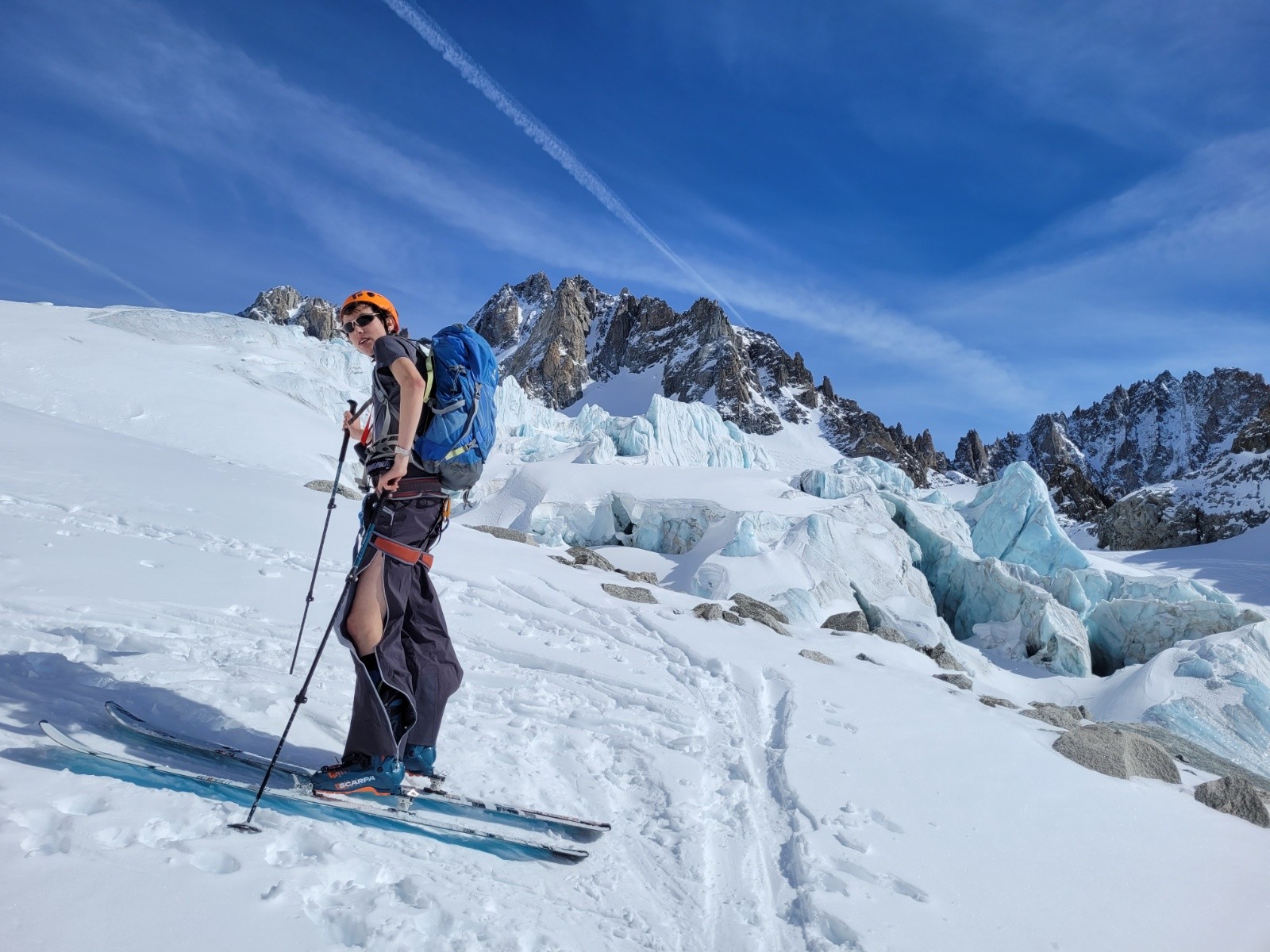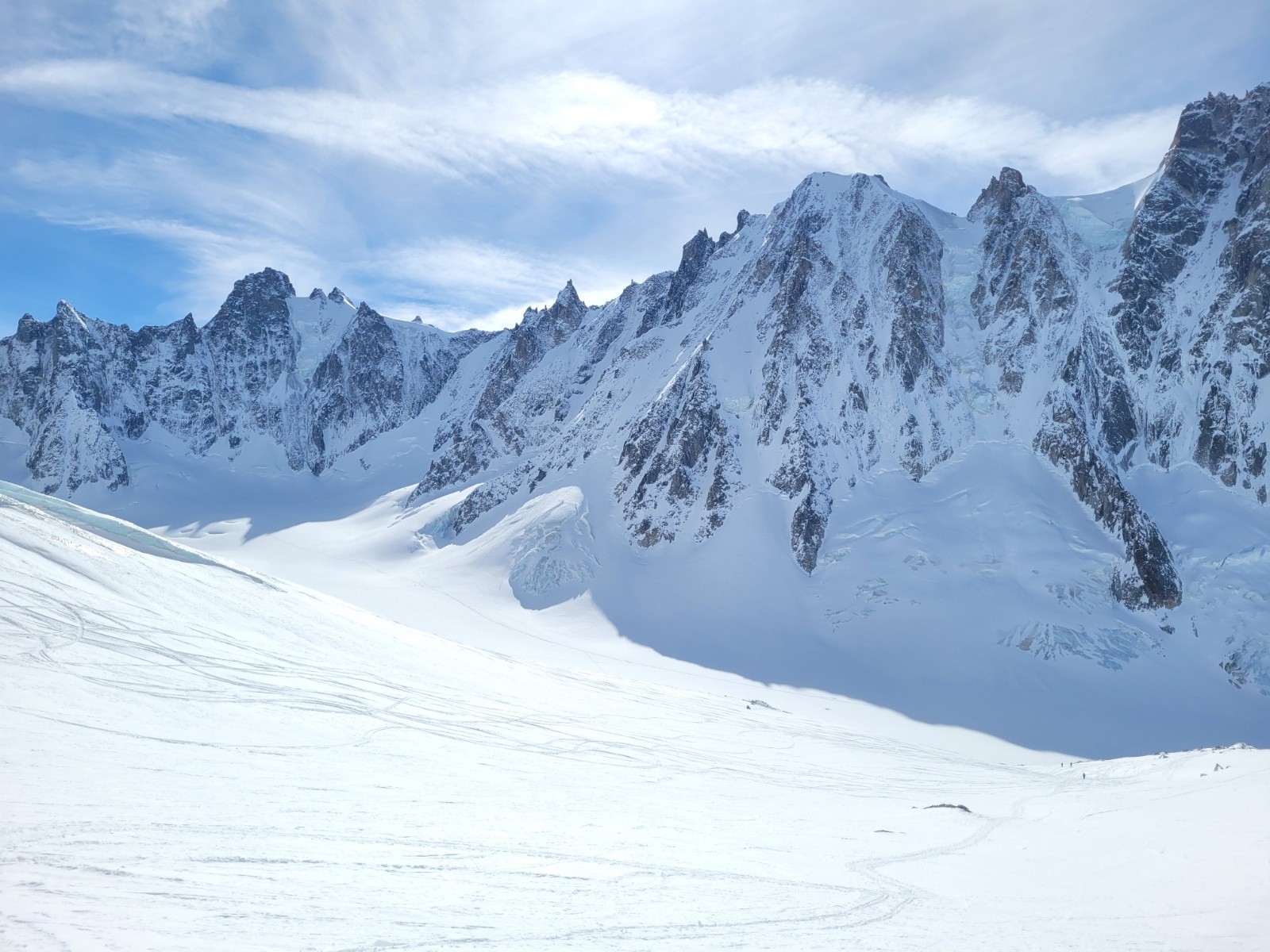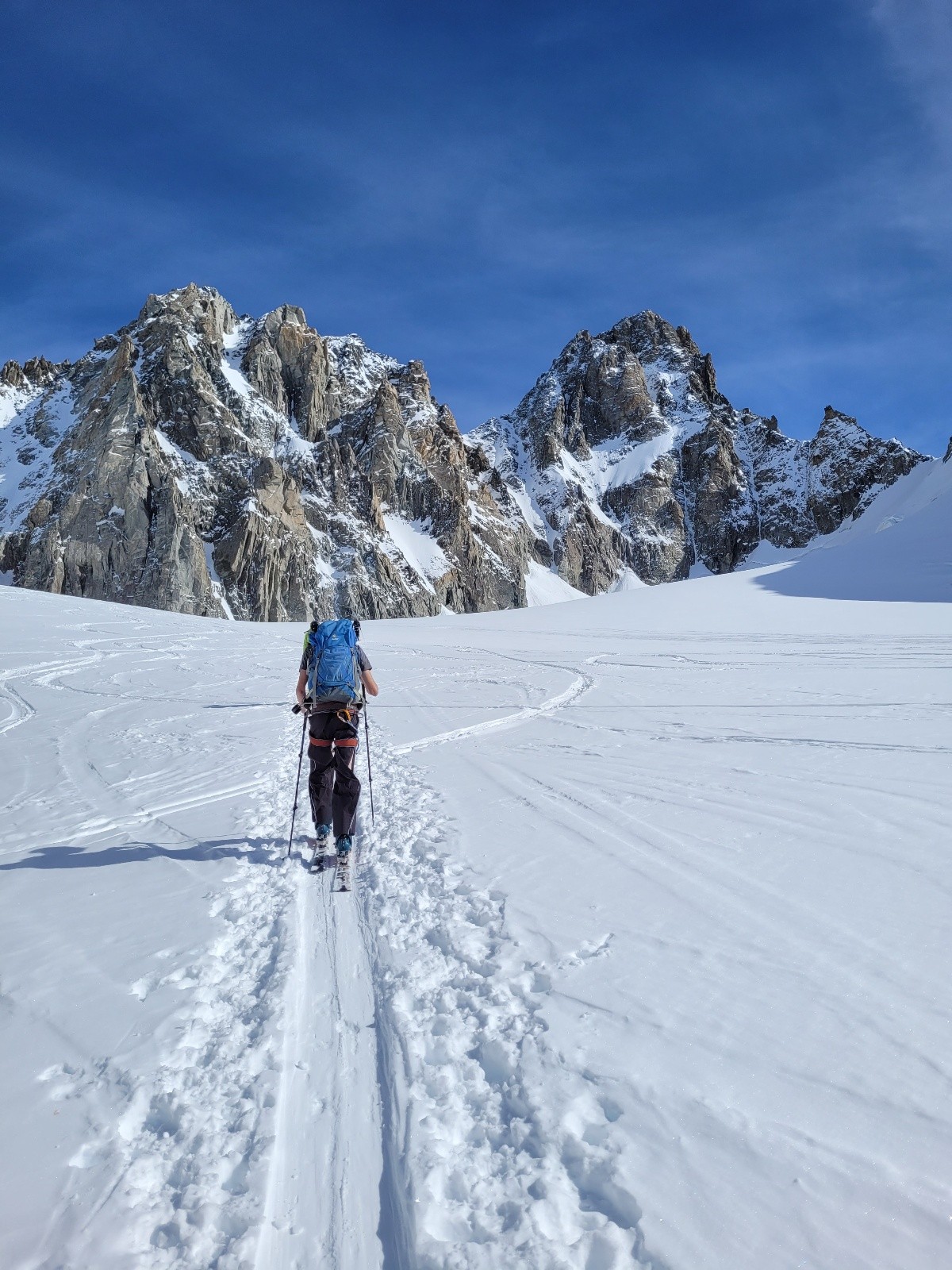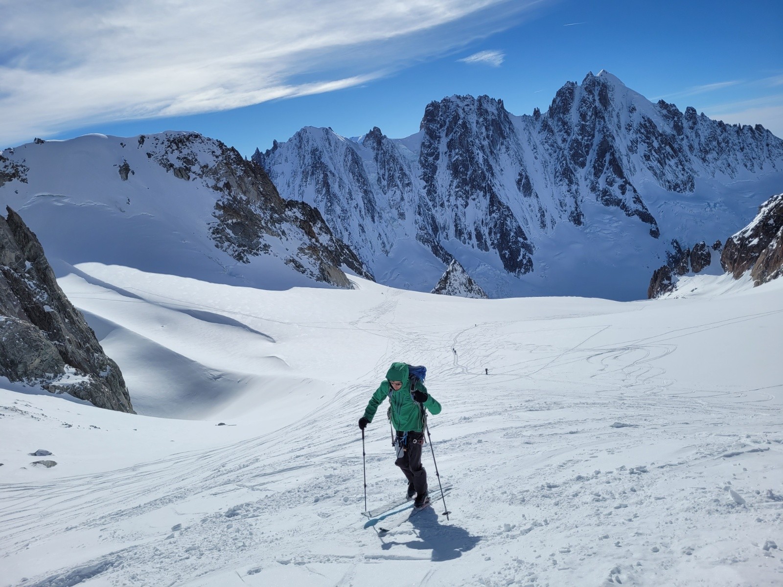 Conditions pour le ski : Très bonnes. Neige poudreuse dans les expositions autres que Sud. Revenue, par endroits regelée dans les orientations S. Du très bon ski globalement, particulièrement sur la partie haute du glacier des améthystes.