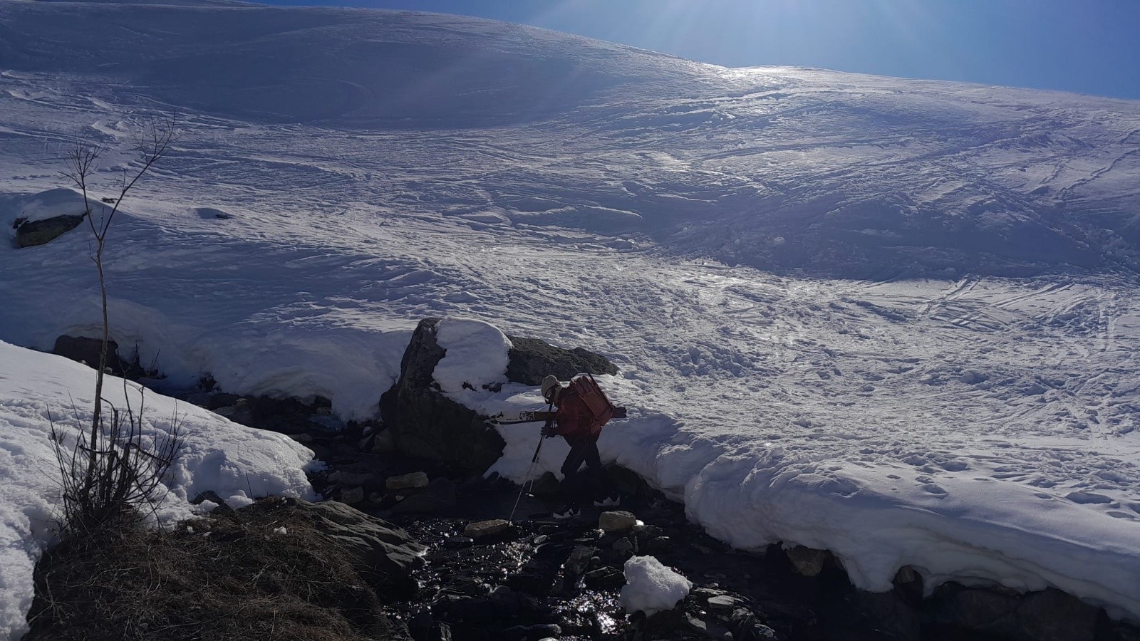 Parking à la station du Chazelet. Départ et retour skis aux pieds. Quelques déchaussages pour passer les torrents dans le vallon du Gâ. Sommet en crampons, skis déposés à 2850 m.