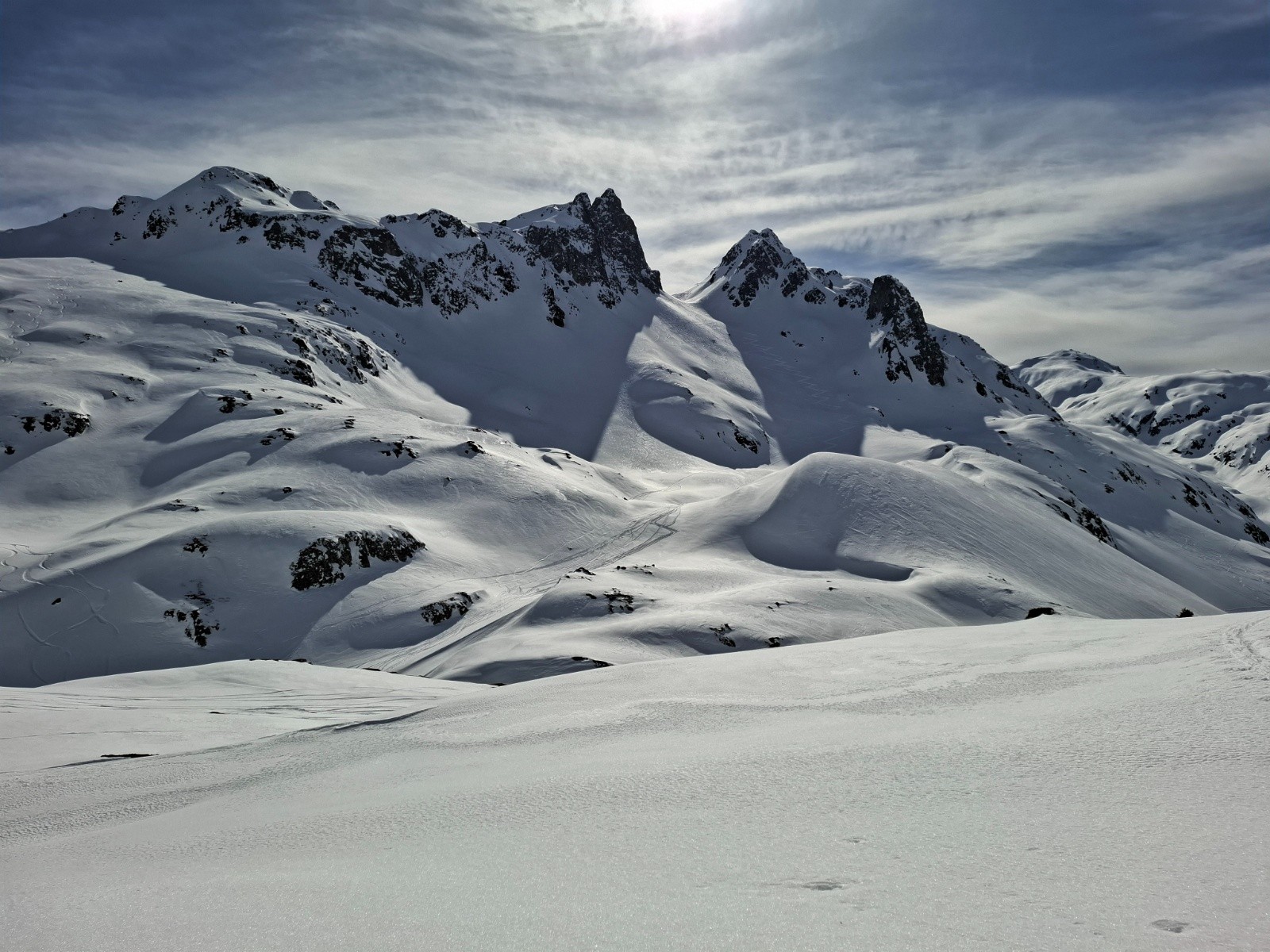 Conditions pour le ski : bonnes, voire excellentes: de la poudreuse , de la neige de printemps mais aussi un peu de neige croutée