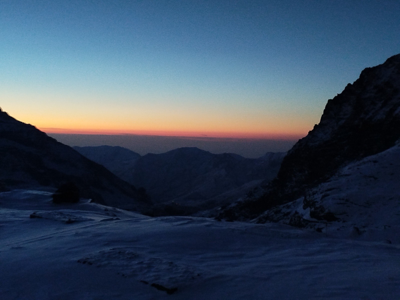 Conditions nivo et activité avalancheuse : glacier bouché, neige problématique en sud côté français (très peu de neige même en altitude herbes apparentes).