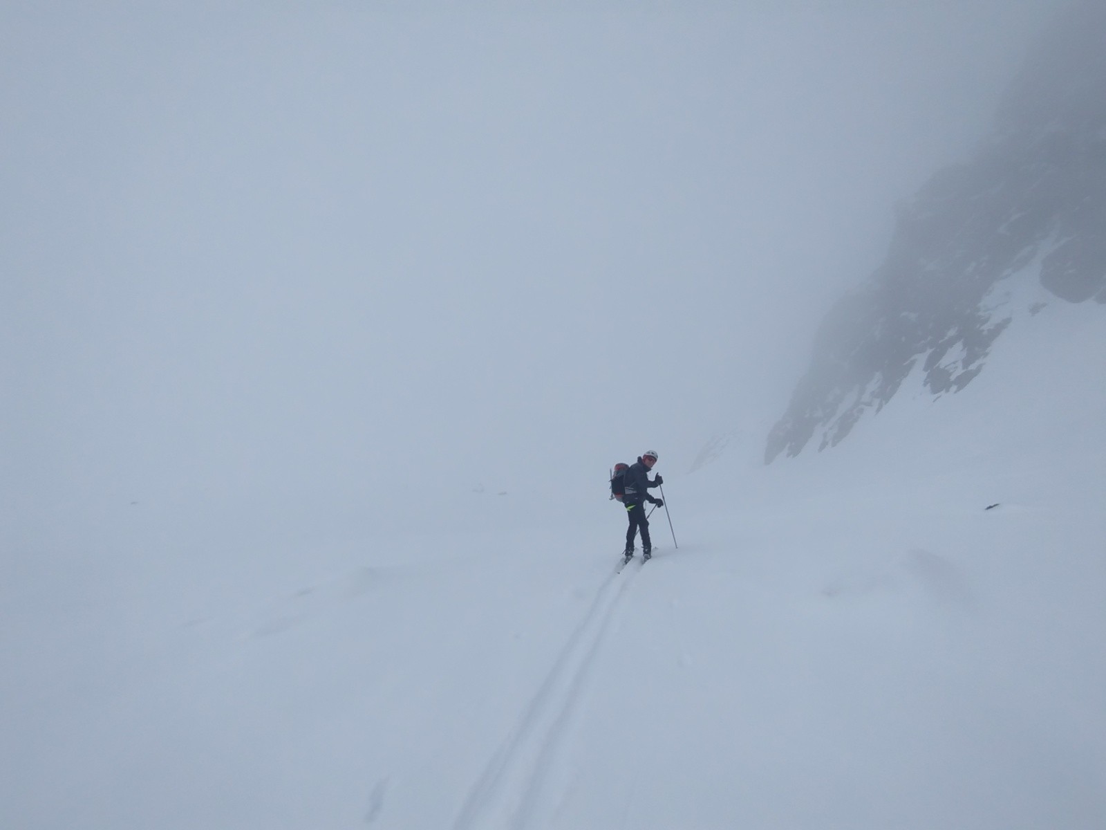 initialement pointe Marie depuis bessans et traversée sur san Camillo. Du fait d'un plafond bas puis d'un brouillard très important, bascule directe au col d'Arnès sur le versant italien jusqu'au bivouac (laissé tomber les 200m+ pour aller à la pointe Marie afin de privilégier au niveau horaire, la recherche du bivouac dans le brouillard). Toute la descente a été faite au gps.