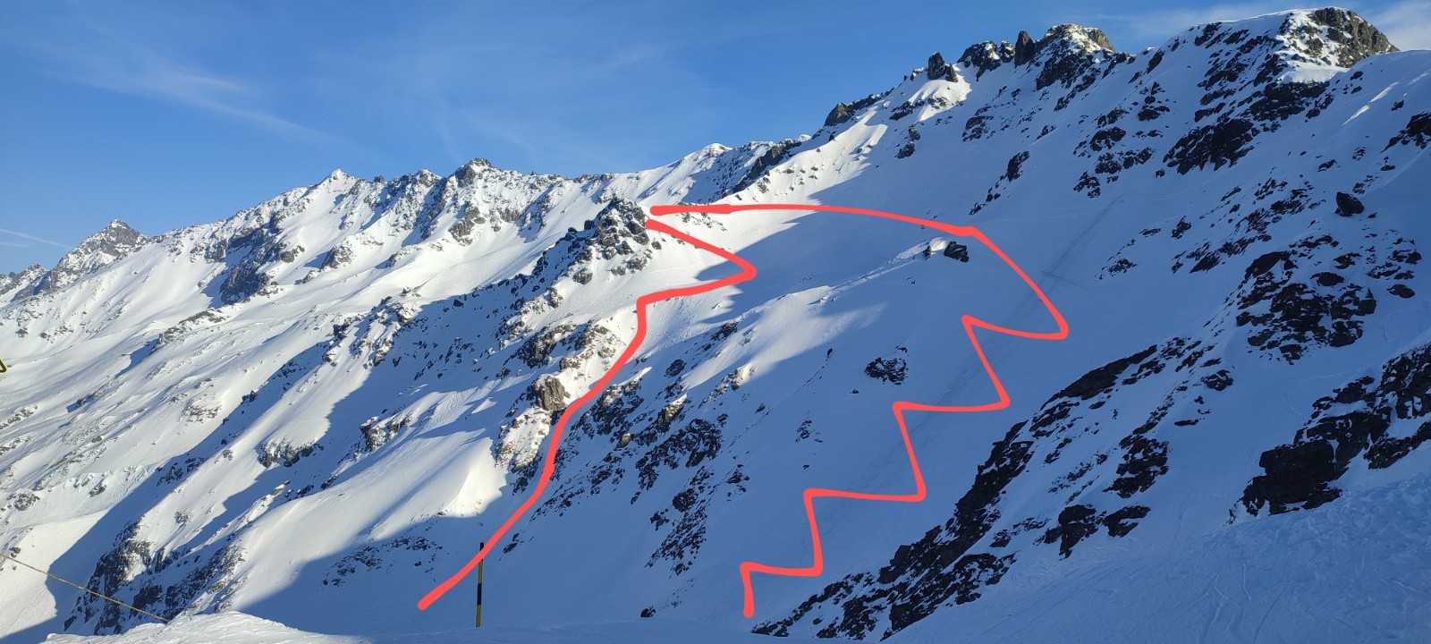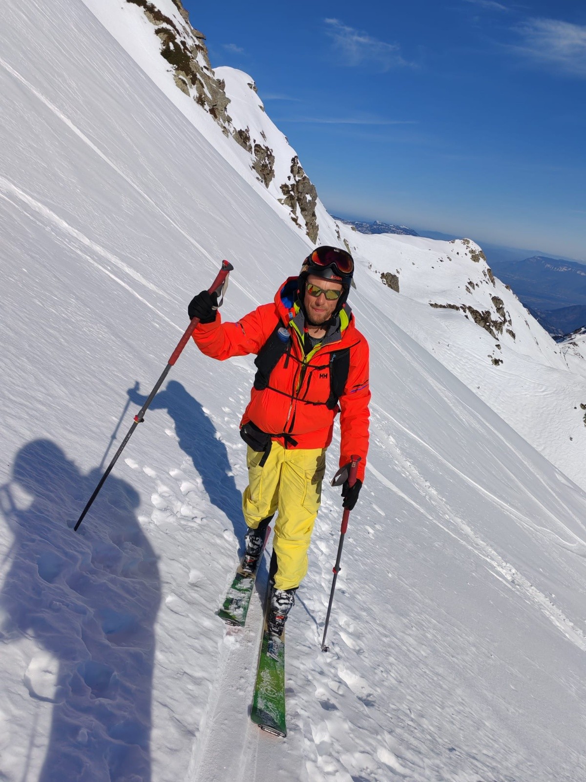 La sortie se passe très bien et la neige est vraiment de qualité. Ma condition physique du moment (qui joue aussi sur mon mental) ne nous permet pas d'aller au bout de tracé prévu initialement (descendre dans les vallons du Vouteret) mais cela a été malgré tout un très agréable moment.