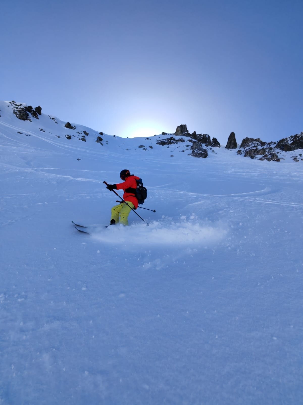 La neige, le temps et mon coéquipier me permette de faire une belle sortie et une première partie de descente très fun.