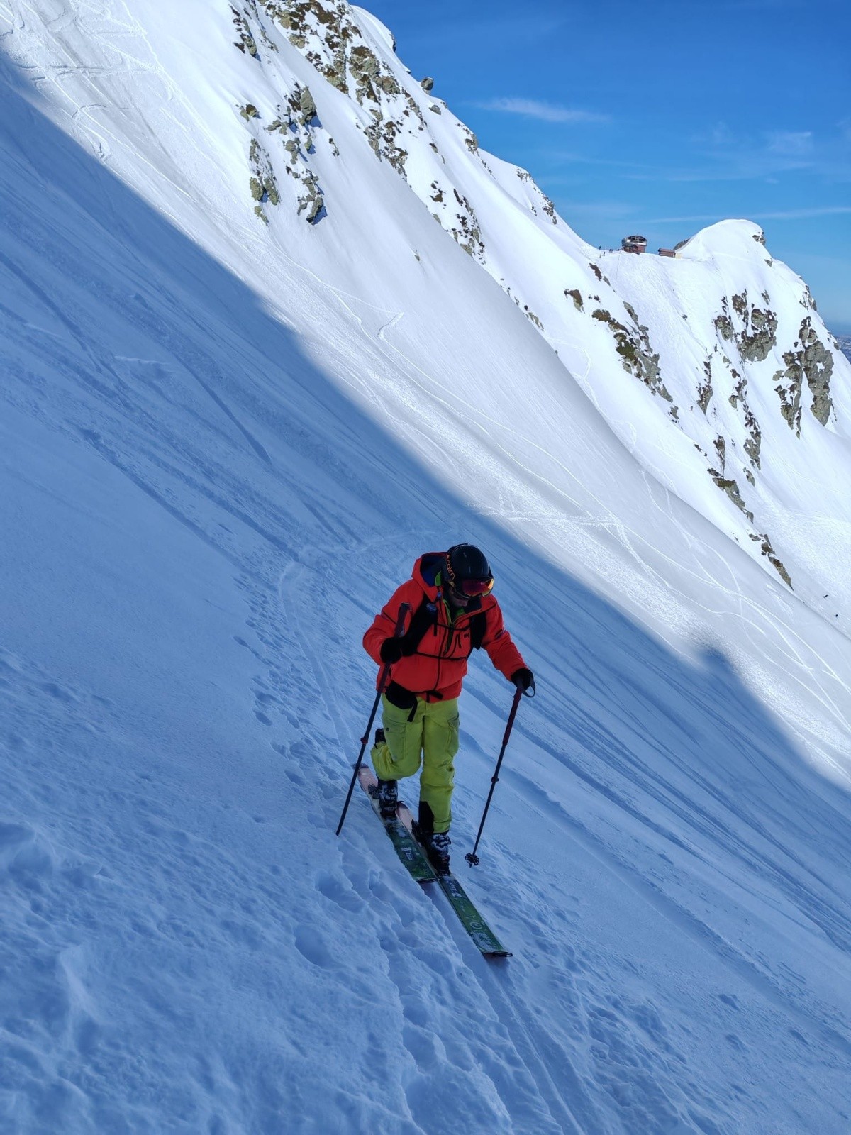 Conditions pour le ski : neige de qualité en haut. Légèrement croûtée en surface, mais très agréable en dessous.