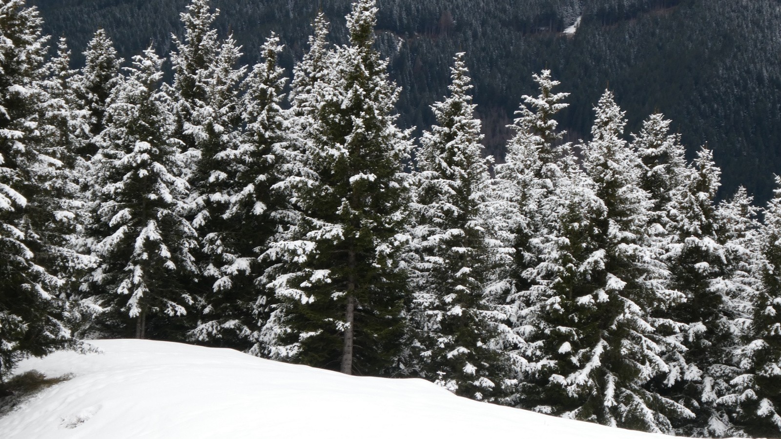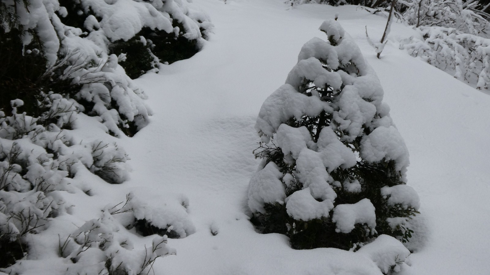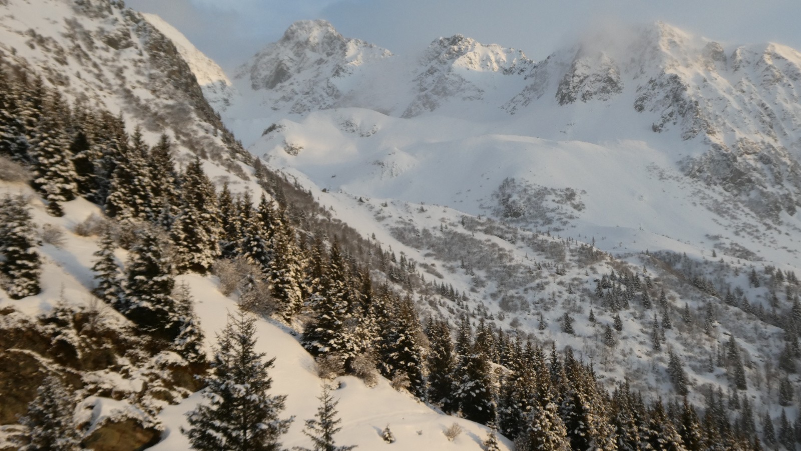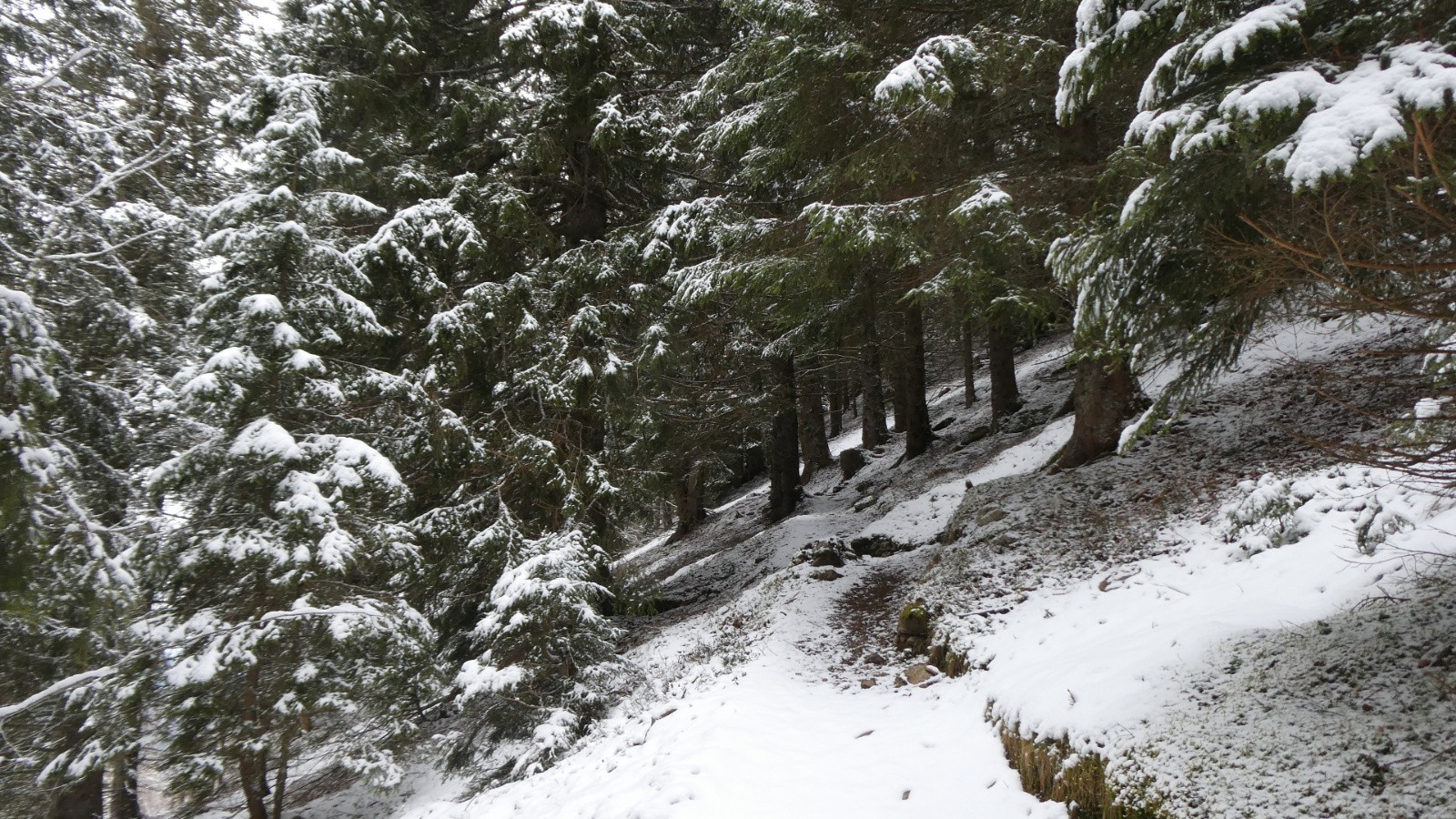 Et puis, ces sombres sapinières à nouveau en tenue d'hiver, ces mousses d'un vert quasi phosphorescent tapissant les bords des chemins, cette cabane surplombant la vallée et réservée à moi seule pour cette nuit d'exception, le roucoulement des coqs dans les myrtilliers et les rhododendrons à la tombée du jour et au petit matin et ces flocons virevoltant, l'air de ne pas savoir où se poser.
