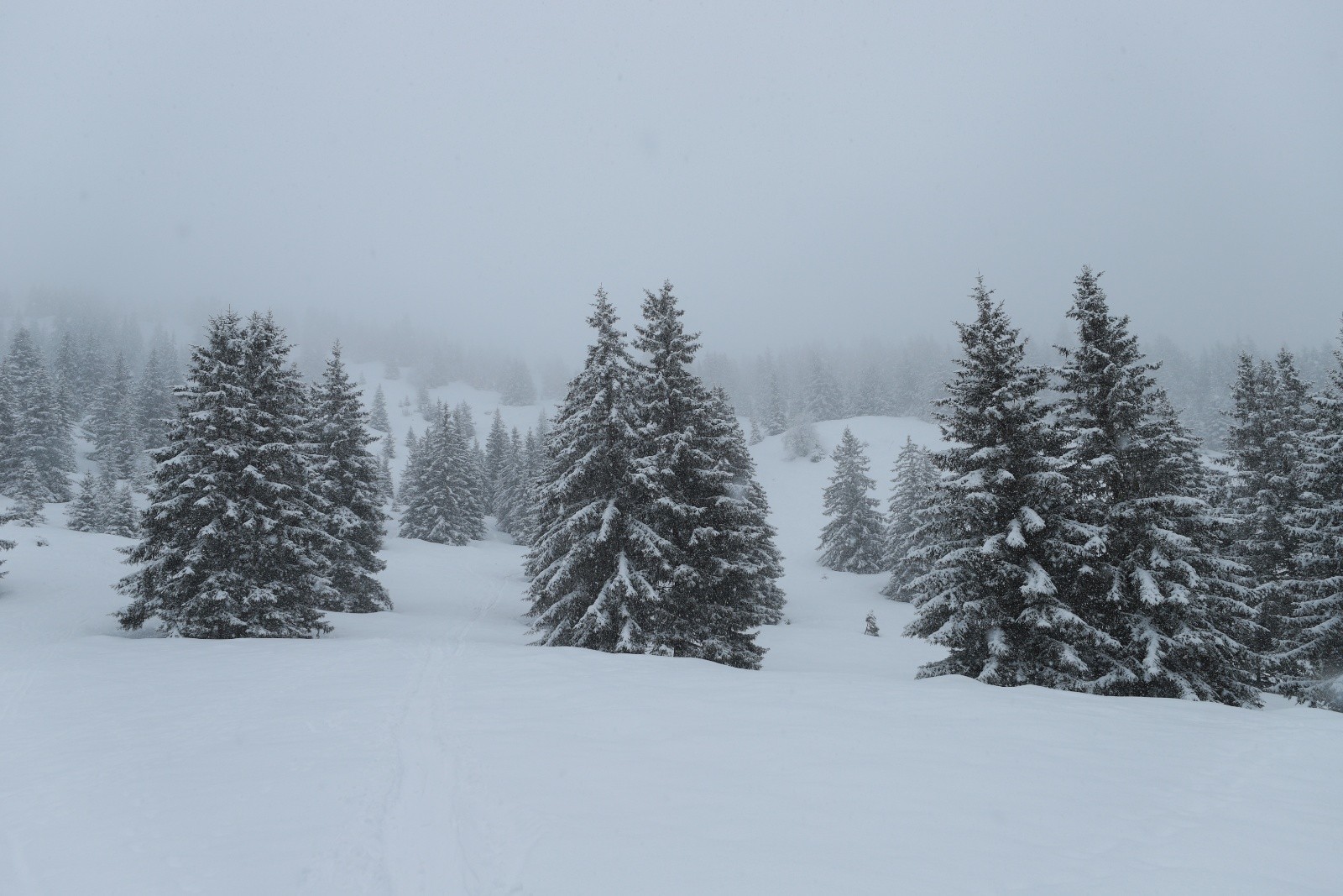 Plutôt que de suivre la classique Grand Rocher je trace (x 2) vers le Crêt Luisard où je suis tout seul 😀
