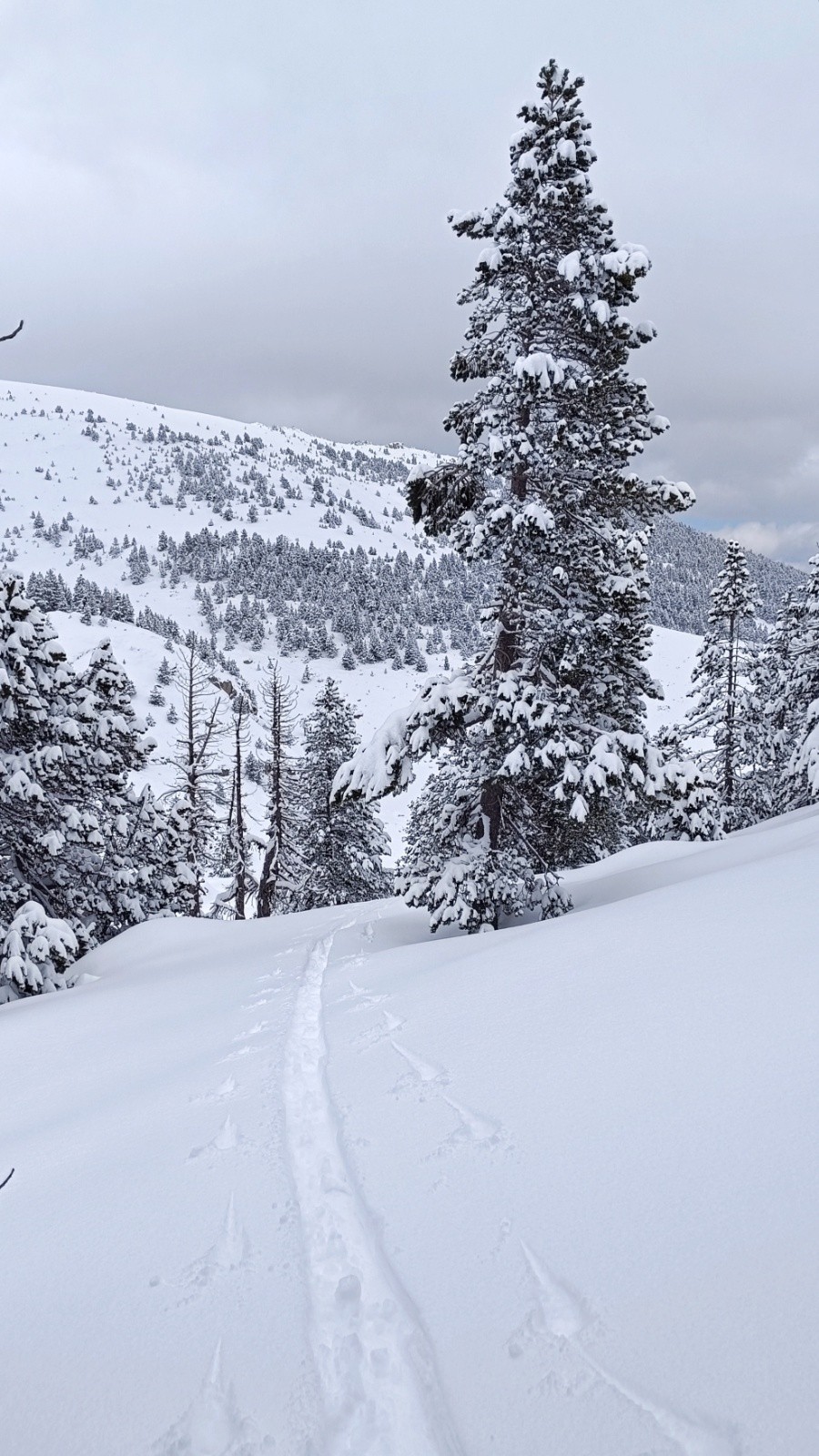 Tout était incroyable dans cette sortie, chausser à 1300m d'altitude sur un point de départ qui n'existe même pas sur Skitour, être absolument seul dans tout le massif et bien sûr profiter d'une neige excellente tout du long.