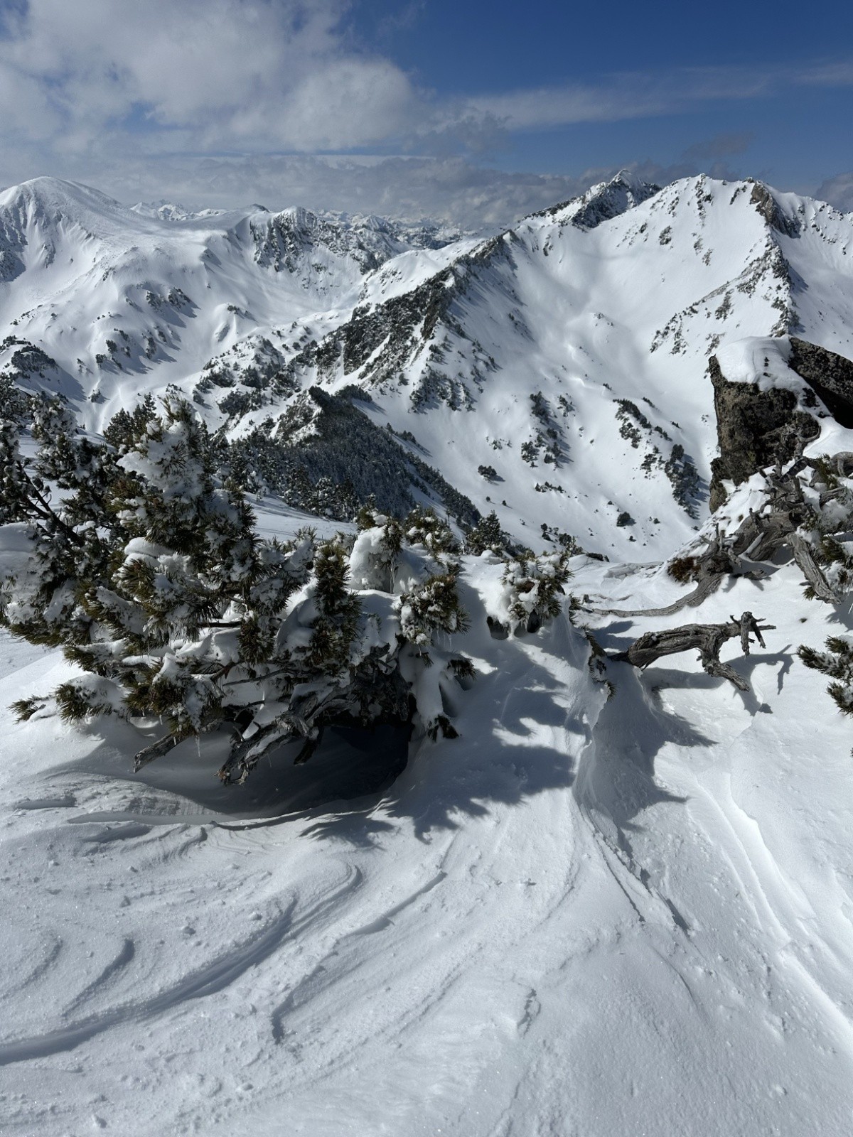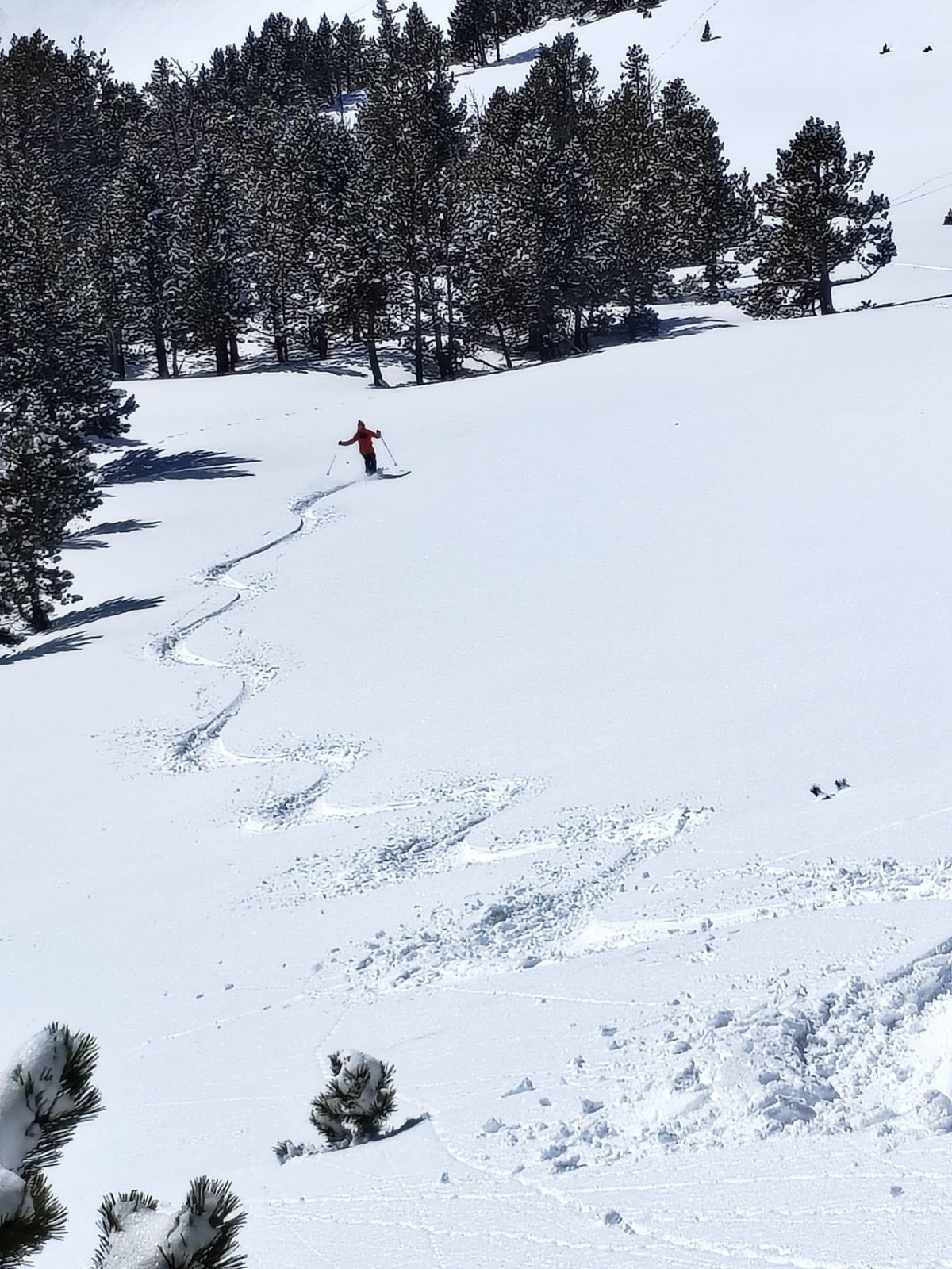 Descente depuis le sommet par le Clot del Mig dans un joli vallon poudreux.