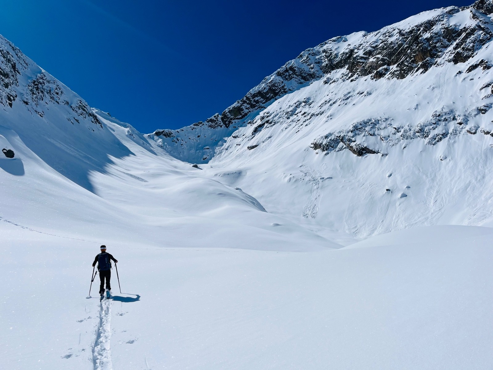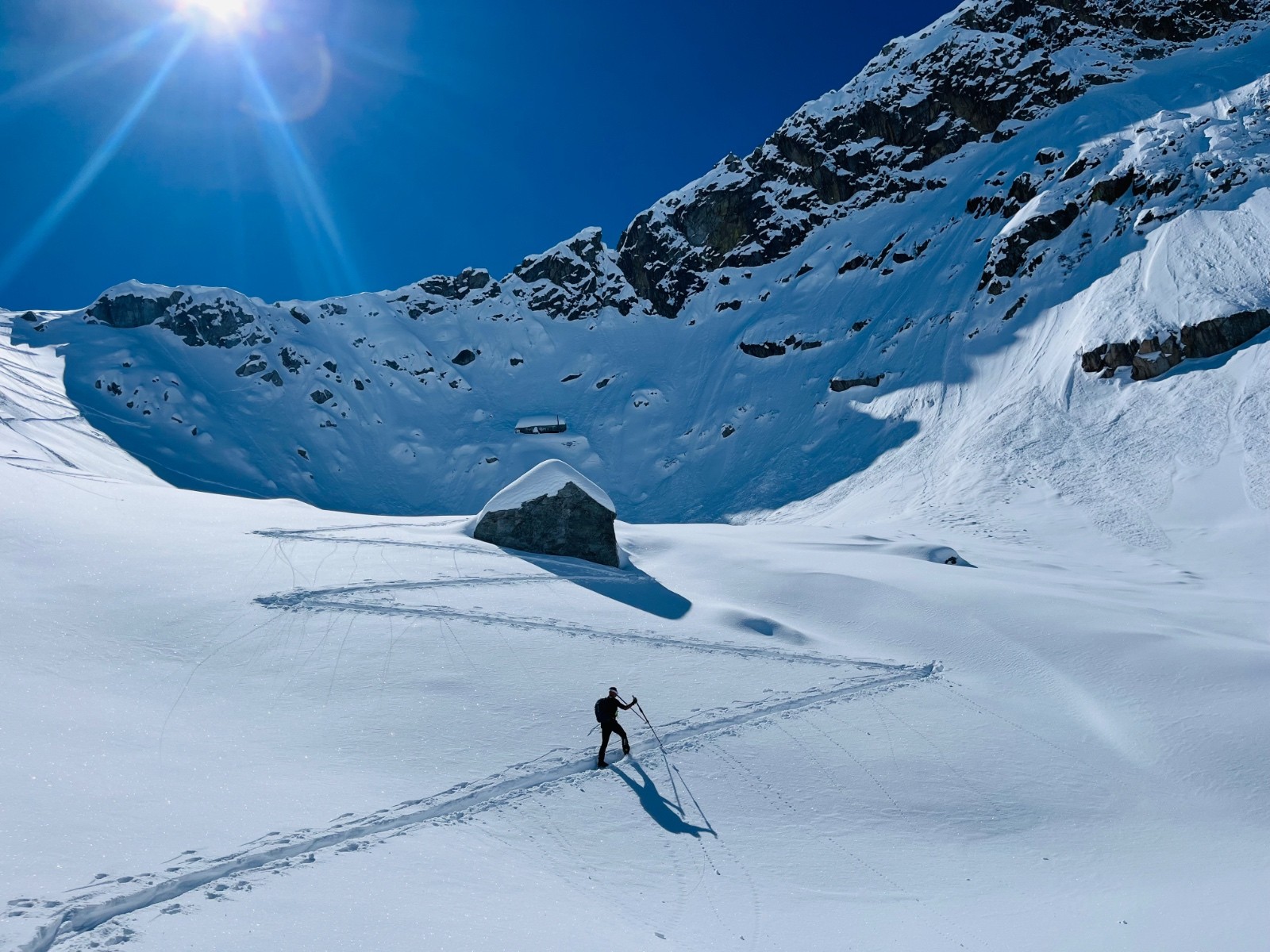 Croisé 2 skieurs qui tentaient la pente sud de la cime de Tavels, pas de traces ailleurs sauf bas de Terres rouges et Mercière.