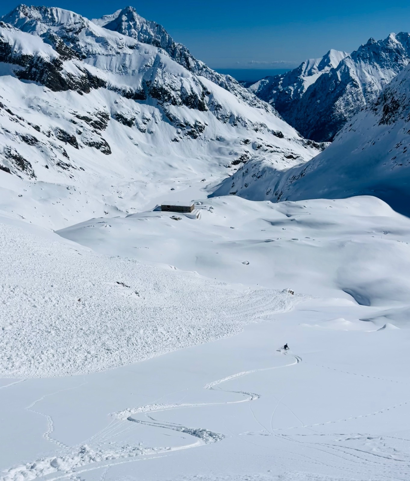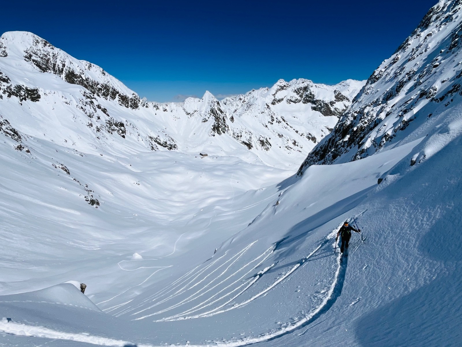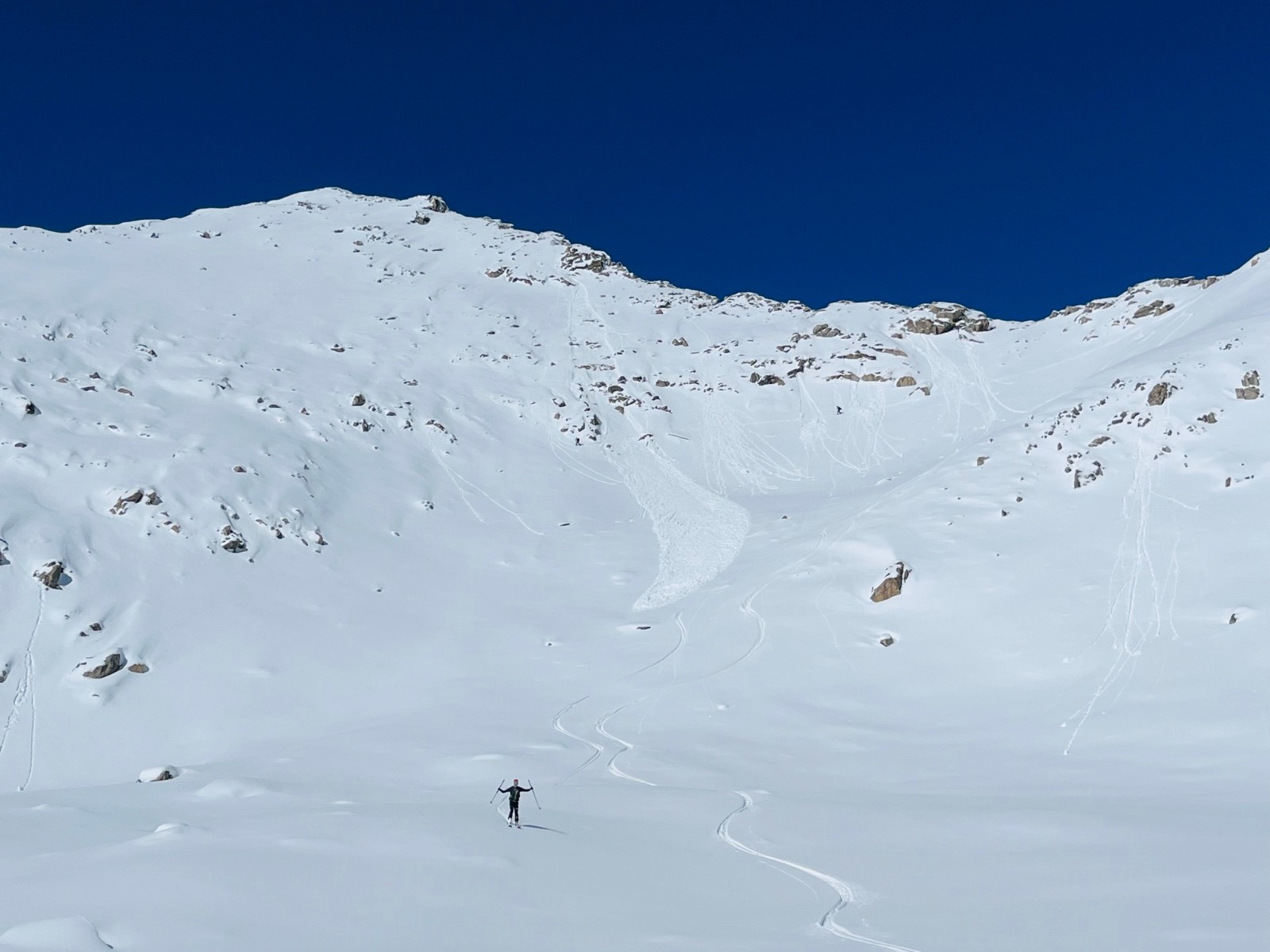 Grosse session poudre et traçage autour de la tête de Tavels avec Hugues ! Neige d hiver froide top en versant froid. Début de croute en sud et crues avalancheuses copieuses nous ont fait renoncer au tour partiel du Malinvern (le pas du Loup probablement très chargé n était de toute façon pas au programme).