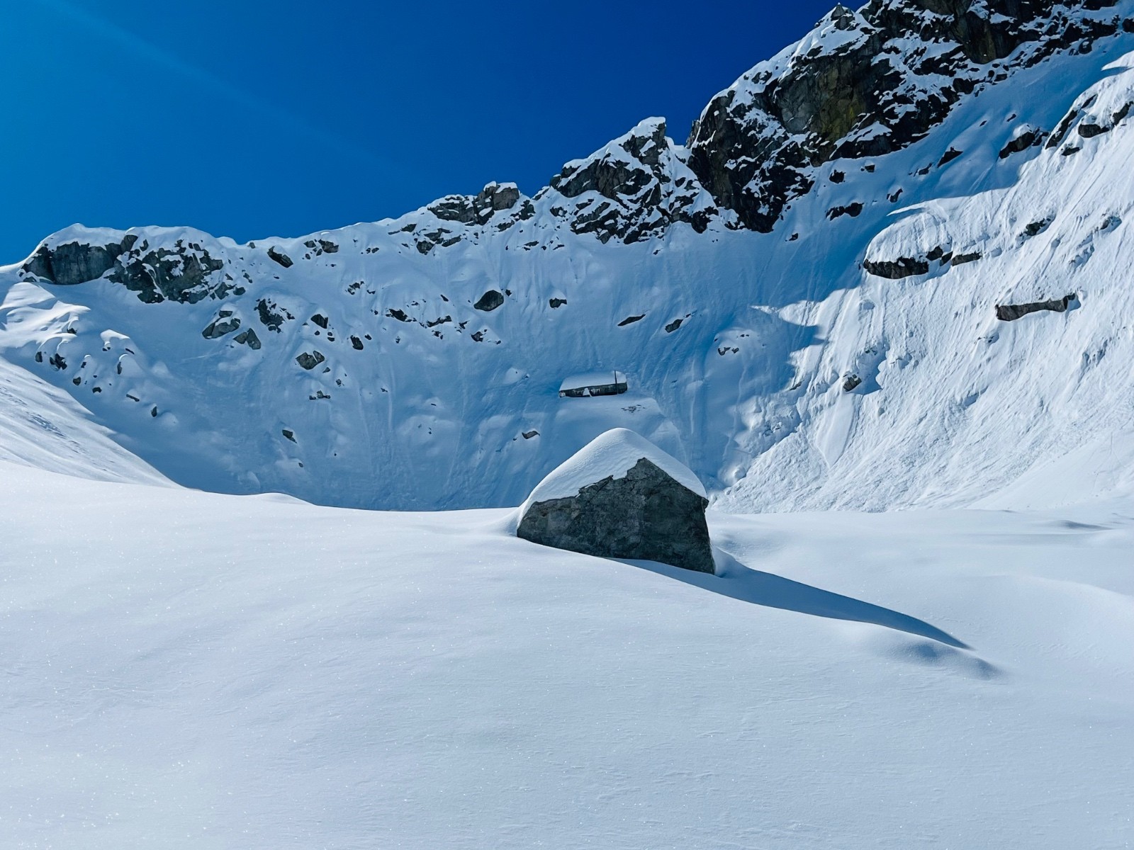 40 cm de poudre froide peu travaillée par le vent sur fine croûte puis environ 60 (soit 1m de la mousson de la semaine). En sud cette couche est parfois recouverte d une croûte (terres rouges et Valescura) ou pas (col de la Lause sud étonnamment bon sauf sous 2200).